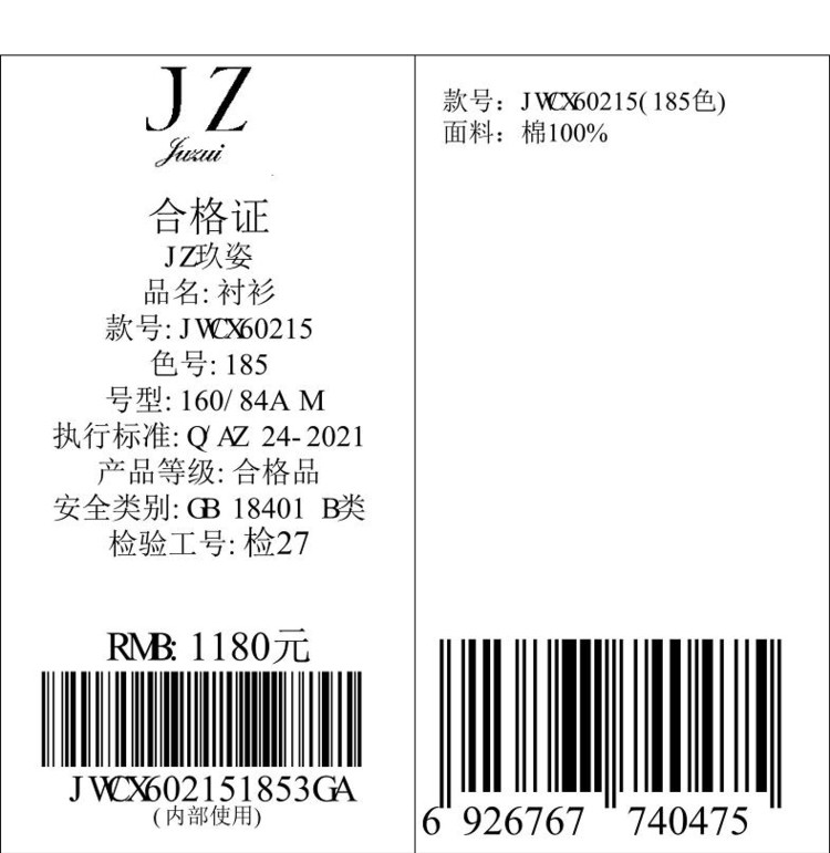 商品名称:JZ玖姿印花全棉衬衫女装夏季印花图案上衣JWCX60215 353228