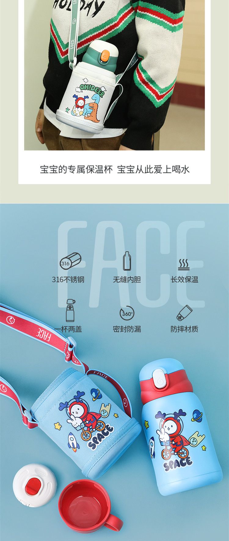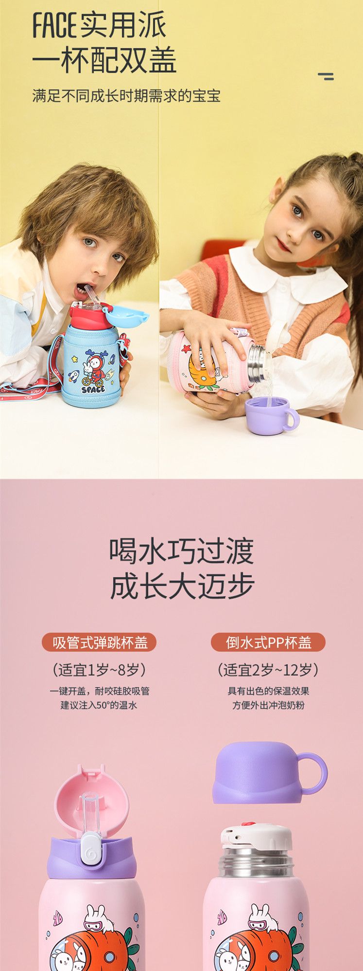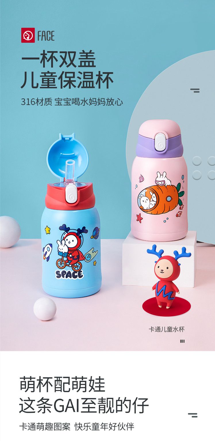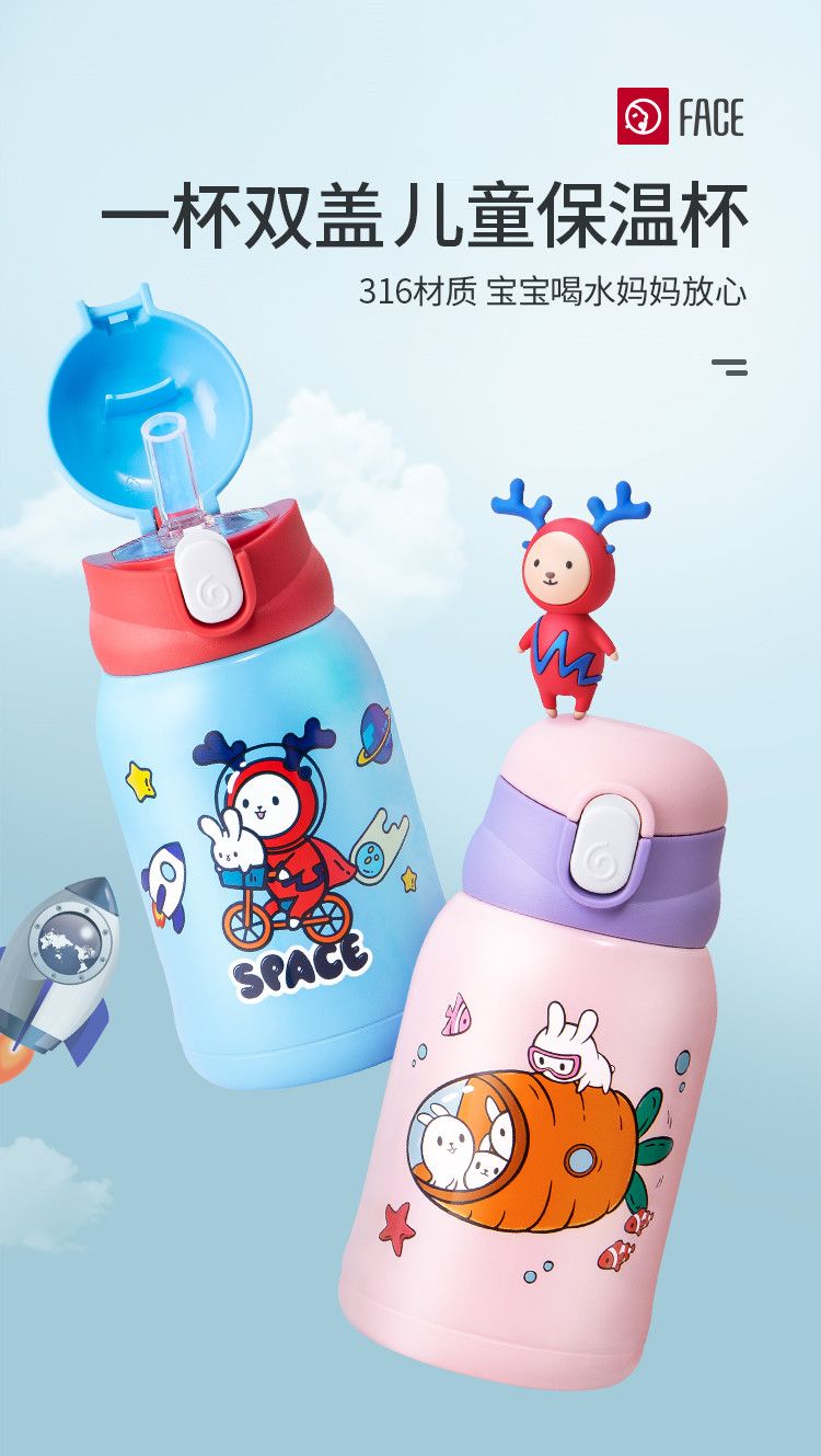 Face 儿童吸管保温杯水杯(含杯套/一杯两盖)(480ml)
