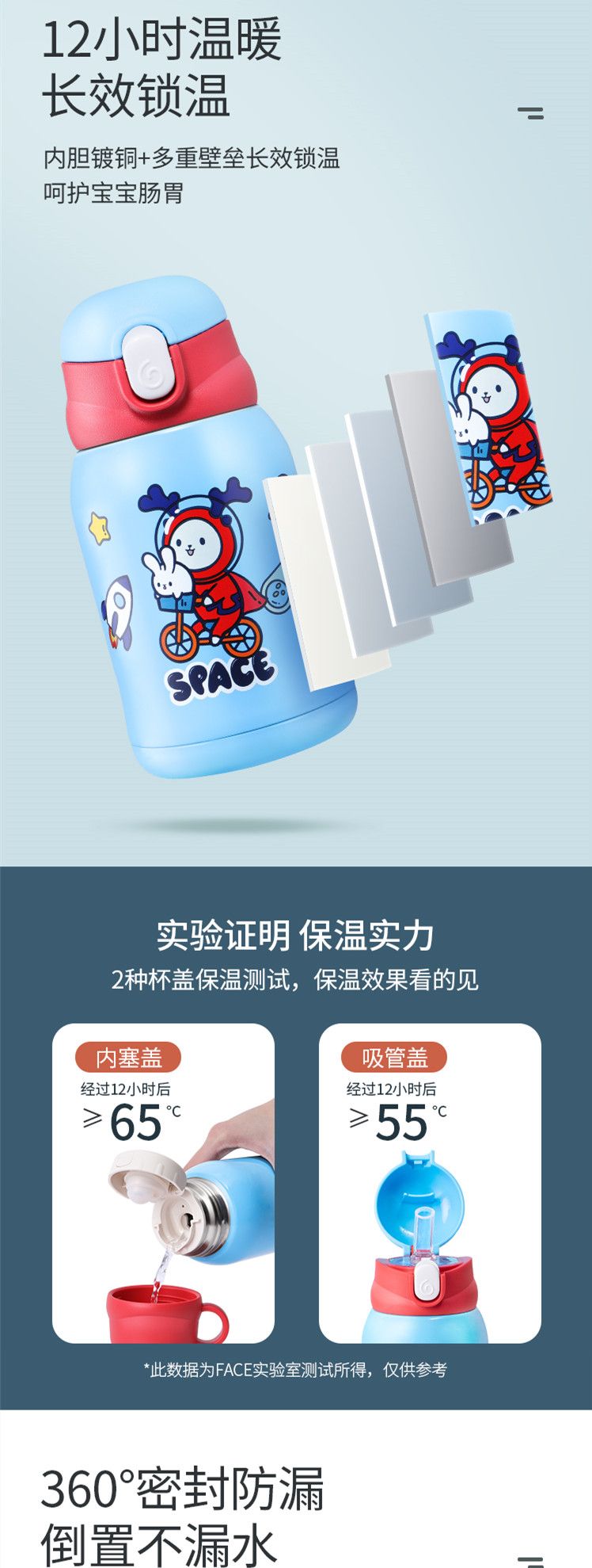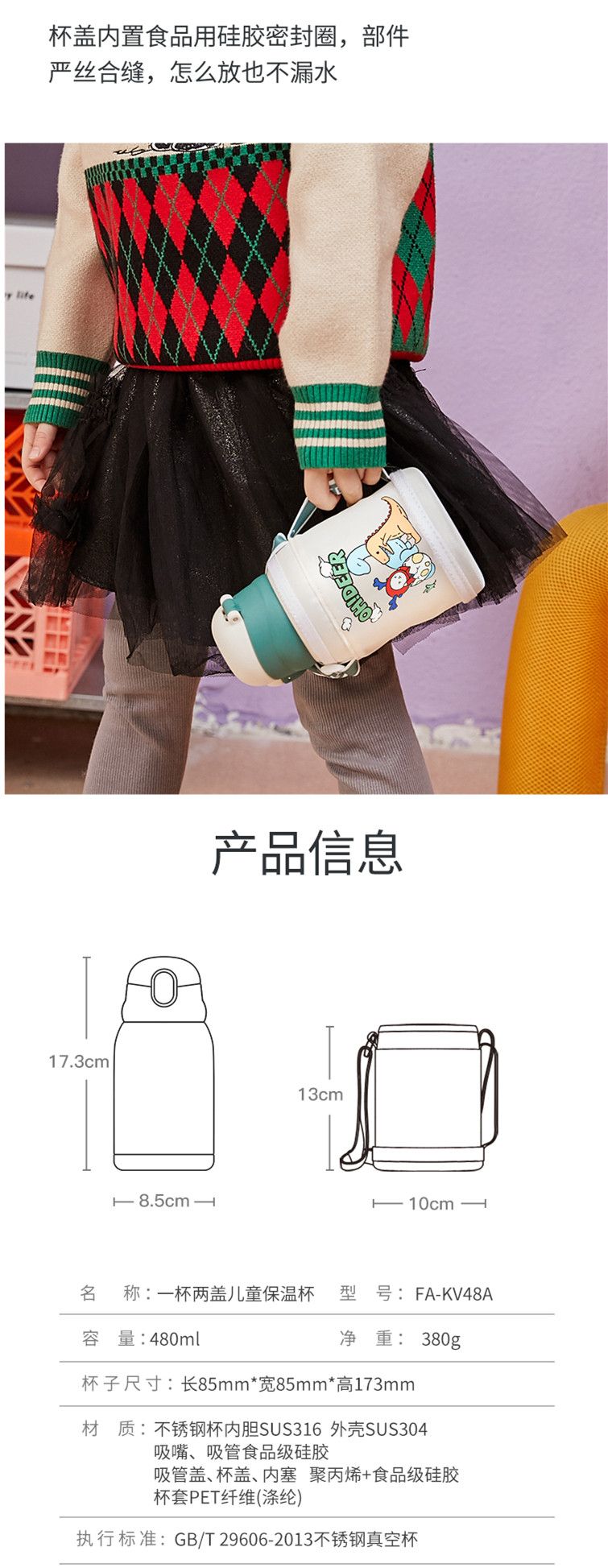 商品名称:Face 儿童吸管保温杯水杯(含杯套/一杯两盖)(480ml)