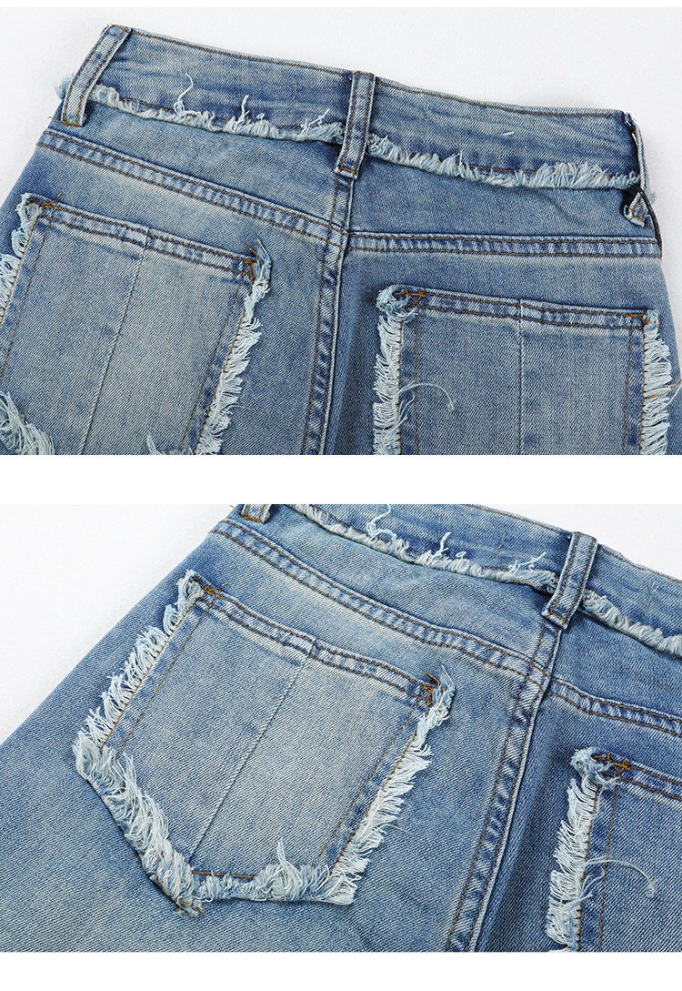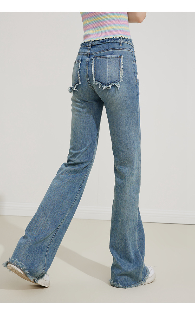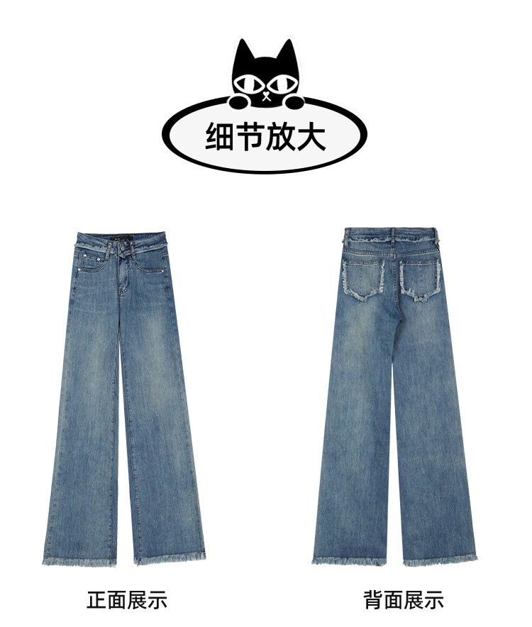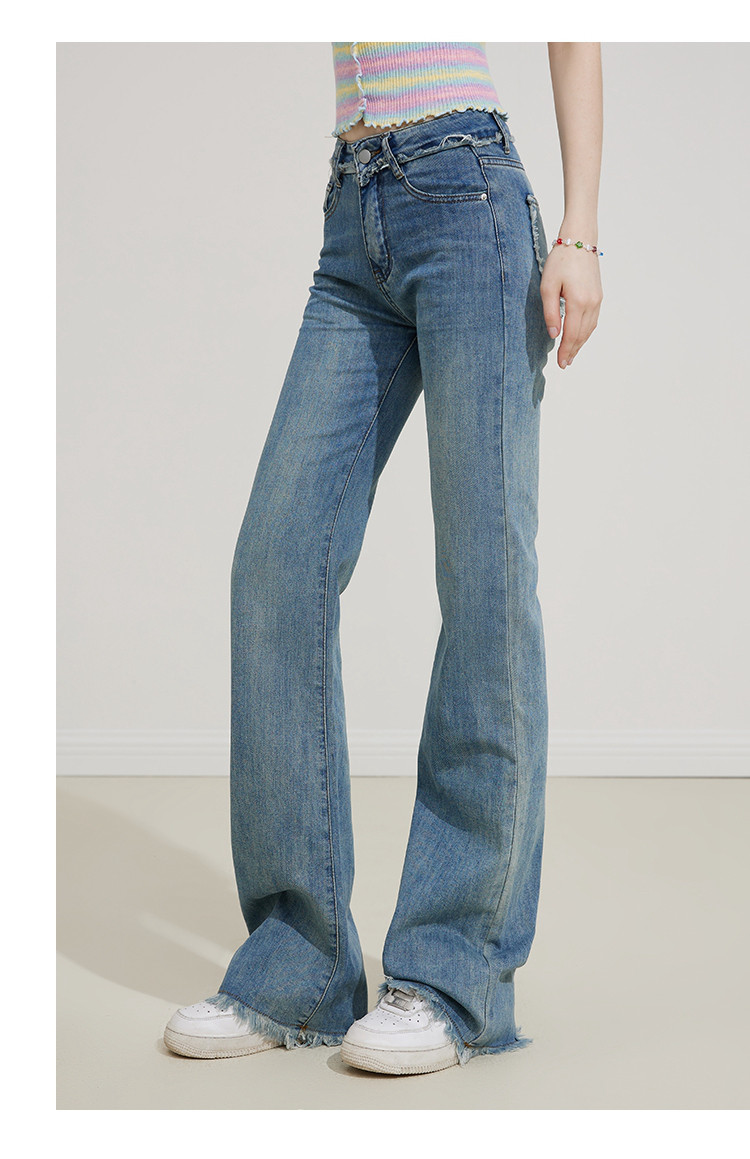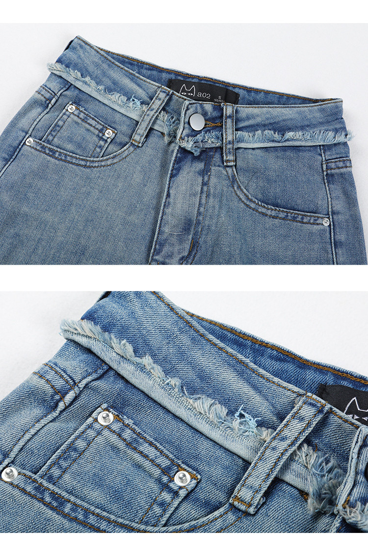 夏季裤脚毛边设计感直筒裤高腰休闲百搭女式牛仔裤 260701