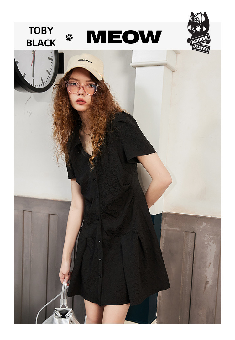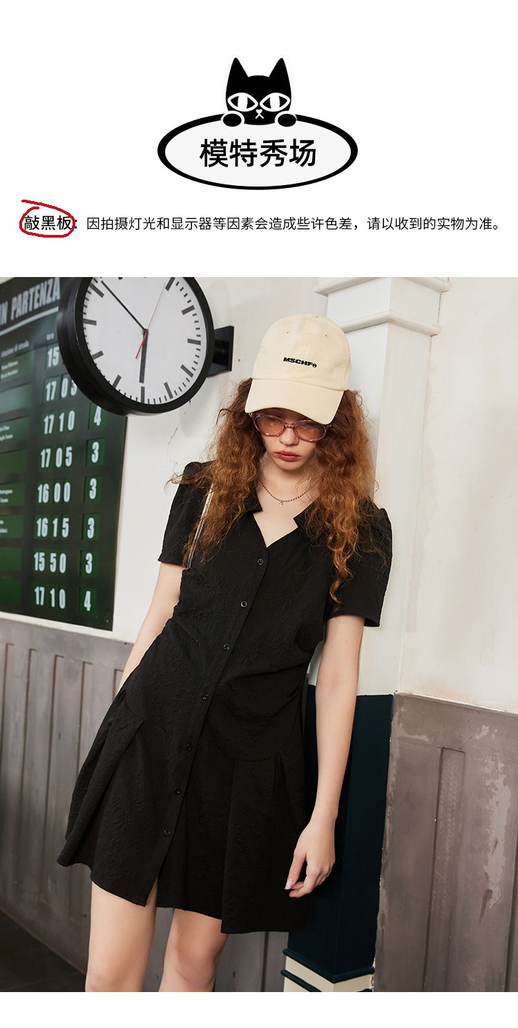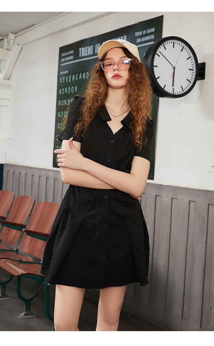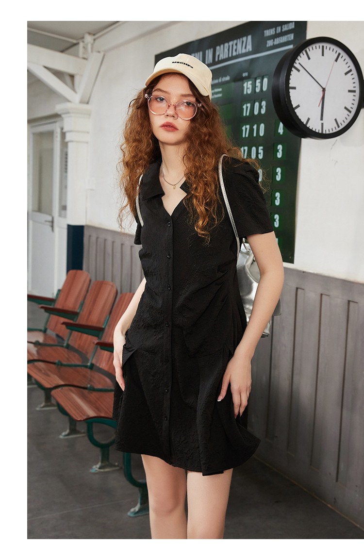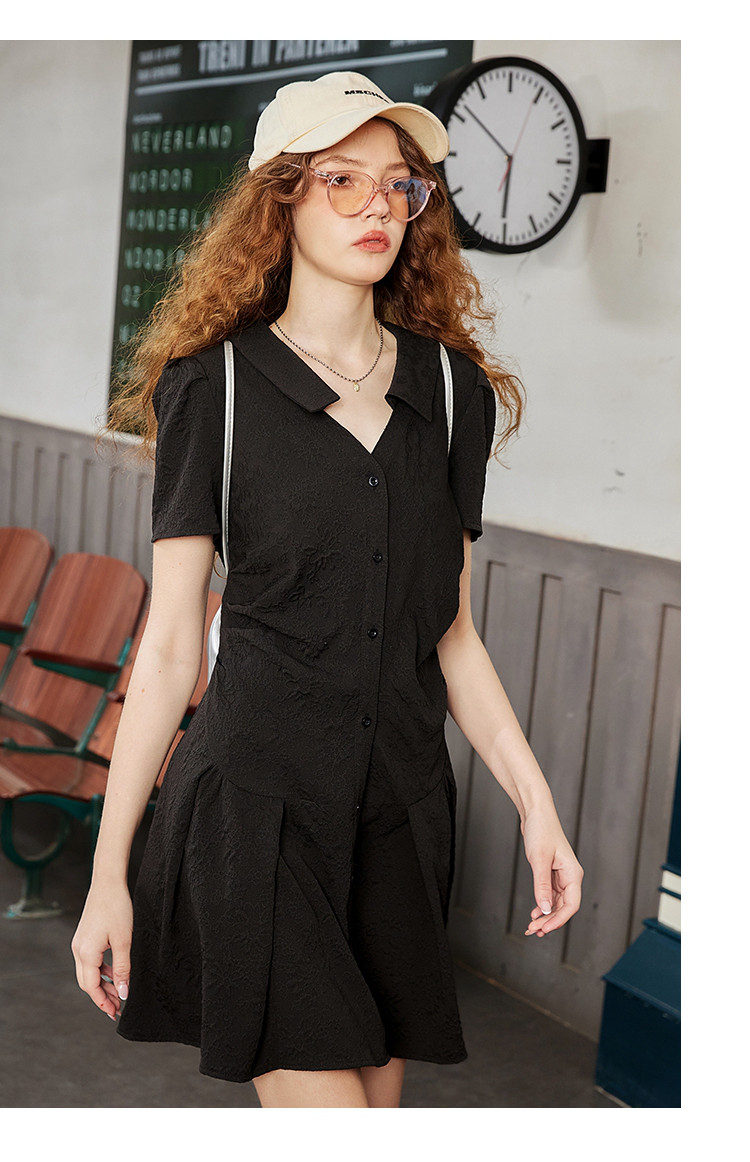 商品名称:夏季V领高级感褶皱衬衫裙正肩气质百褶连衣裙 701661