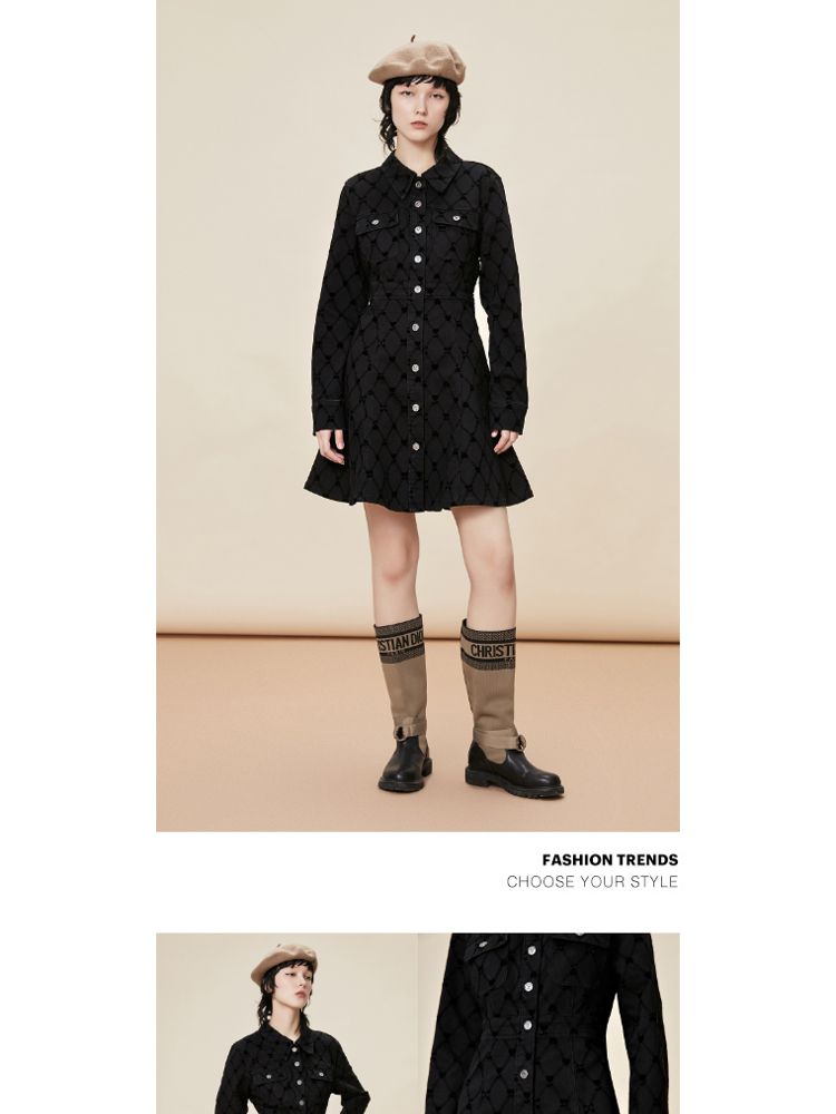 商品名称:【A字收腰】夏季高腰短款长袖牛仔连衣裙女 626970