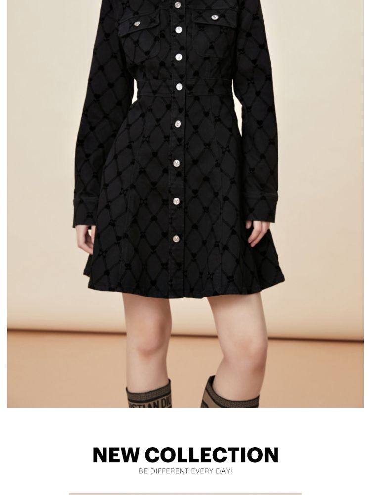 【A字收腰】夏季高腰短款长袖牛仔连衣裙女 626970
