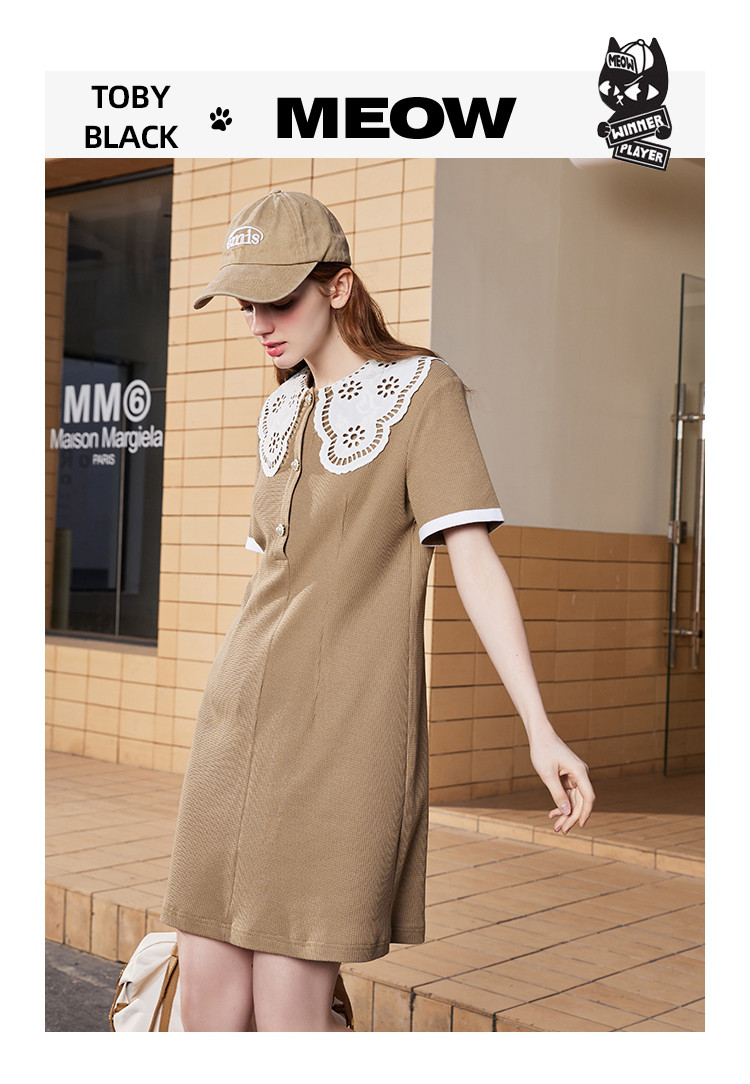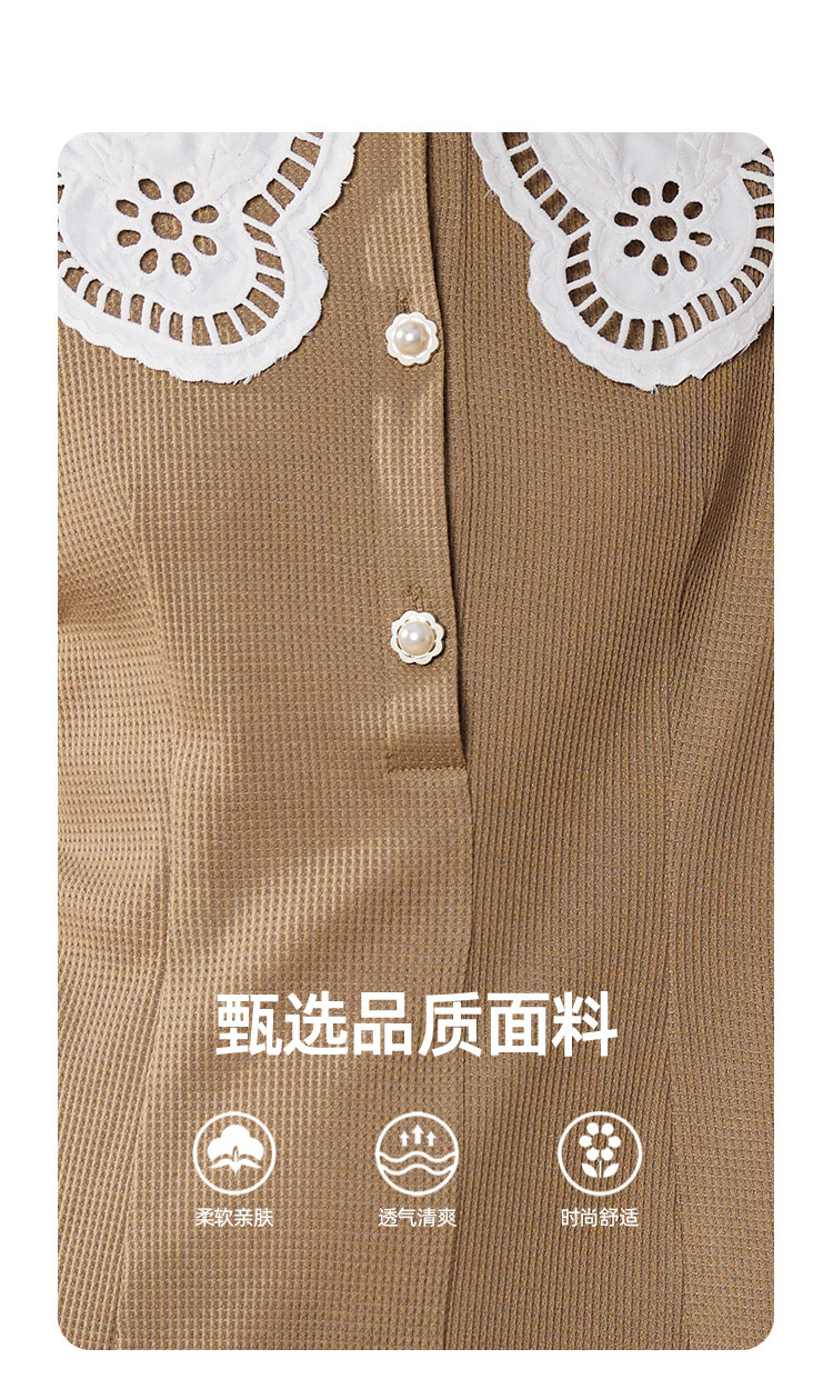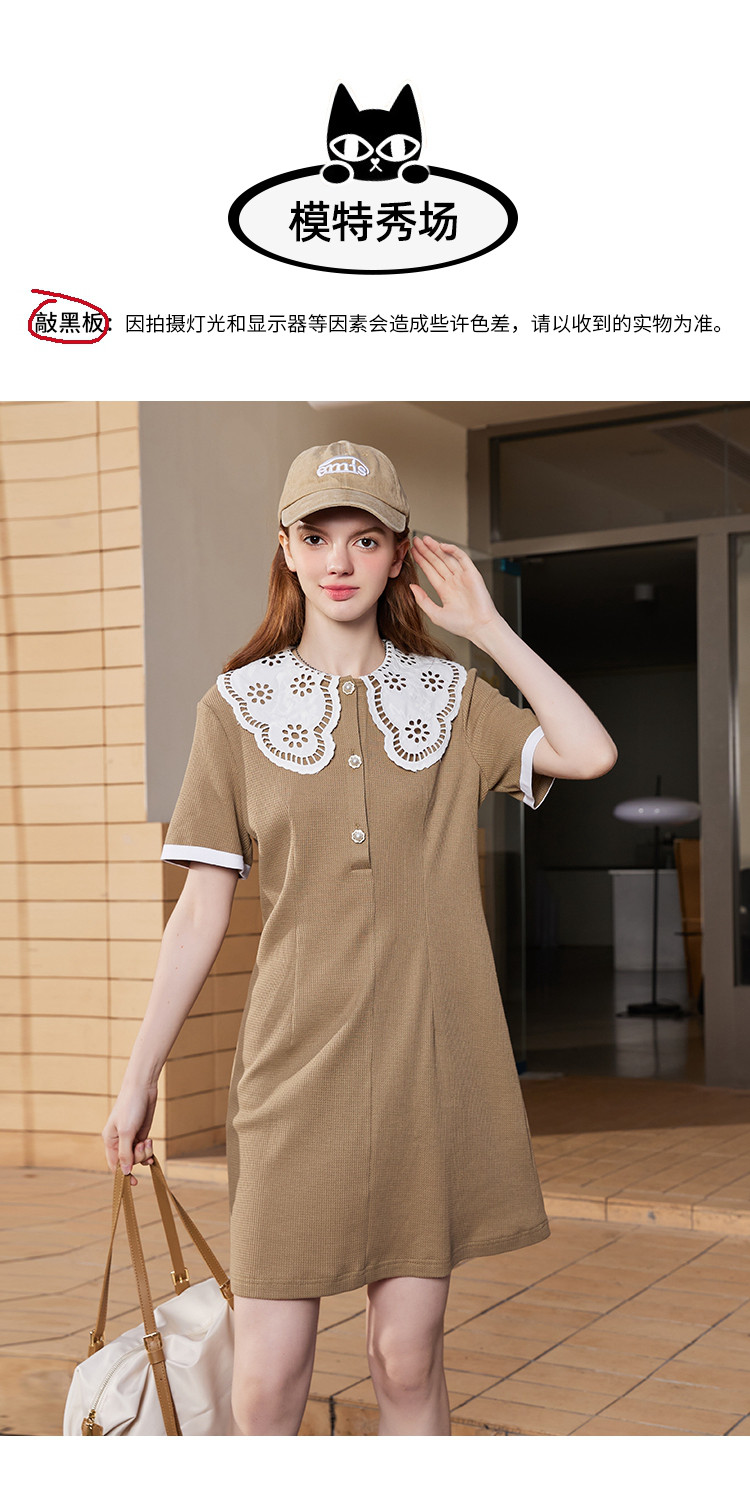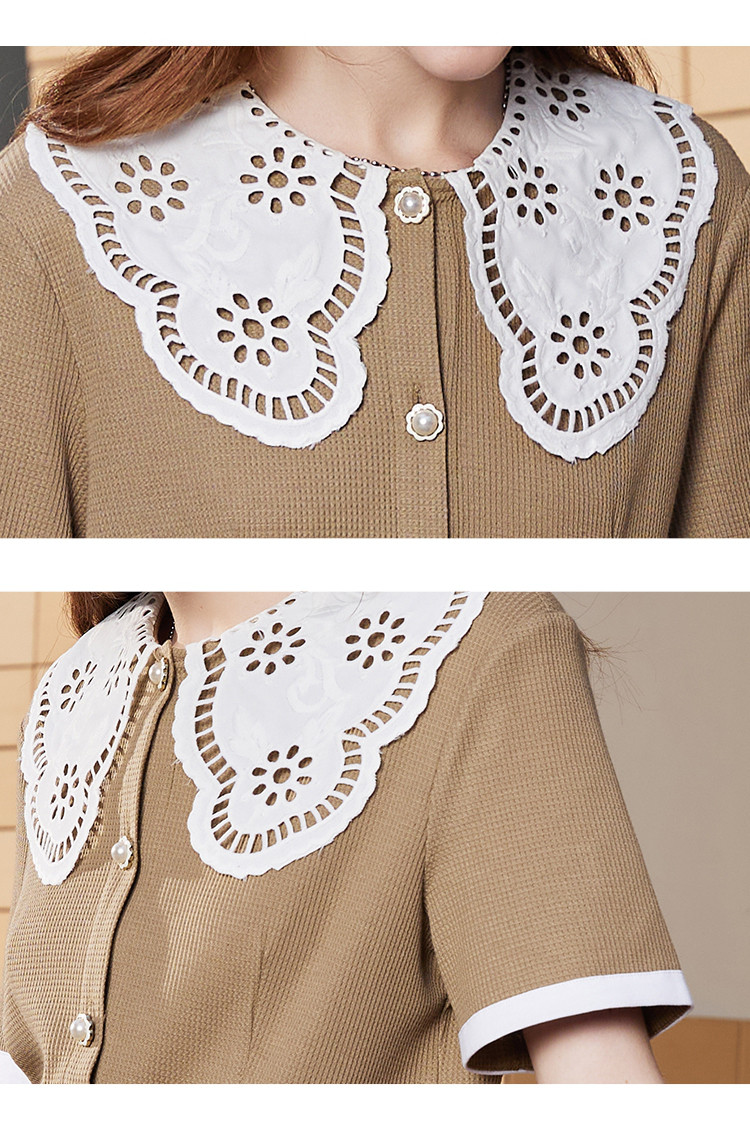 商品名称:夏季蕾丝花边领正肩休闲短袖上衣收腰气质连衣裙 860253