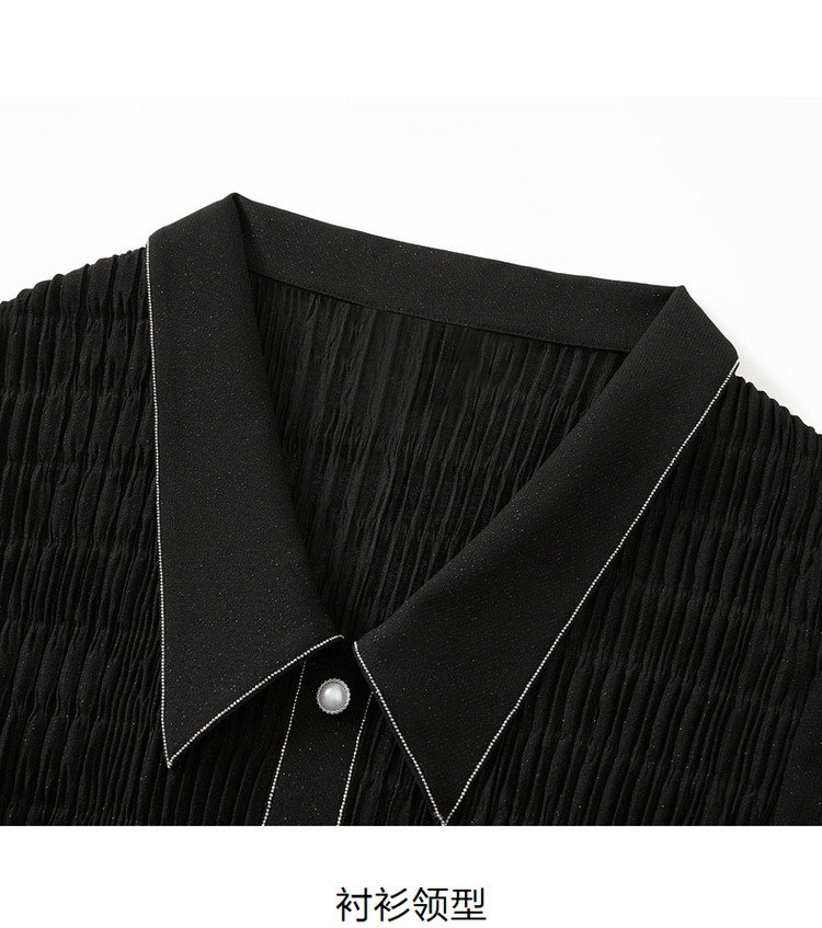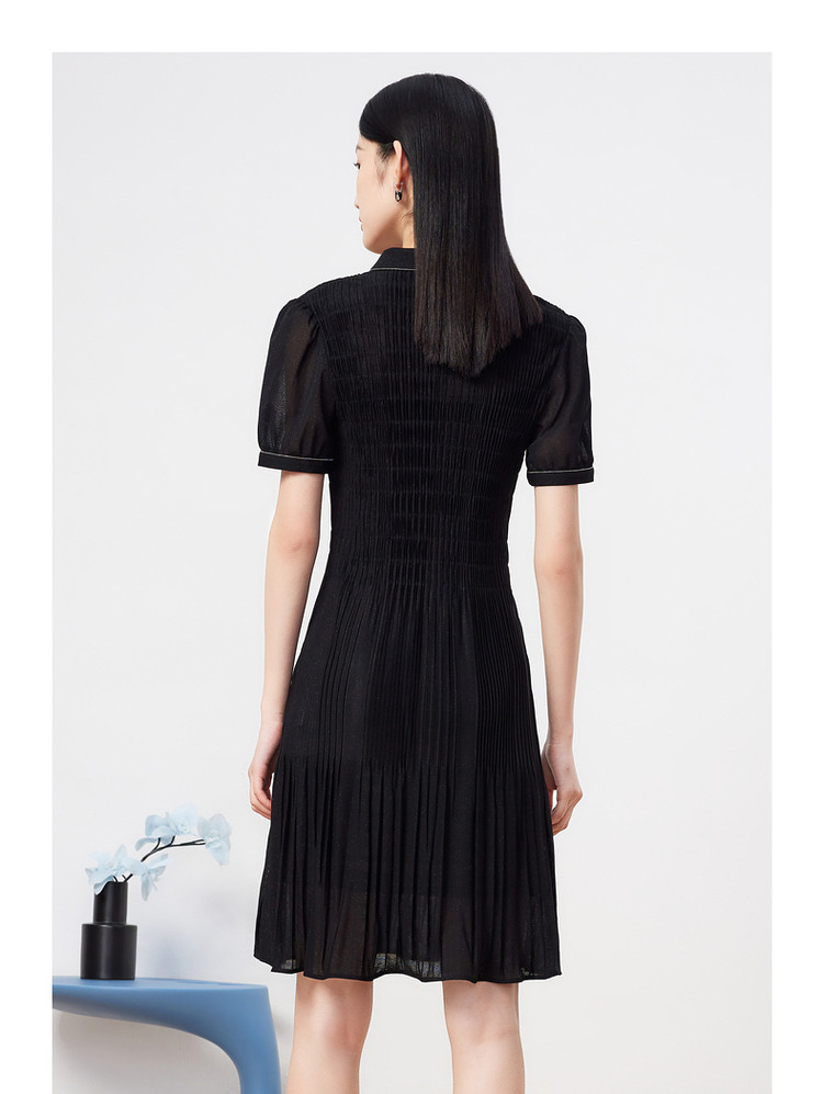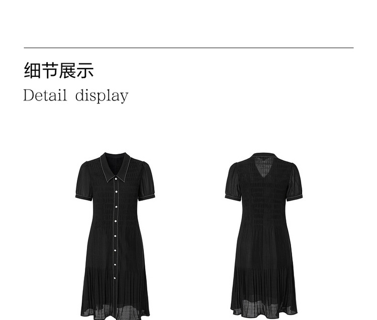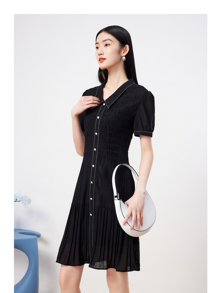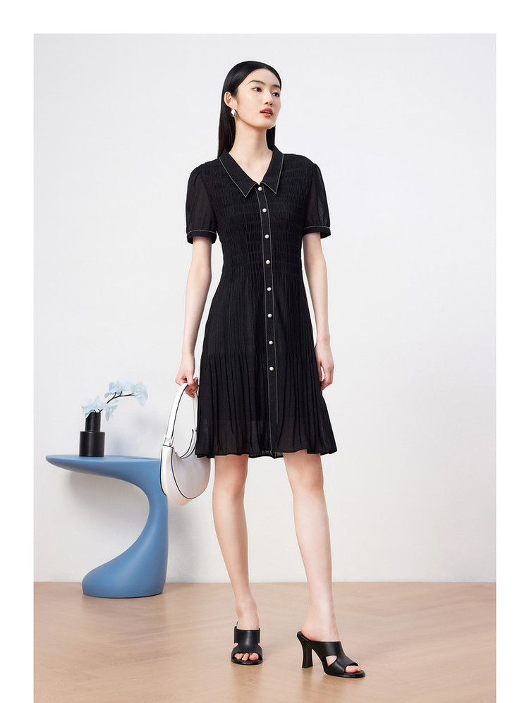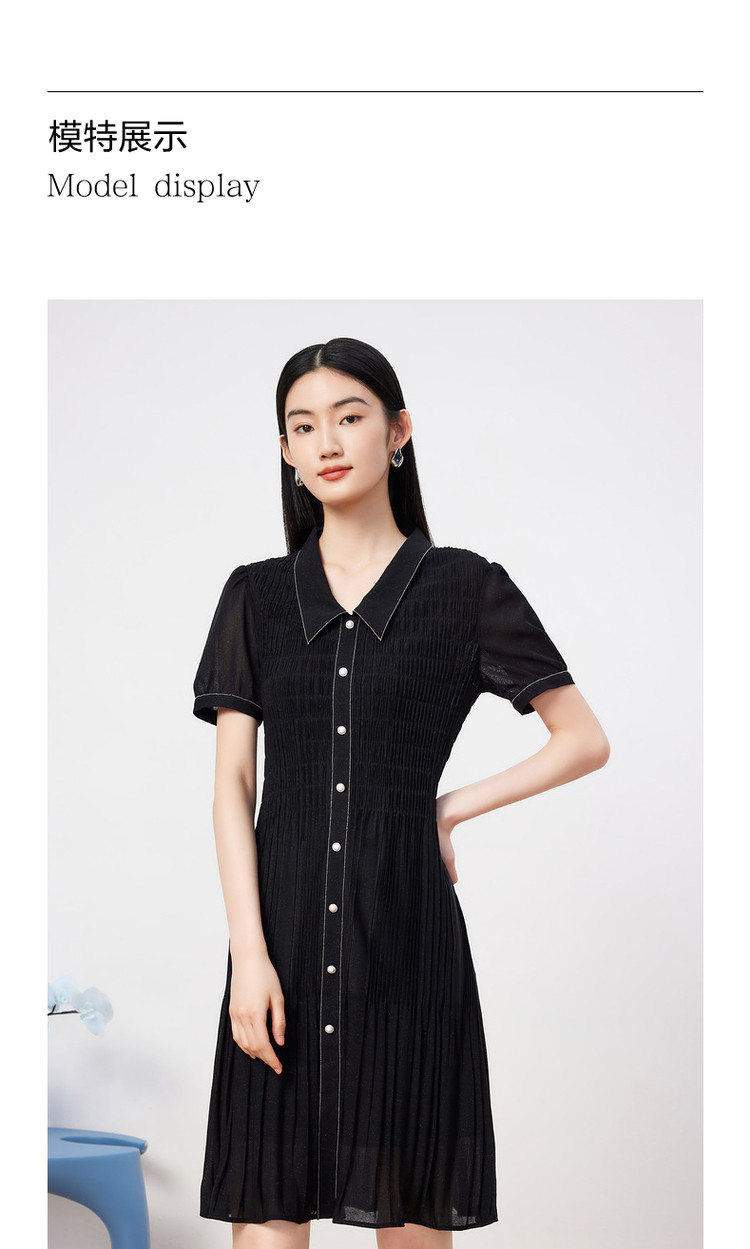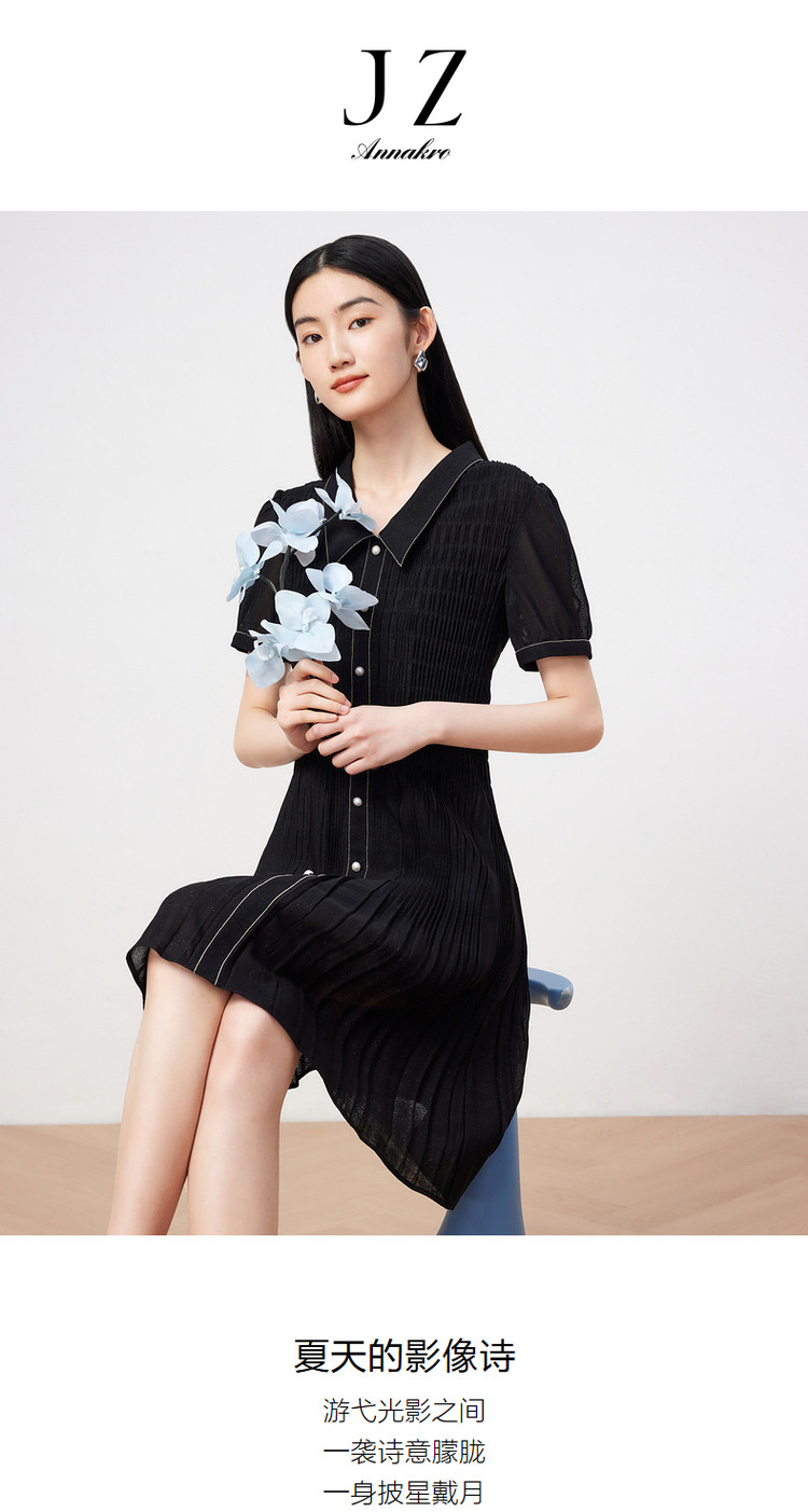 商品名称:玖姿旗下安娜蔻系列星空网纱连衣裙女装夏季衬衫领撞色边裙子 043340