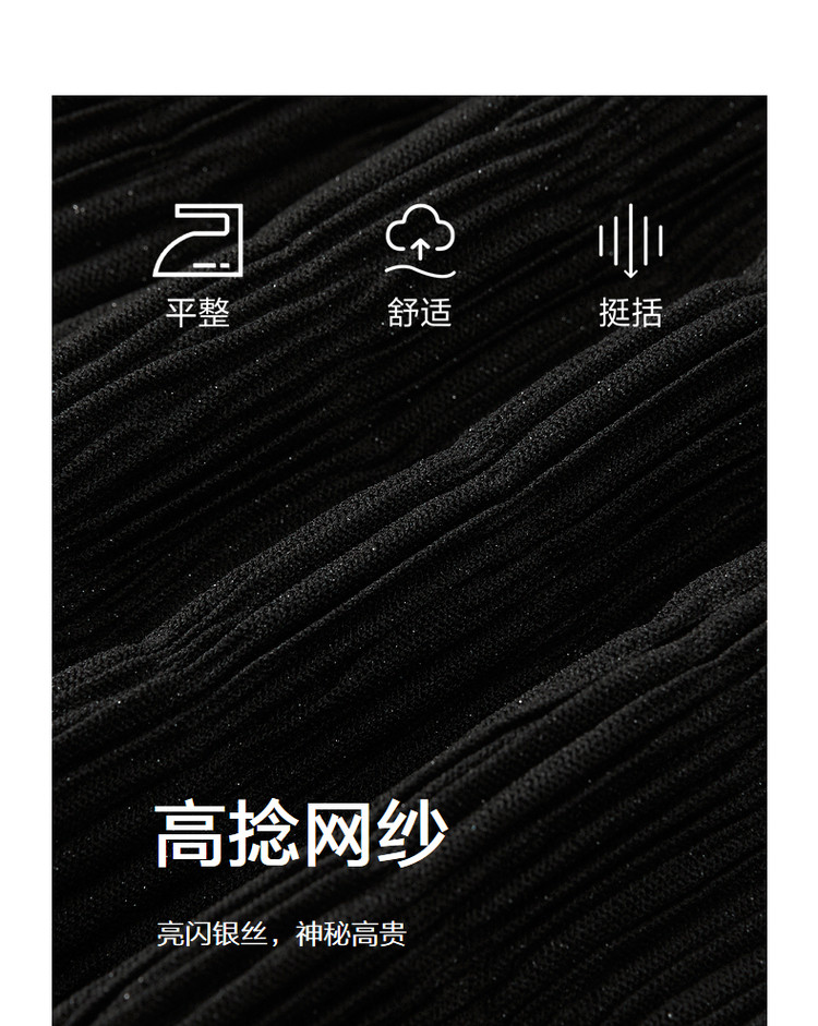 玖姿旗下安娜蔻系列星空网纱连衣裙女装夏季衬衫领撞色边裙子 043340
