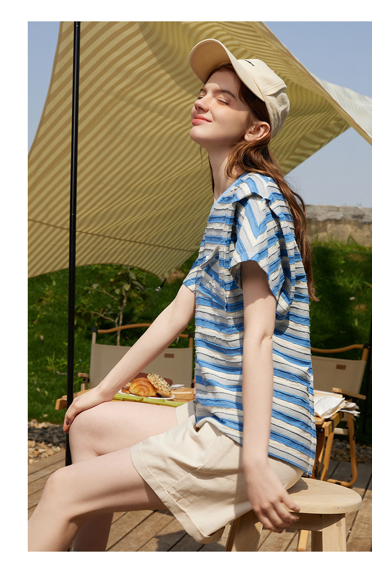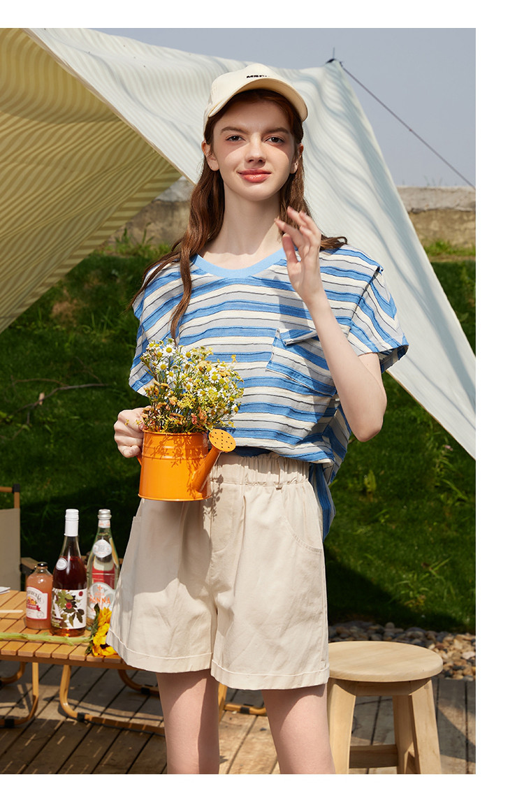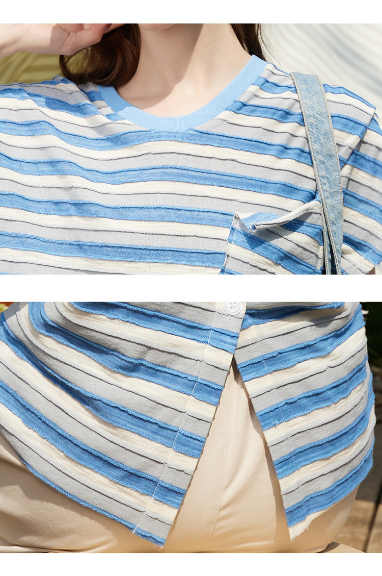 商品名称:夏季复古设计背面纽扣设计短袖上衣个性女式T恤 503261
