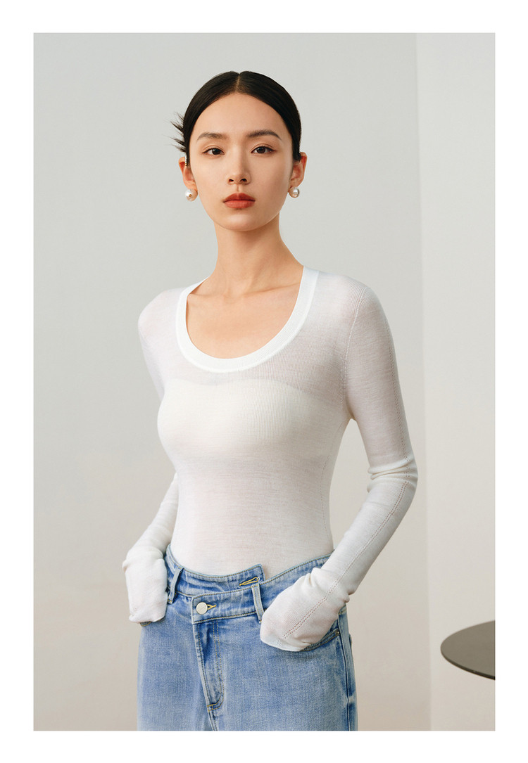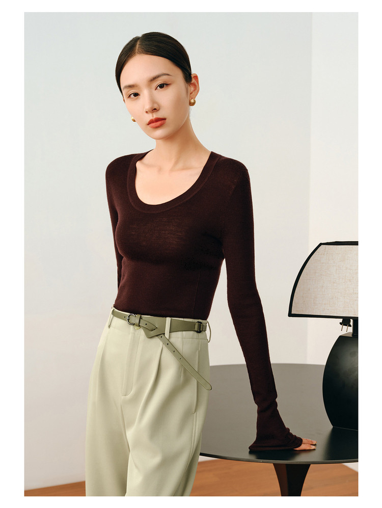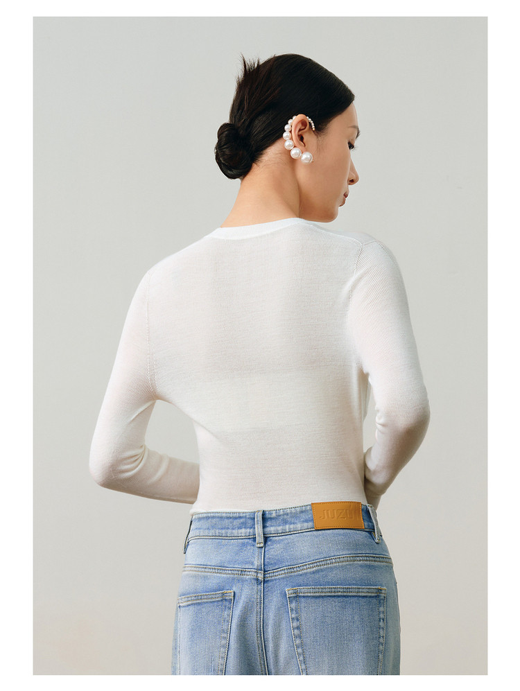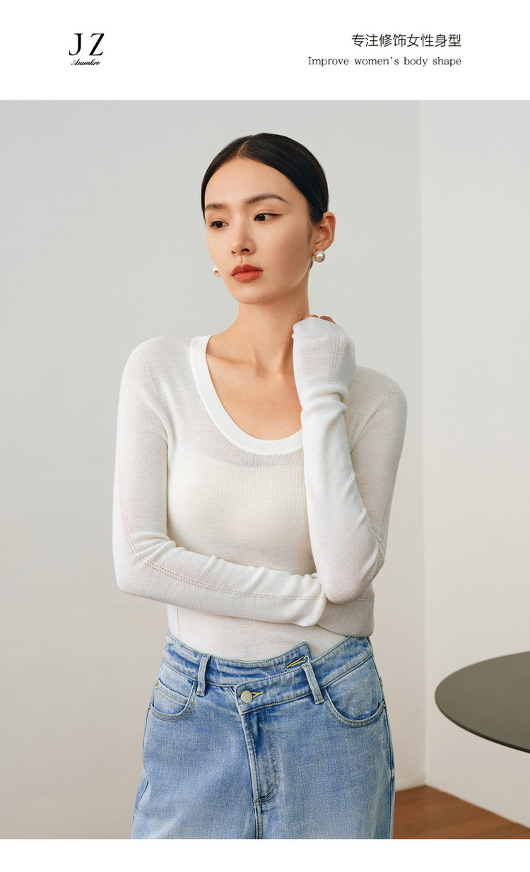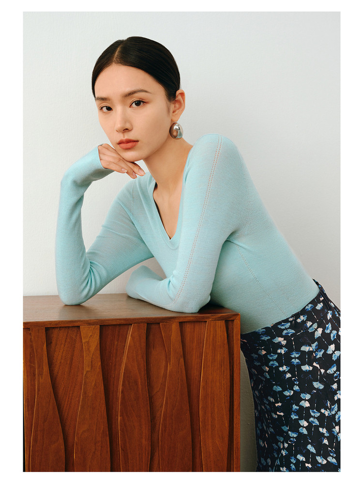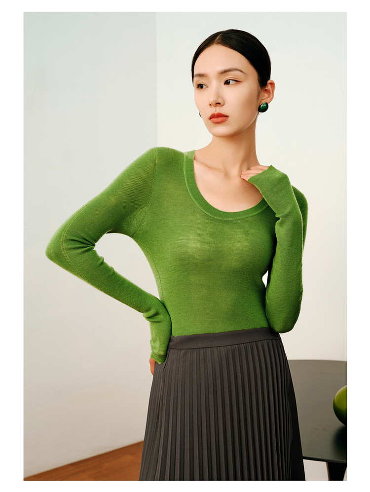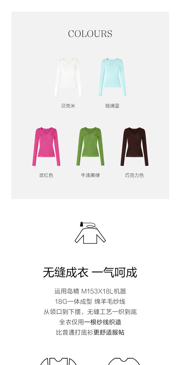商品名称:【无缝一体】玖姿旗下安娜蔻系列薄荷曼波可机洗羊毛无缝打底衫 145676