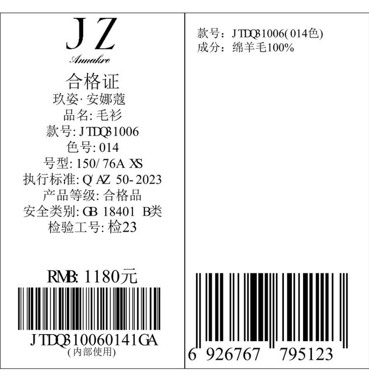 【无缝一体】玖姿旗下安娜蔻系列薄荷曼波可机洗羊毛无缝打底衫 145676