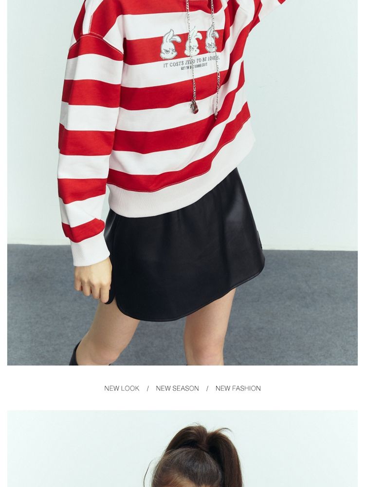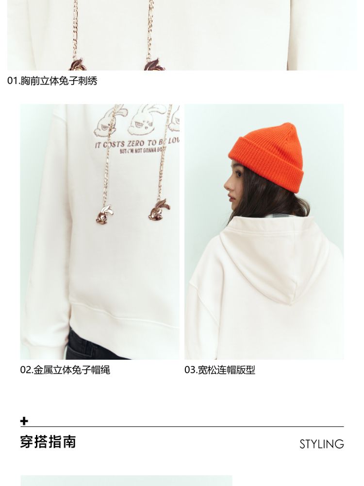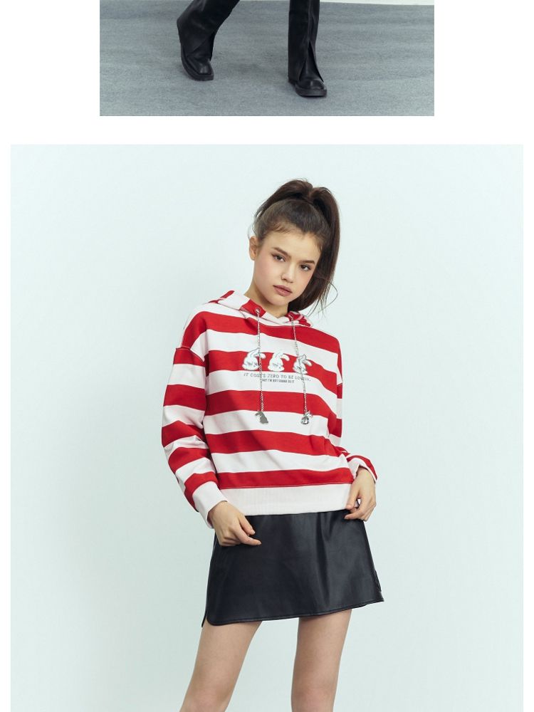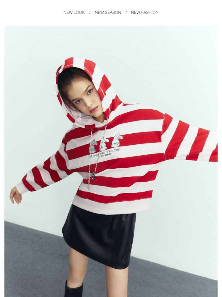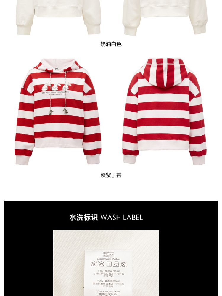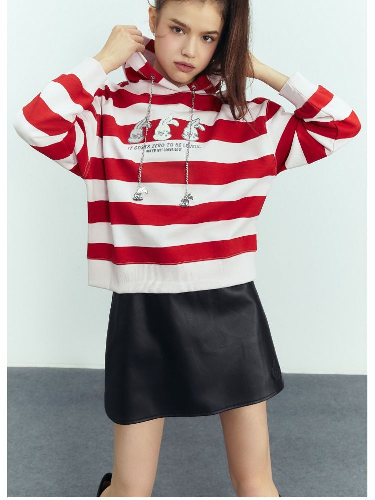 商品名称:【时尚条纹】夏季兔子刺绣宽松连帽卫衣女 005978