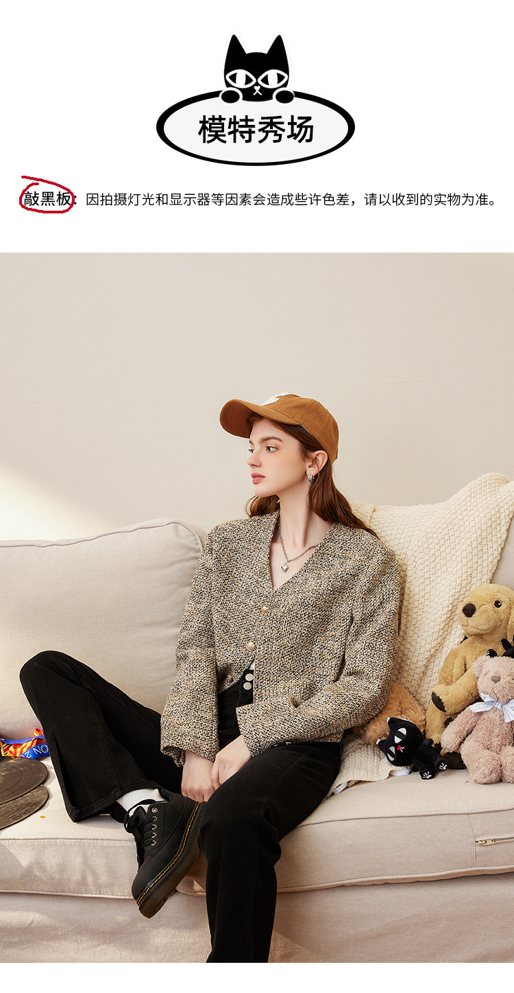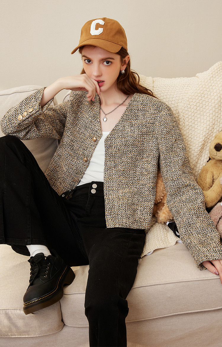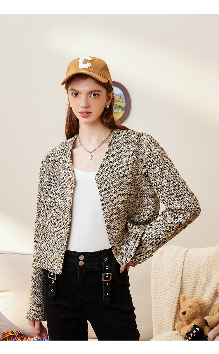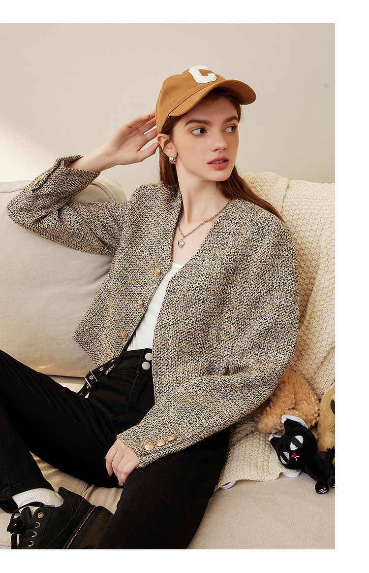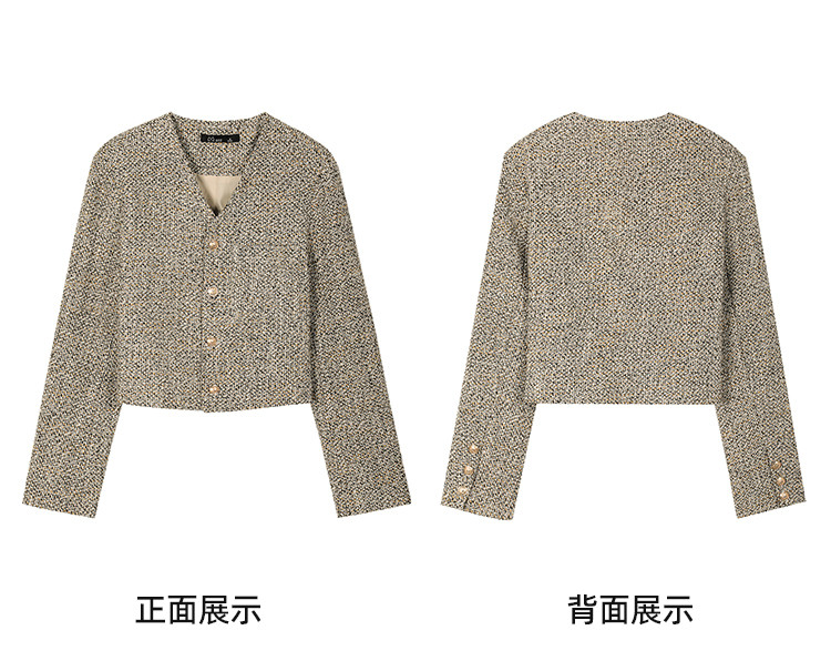 商品名称:春秋款粗花呢V领休闲小香风外套短款小个子女式外套 287901