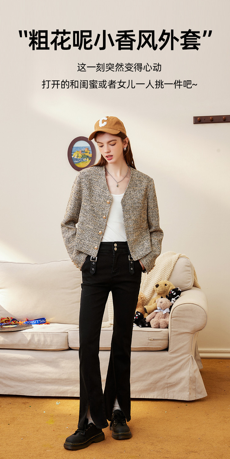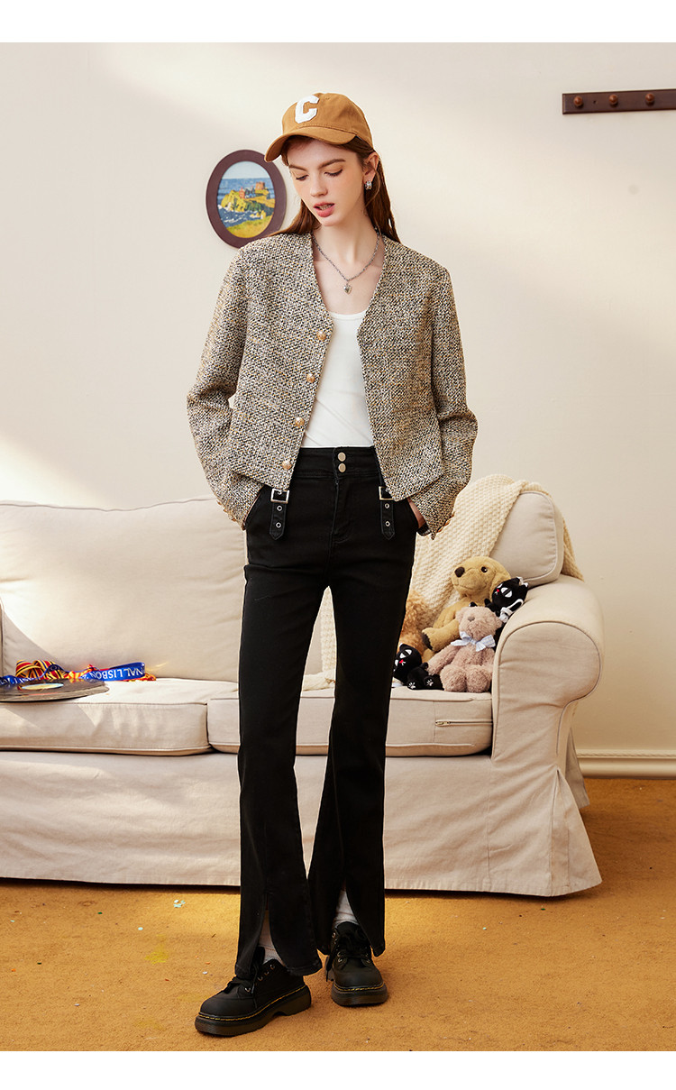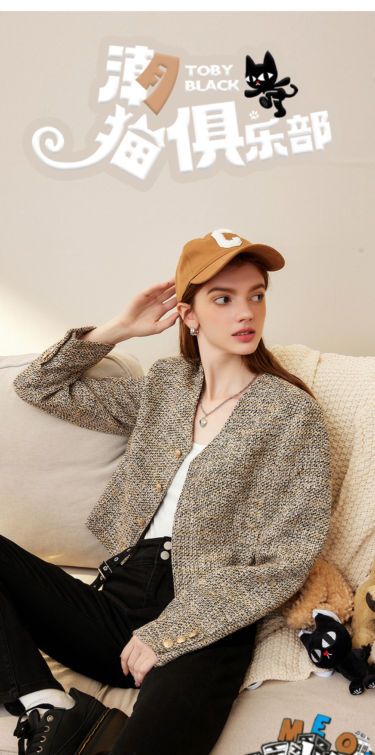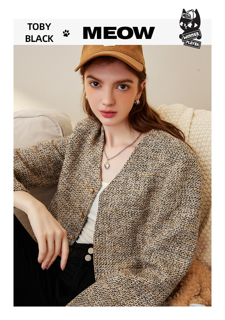 商品名称:春秋款粗花呢V领休闲小香风外套短款小个子女式外套 287901