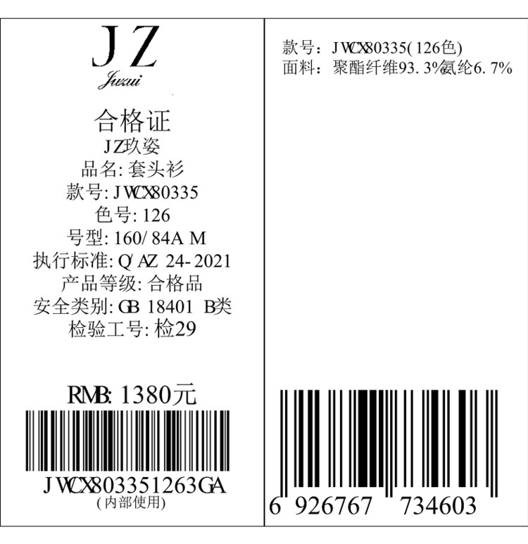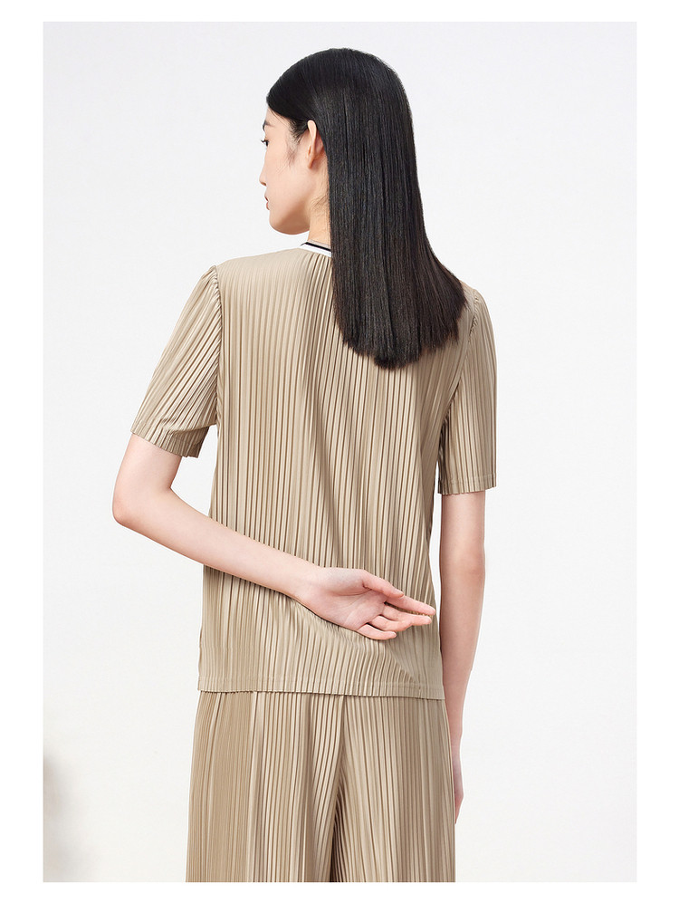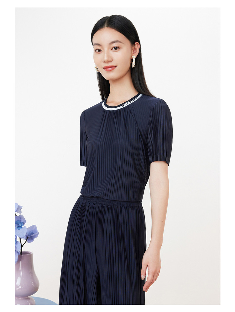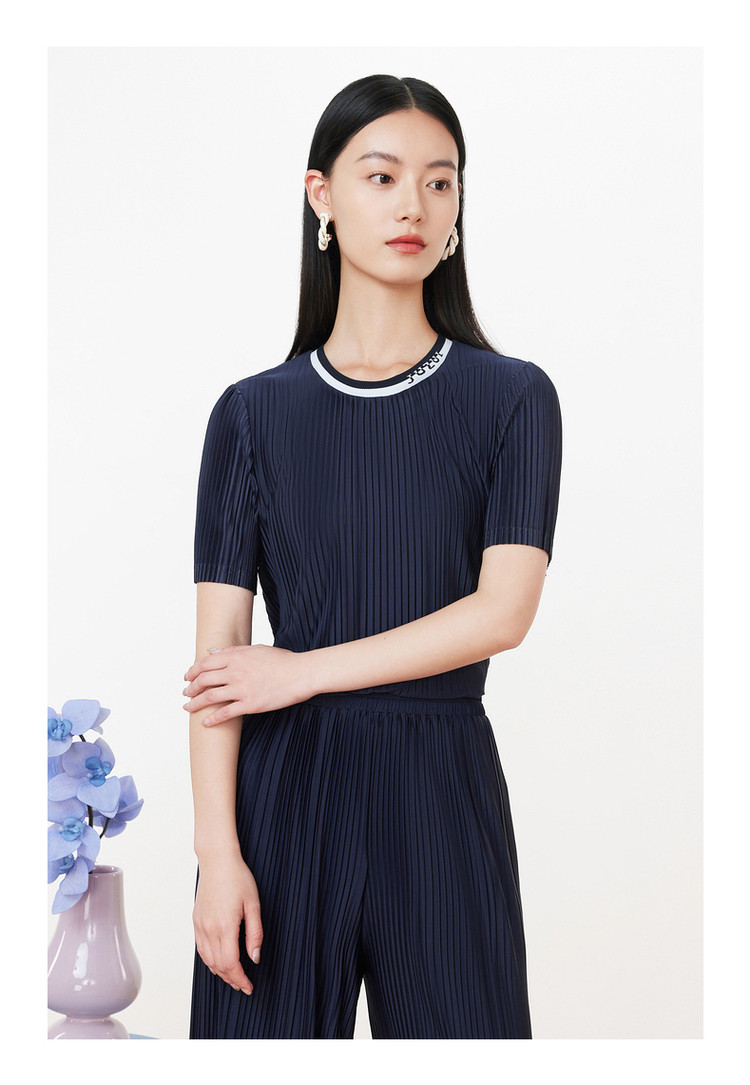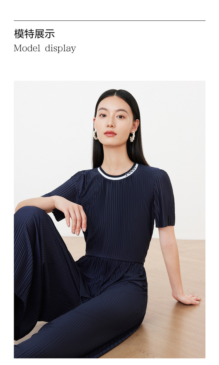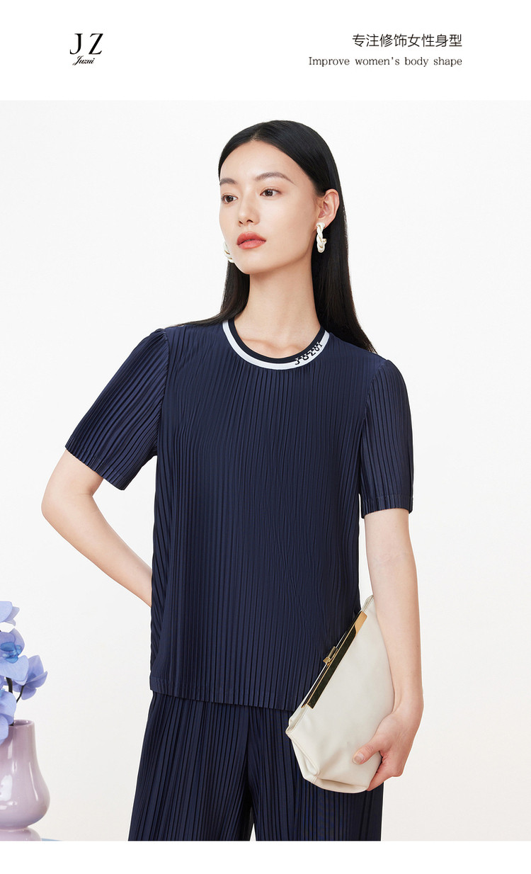 商品名称:JZ玖姿商场同款压褶短袖T恤女装夏季透气上衣 994316