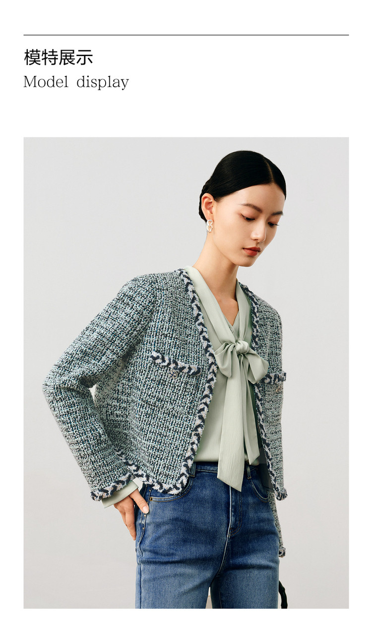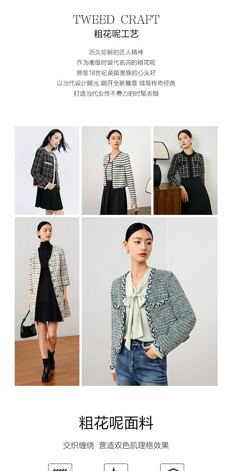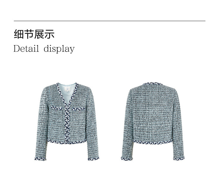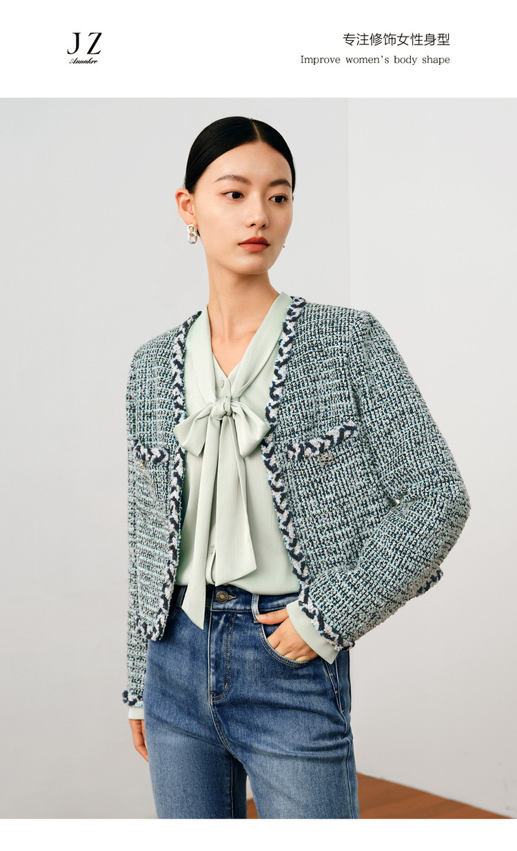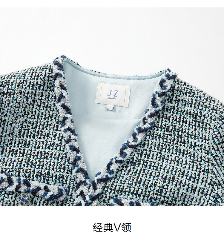 商品名称:玖姿旗下安娜蔻系列法式复古轻熟V领H型小香风长袖外套女秋季 651084