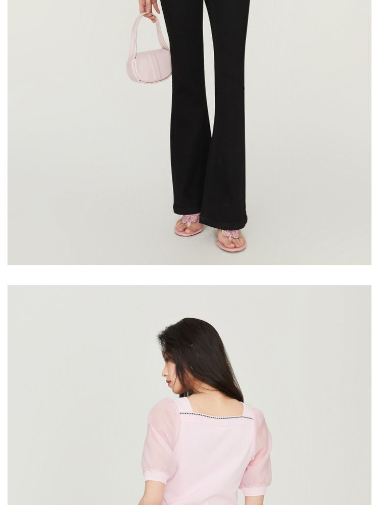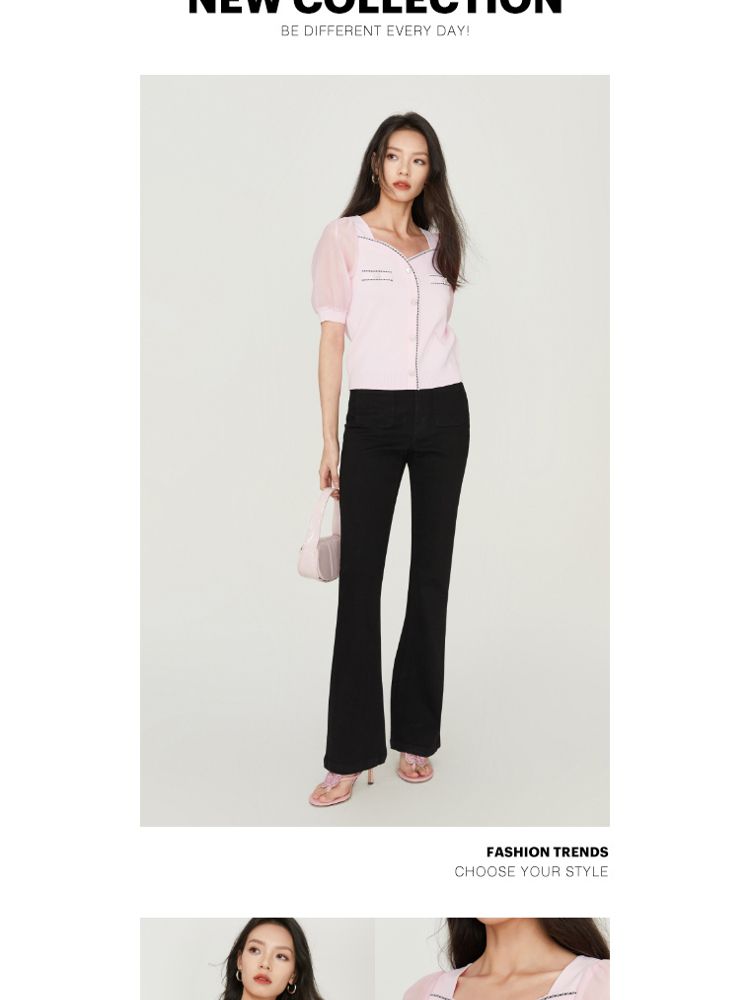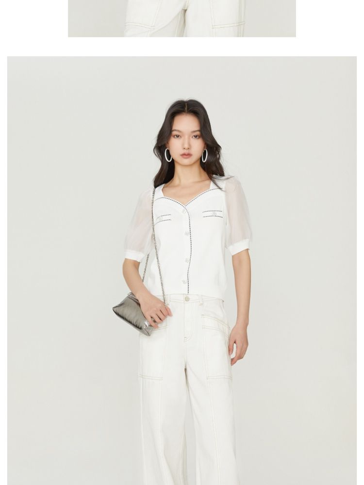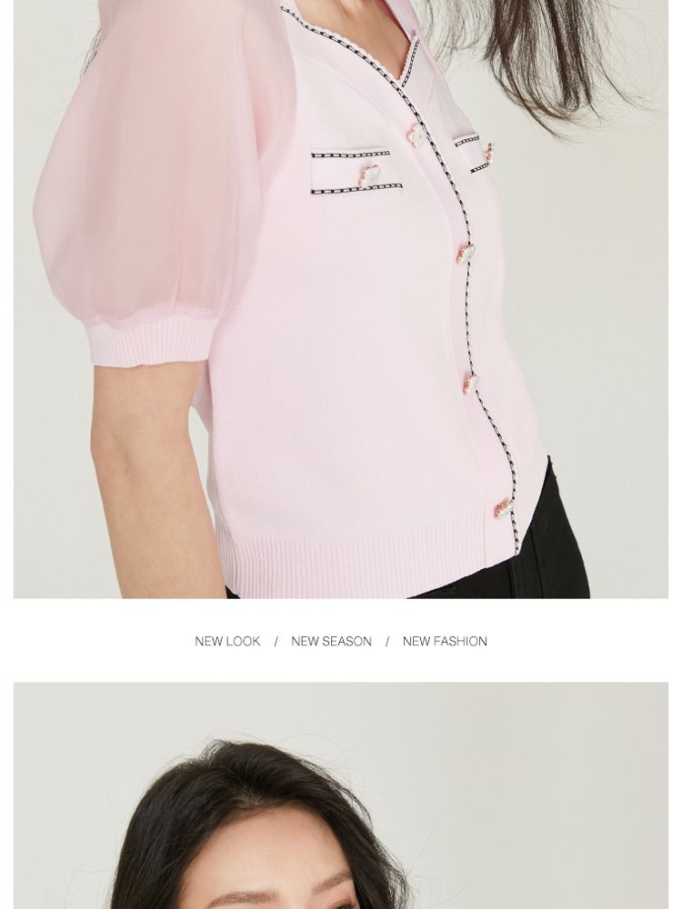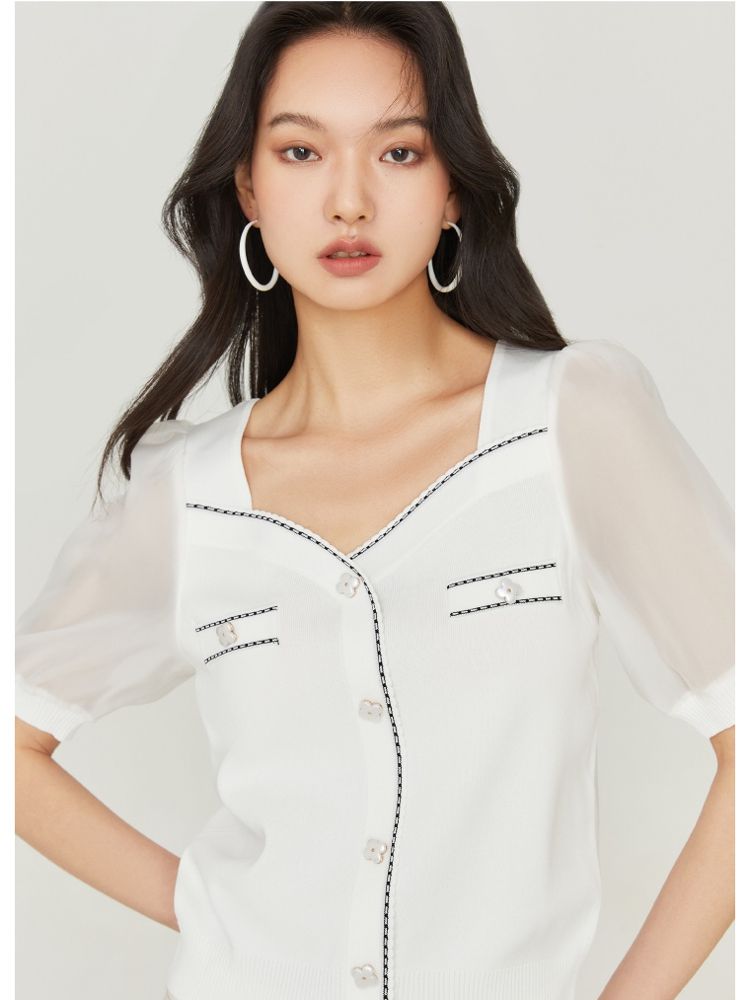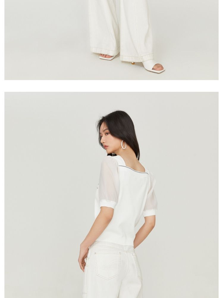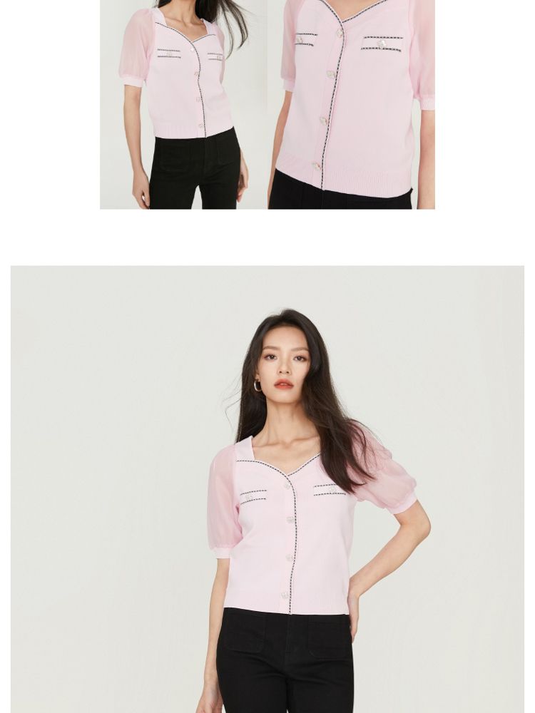 【福利特卖款】夏季休闲方领泡泡袖短袖针织衫女 725338