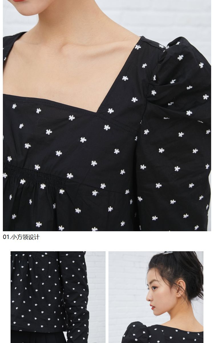 商品名称:【复古碎花】夏季小方领设计泡泡袖长袖衬衫女 249882