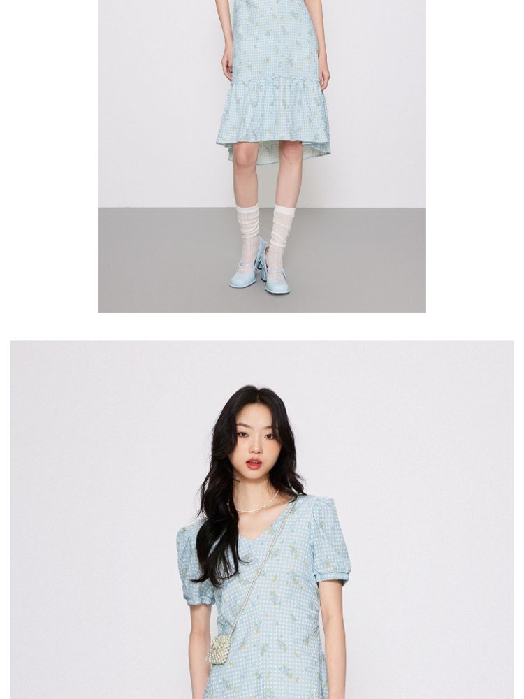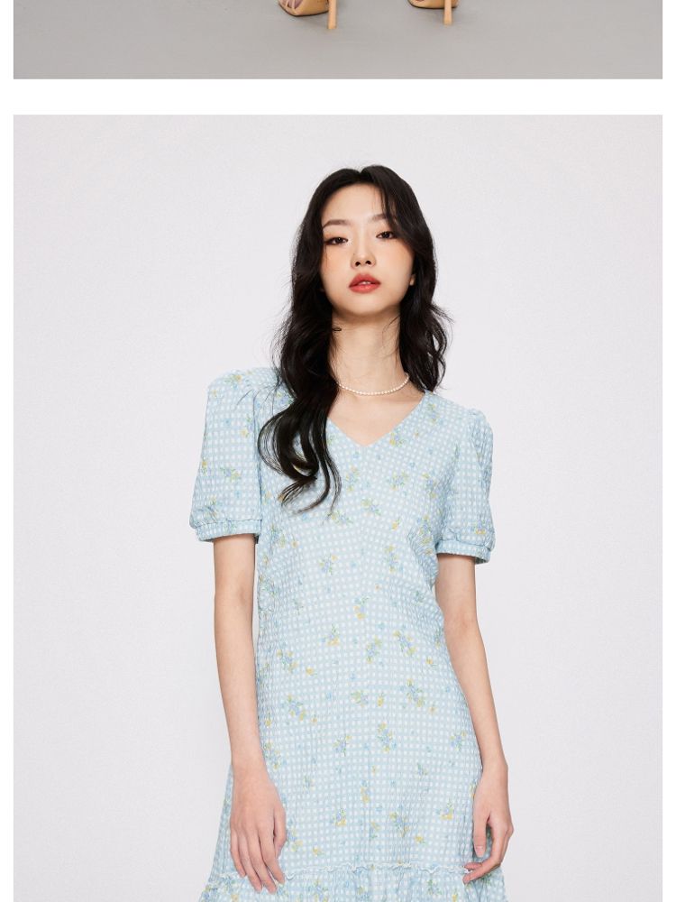 商品名称:【气质碎花连衣裙】夏季法式碎花格纹中长裙连衣裙女 042394