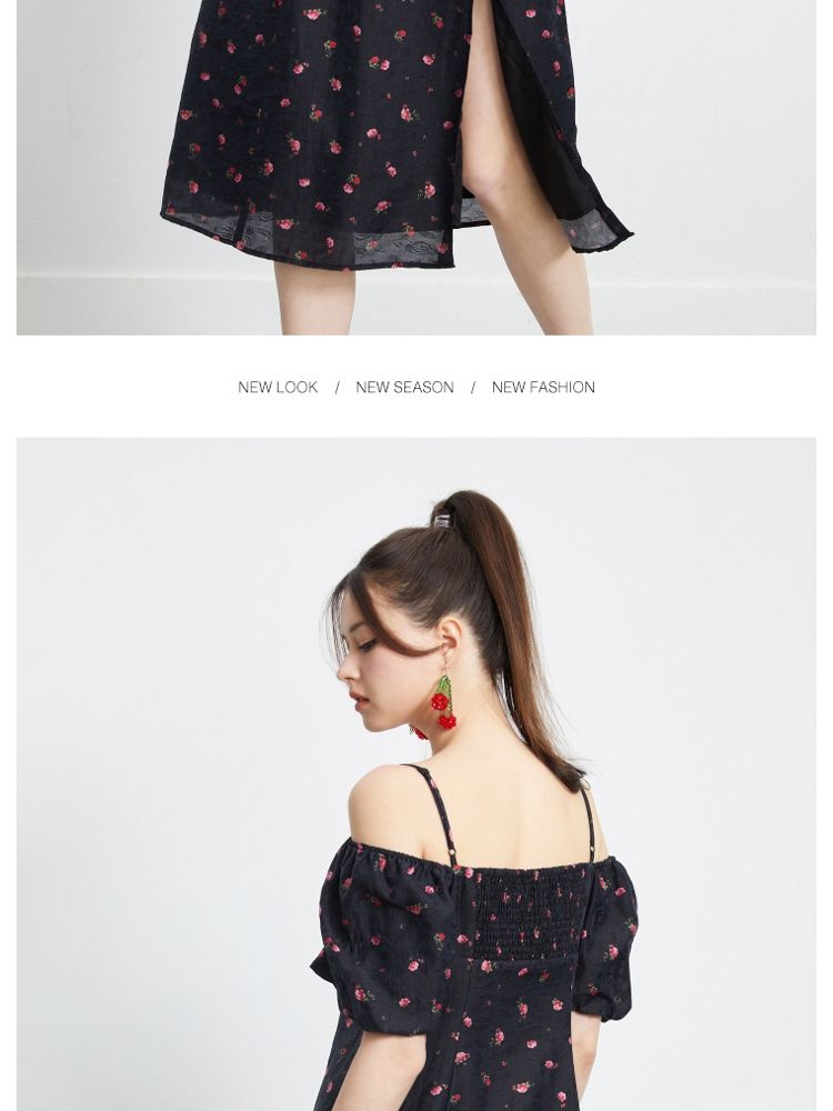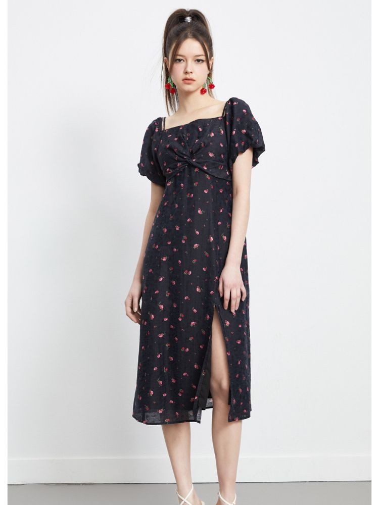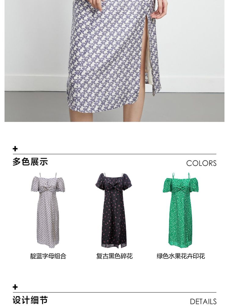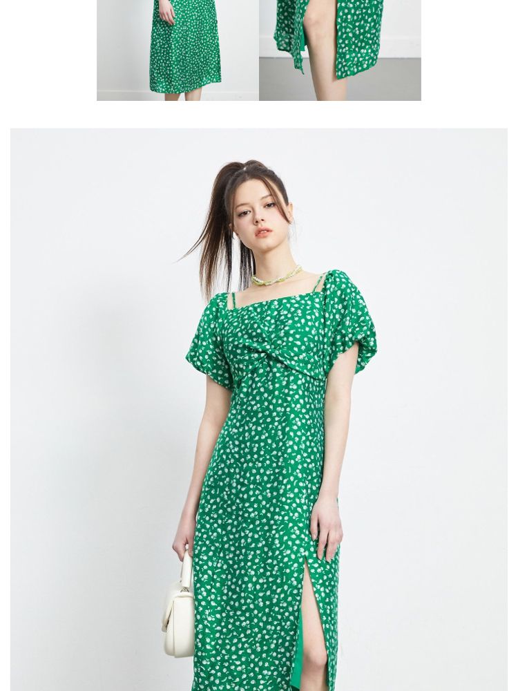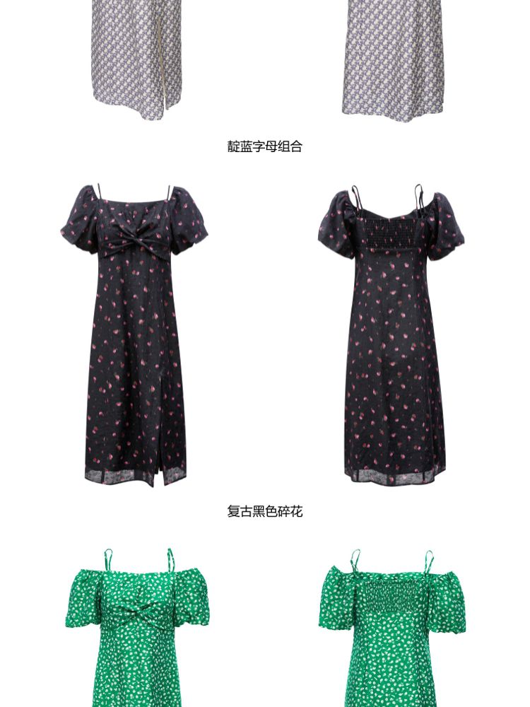 商品名称:【甜美时尚】夏季泡泡袖开叉中长款连衣裙女 627546