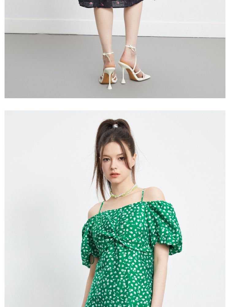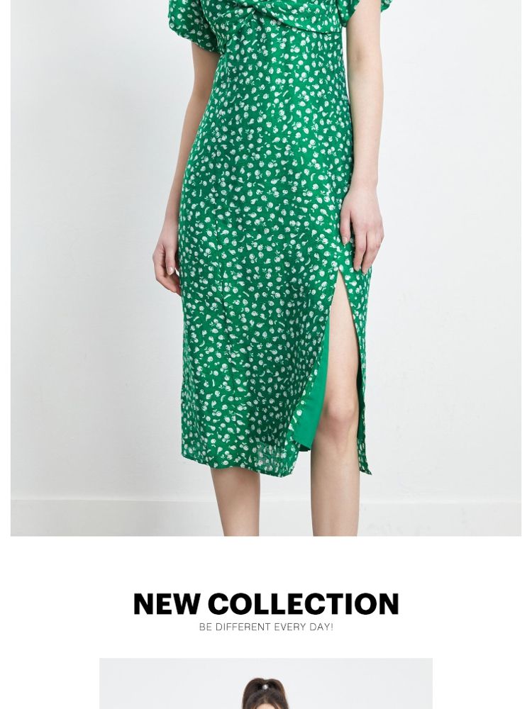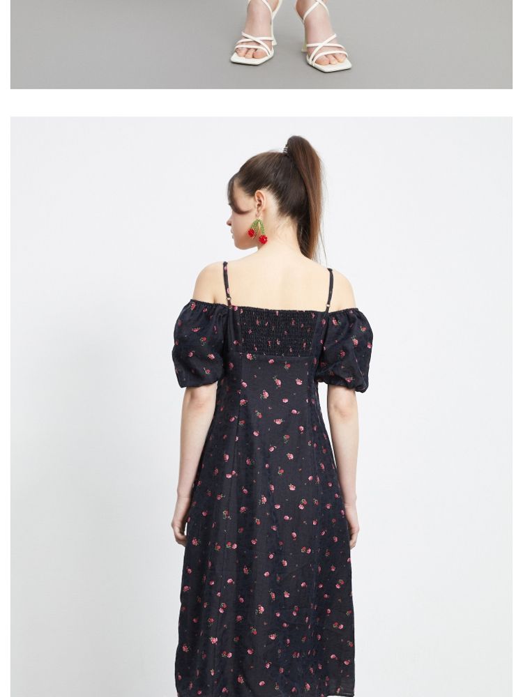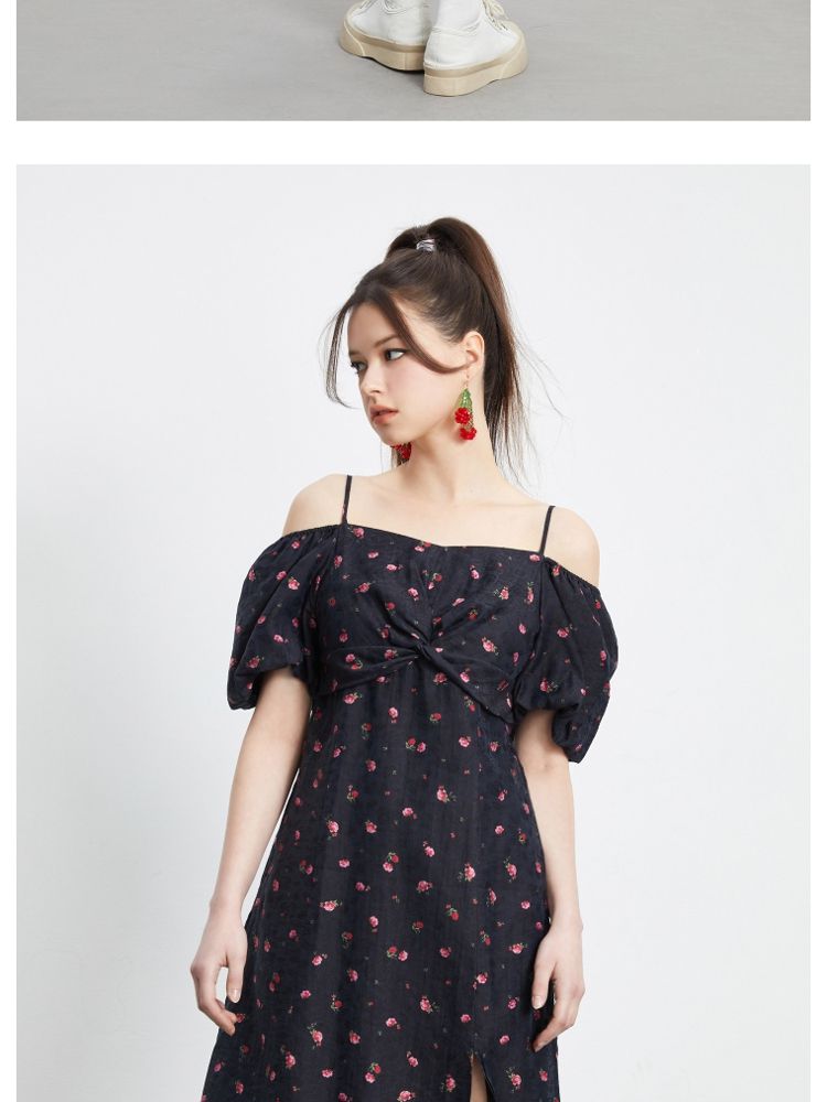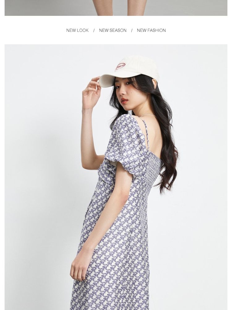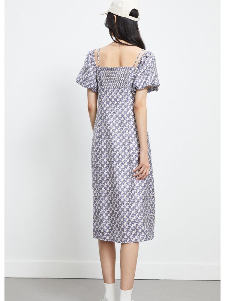 商品名称:【甜美时尚】夏季泡泡袖开叉中长款连衣裙女 627546