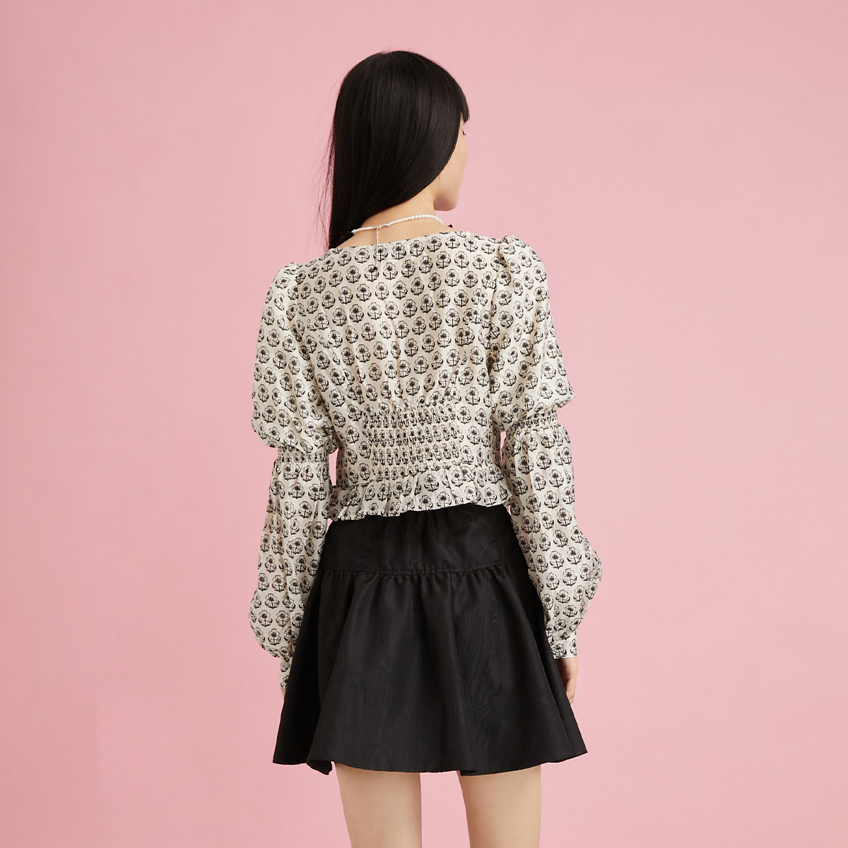 商品名称:【福利款】夏季短款修身碎花花边雪纺衫女 891930