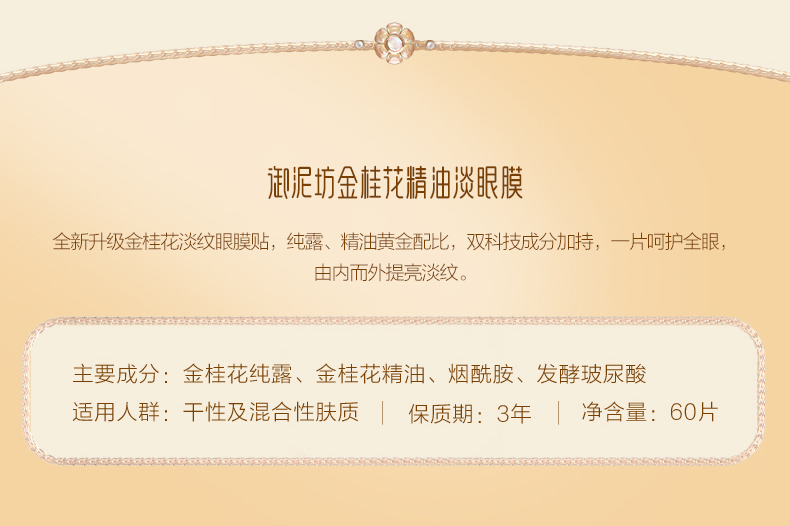商品名称:御泥坊 金桂花精油淡纹眼膜 60片 新老包装随机发货