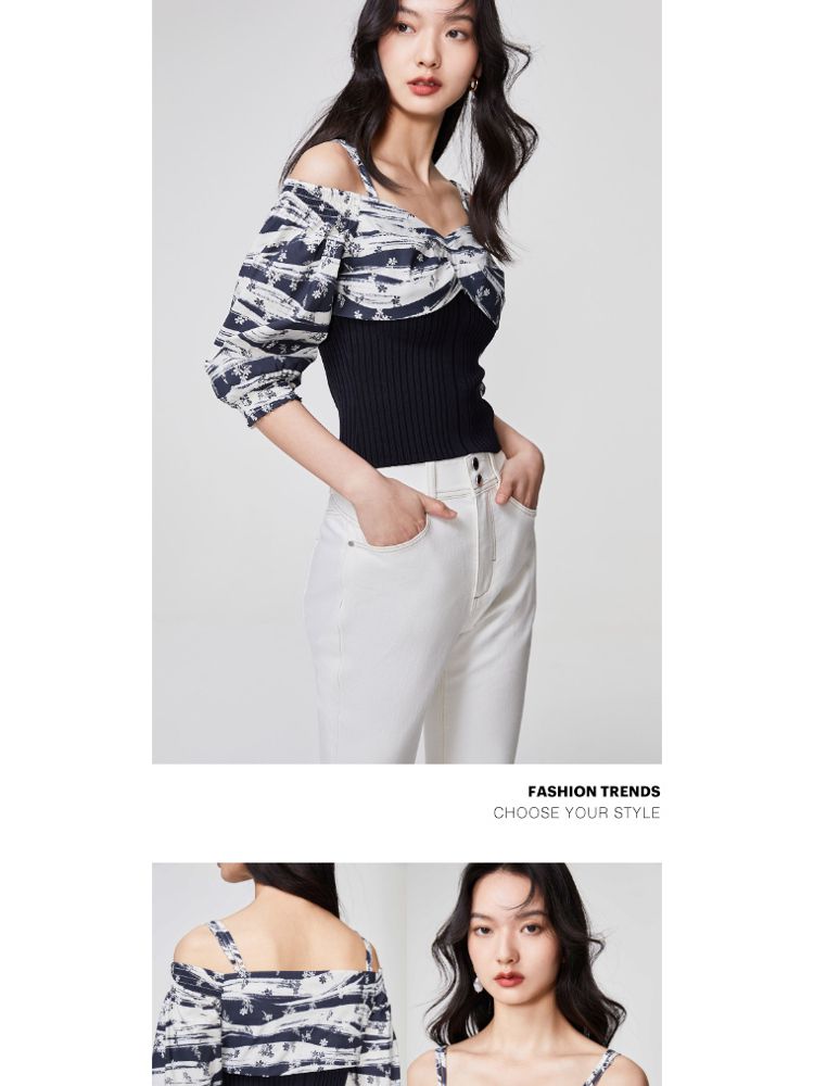商品名称:【福利款】夏季甜美可调节肩带露肩雪纺衫女 349402