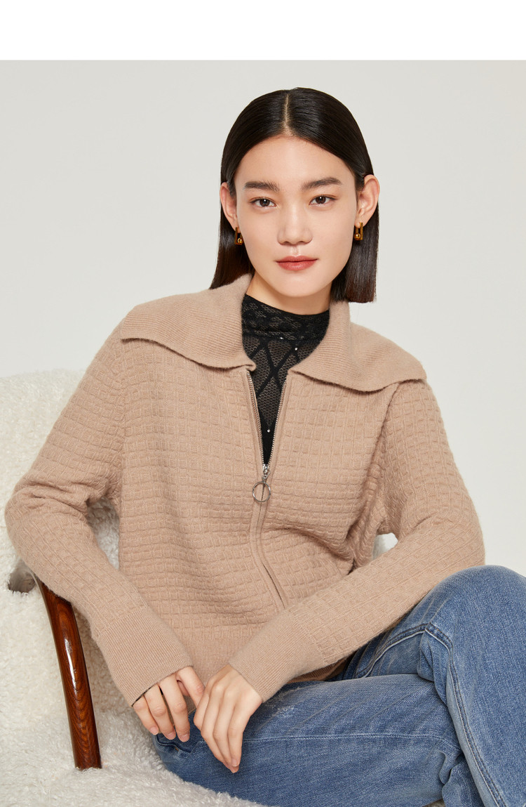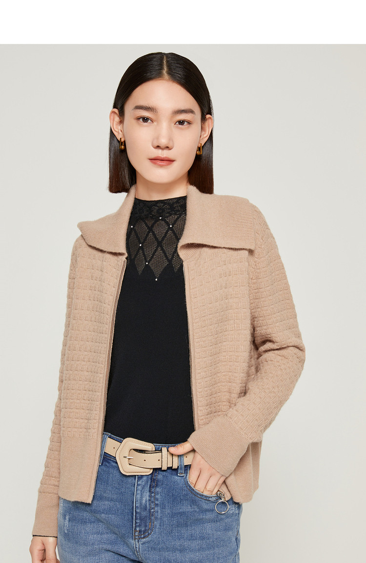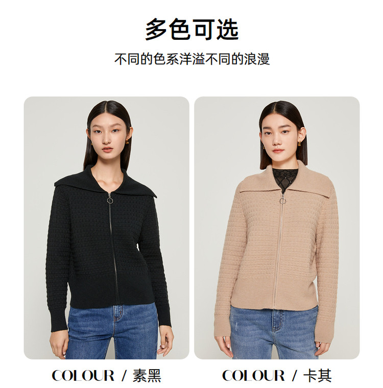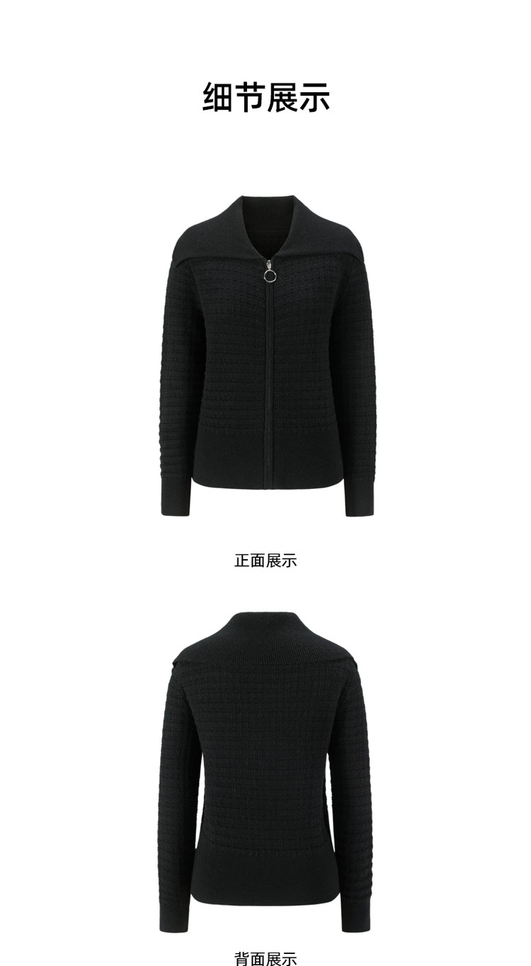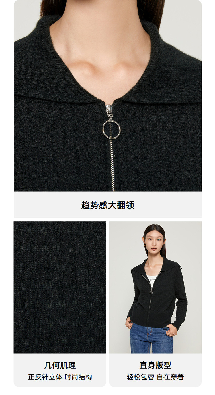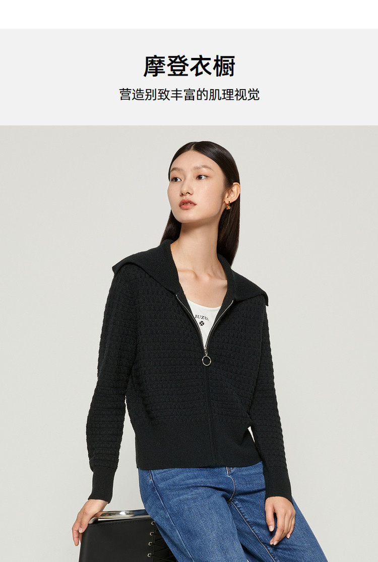 商品名称:JZ玖姿时尚女装秋季立体肌理感翻领针织休闲外套 906124