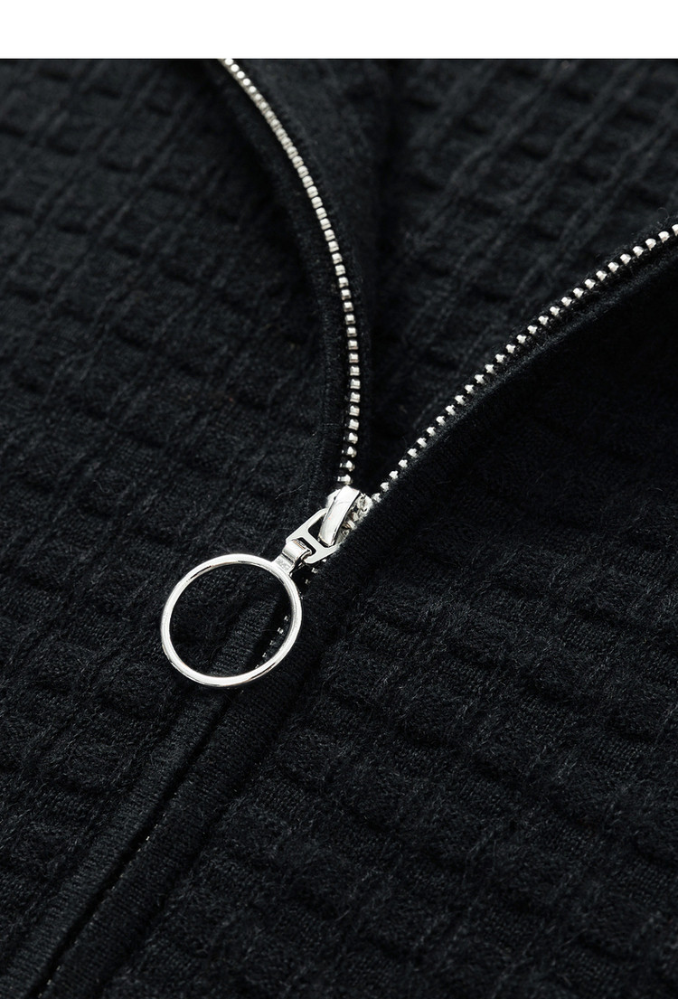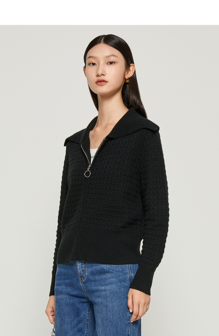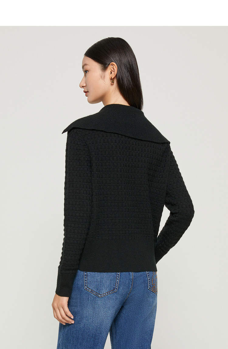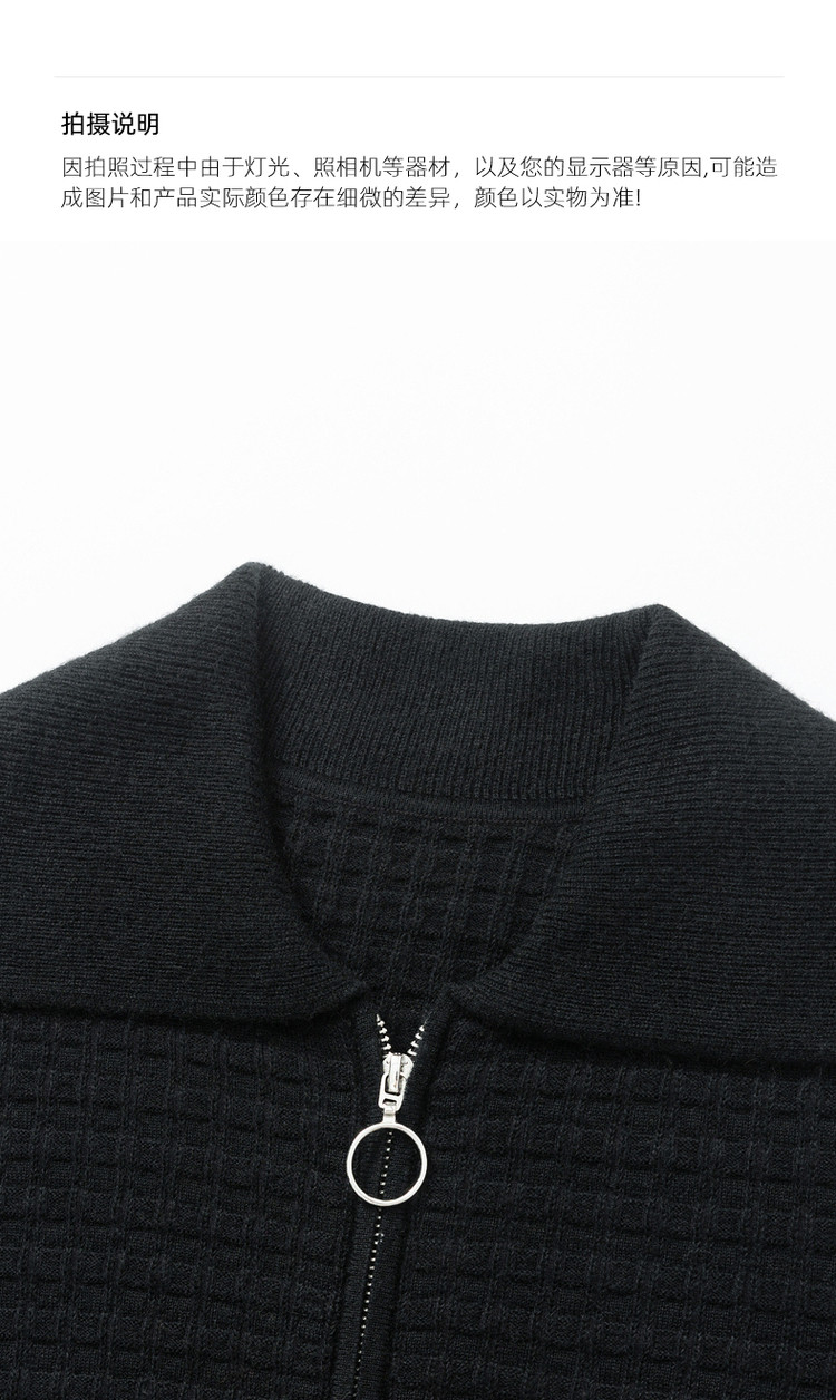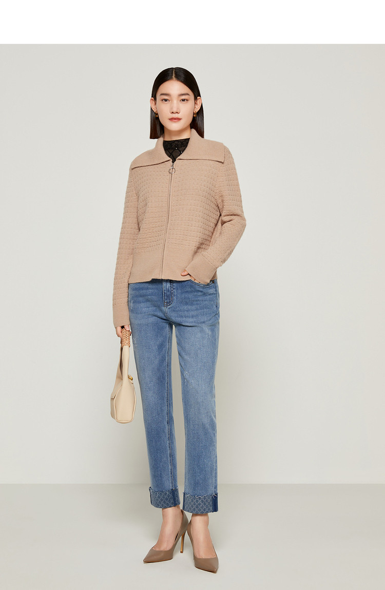 商品名称:JZ玖姿时尚女装秋季立体肌理感翻领针织休闲外套 906124