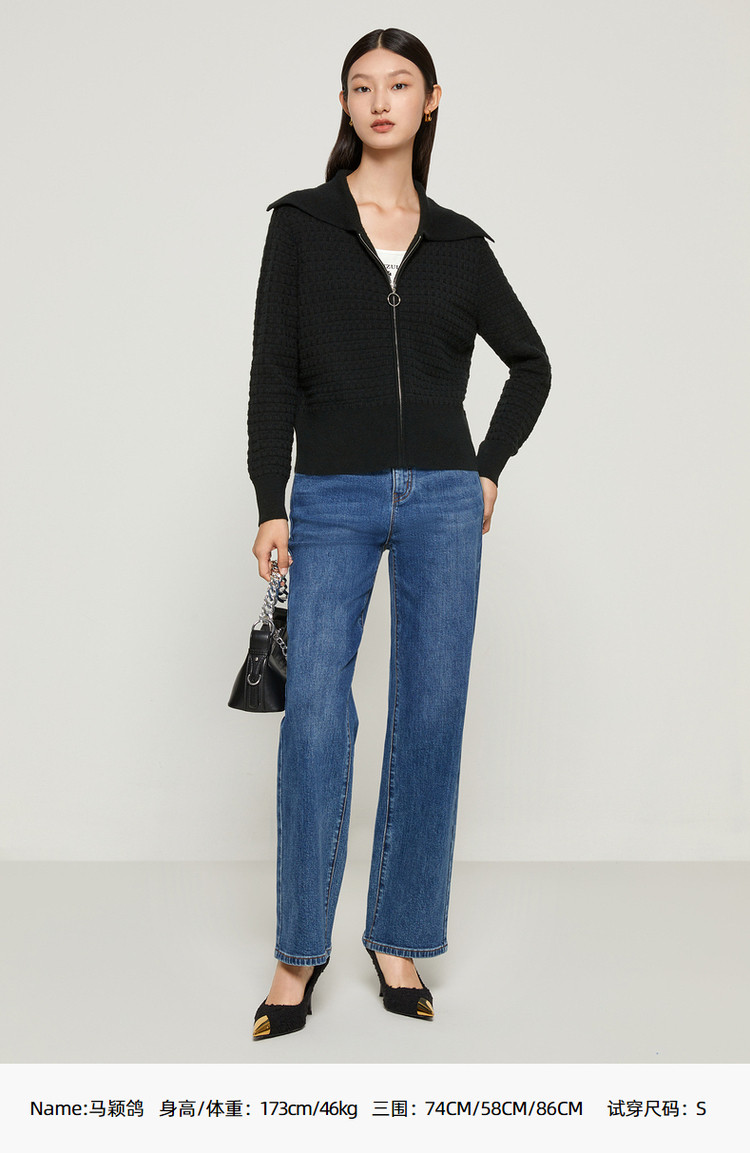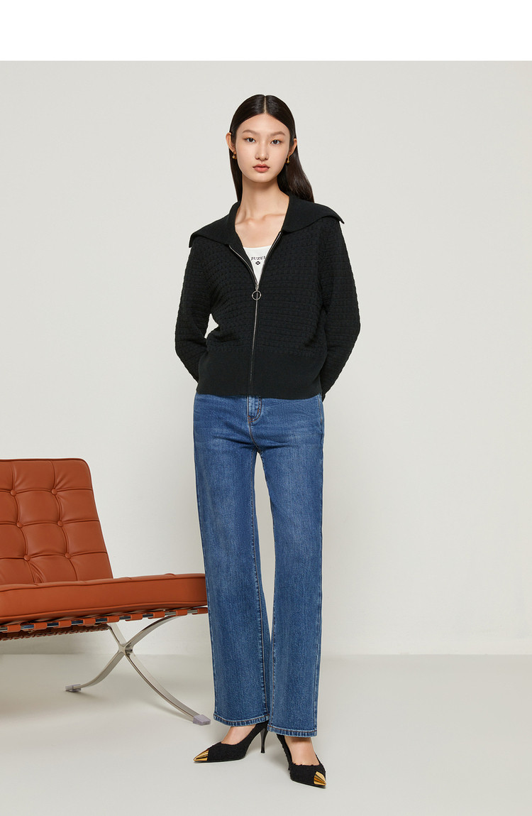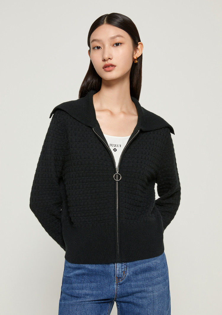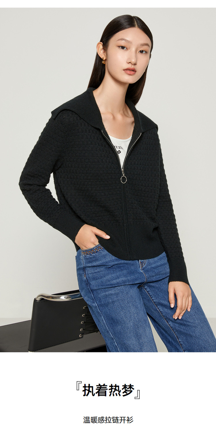 JZ玖姿时尚女装秋季立体肌理感翻领针织休闲外套 906124