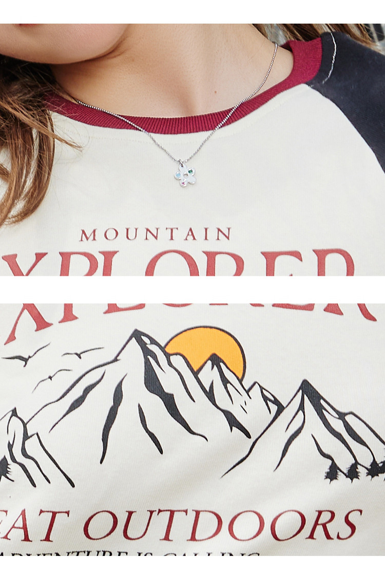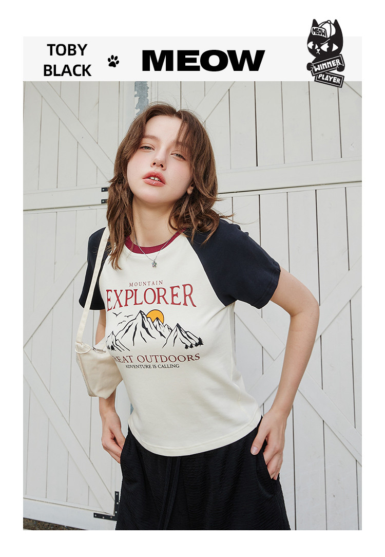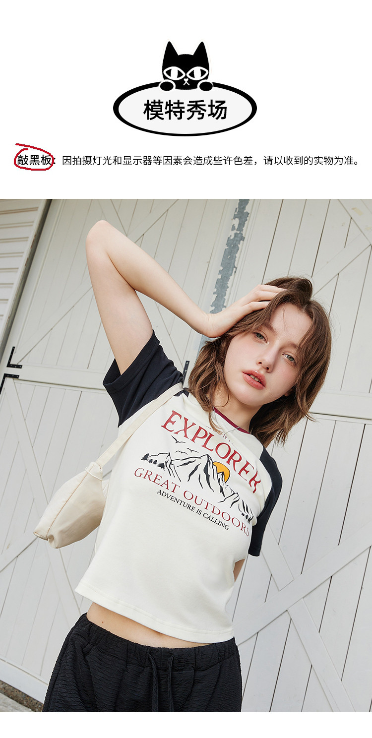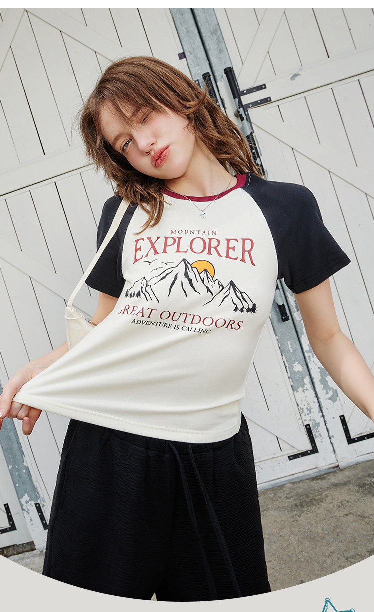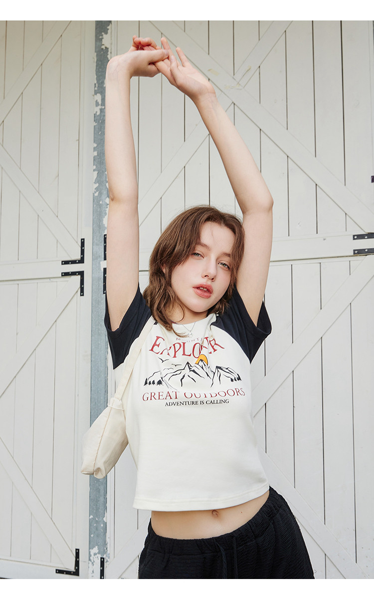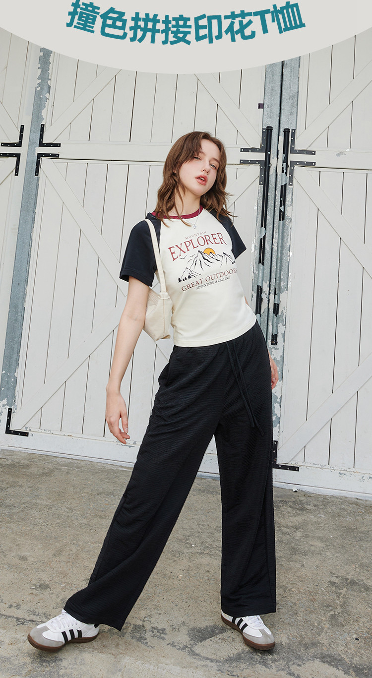 夏季休闲短款印花设计短袖上衣撞色百搭女式T恤 476189