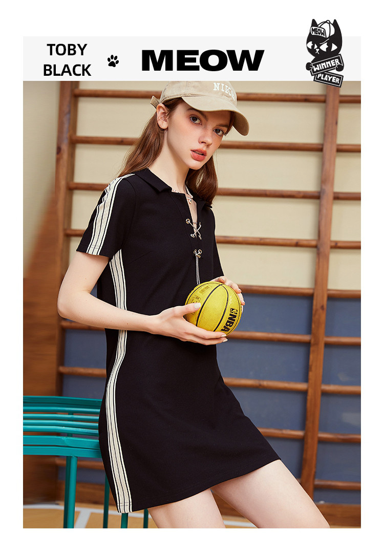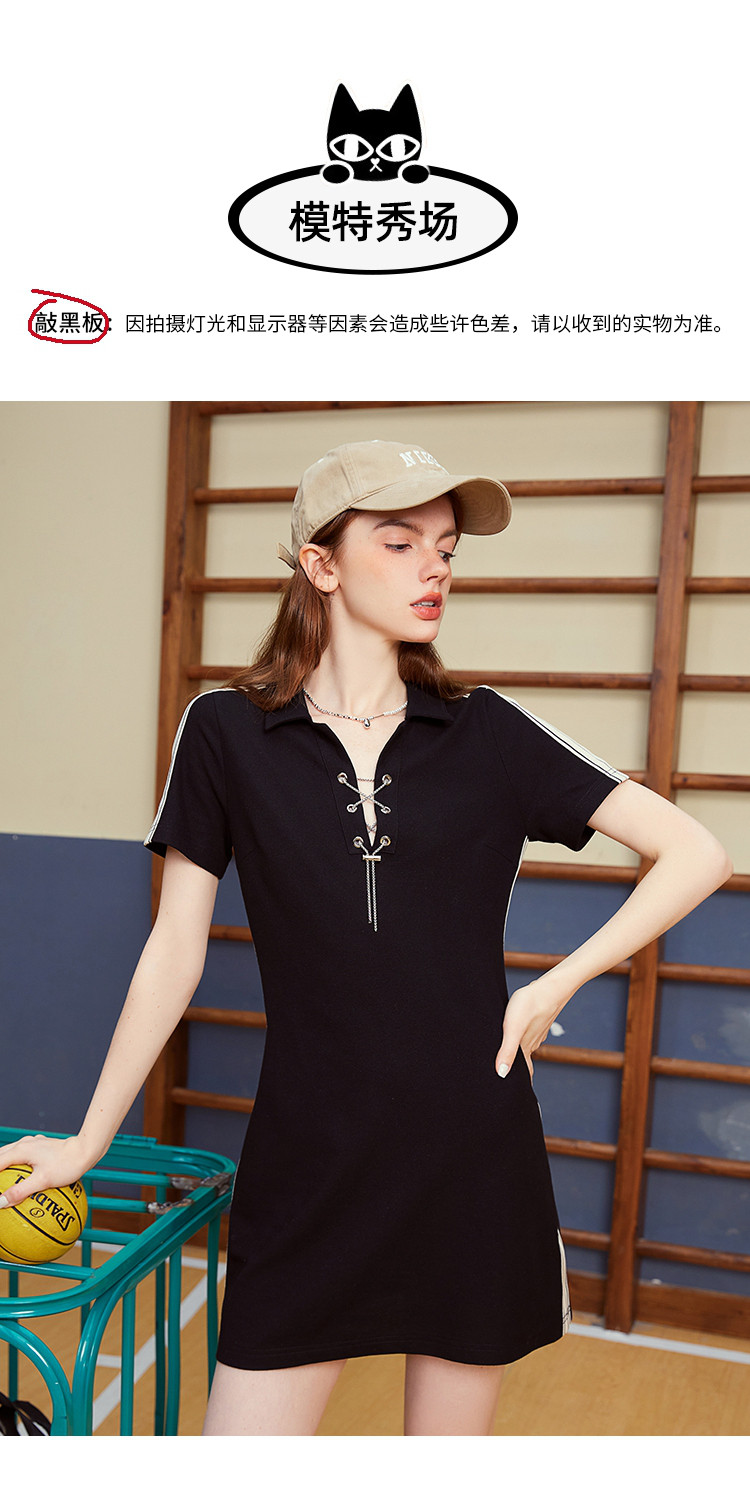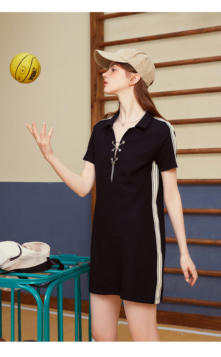 商品名称:夏季个性抽绳条纹设计a字裙休闲百搭气质连衣裙 822045