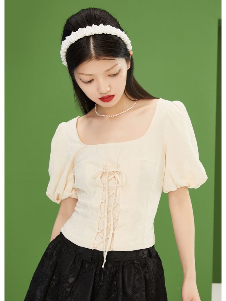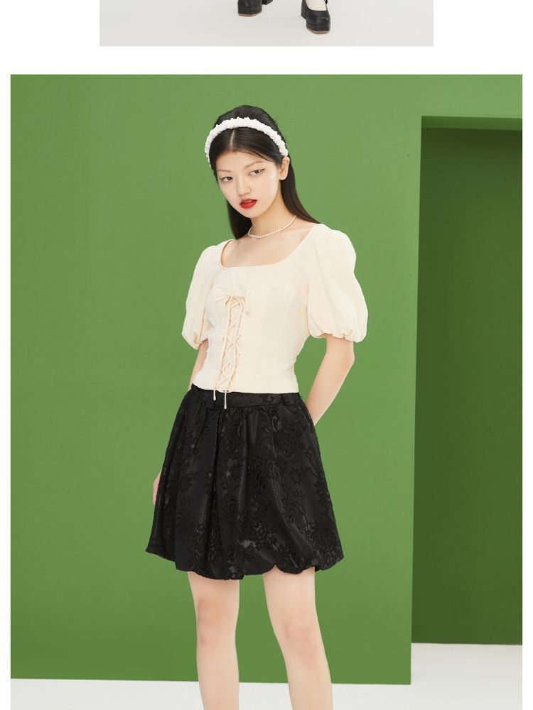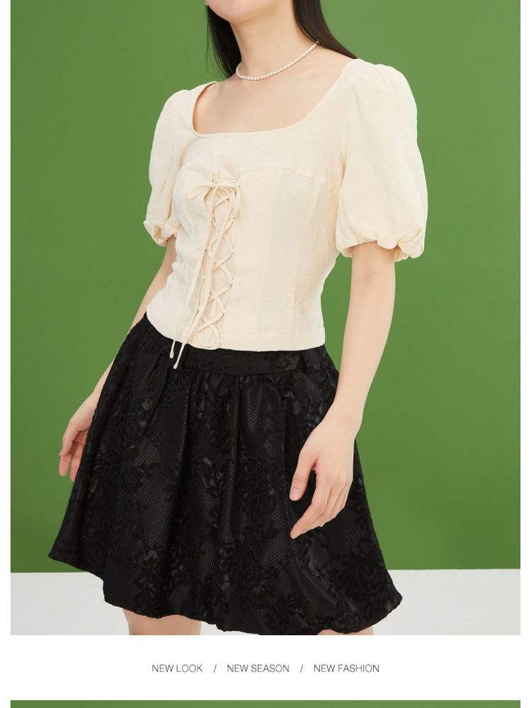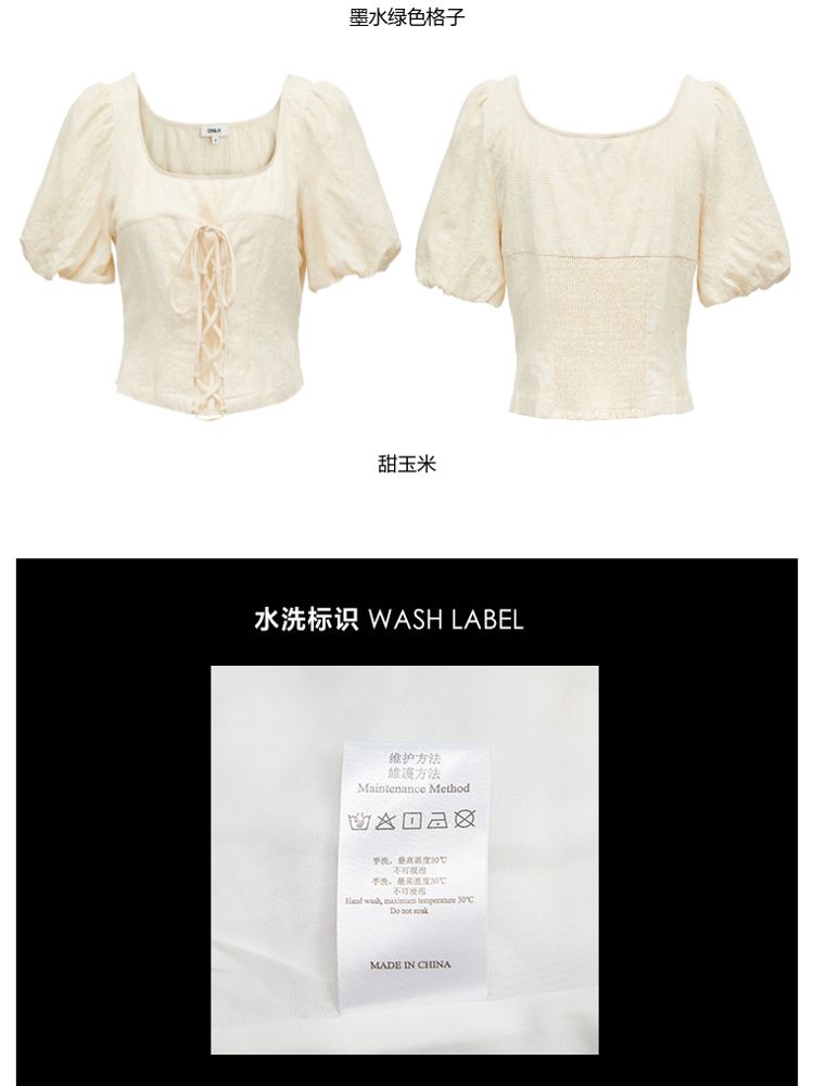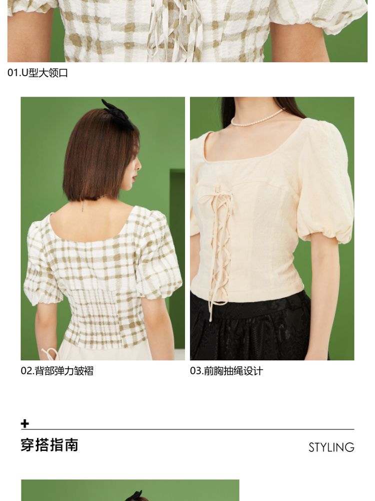 商品名称:【福利款】夏季方领抽绳优雅泡泡袖雪纺衫女 925402