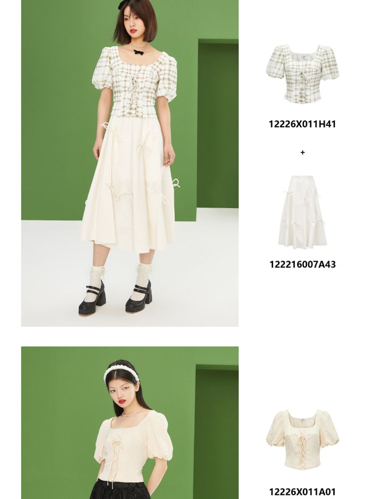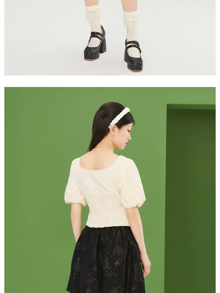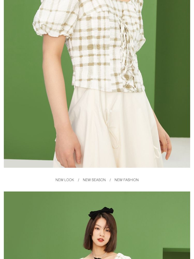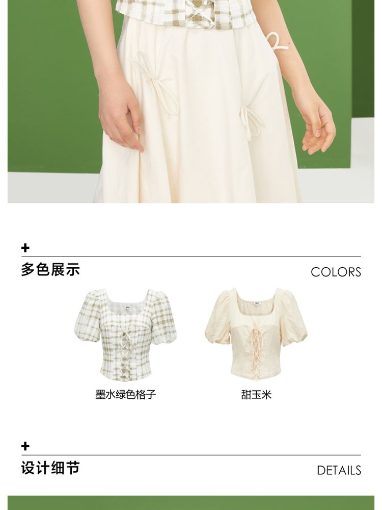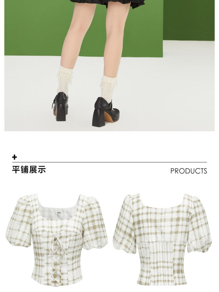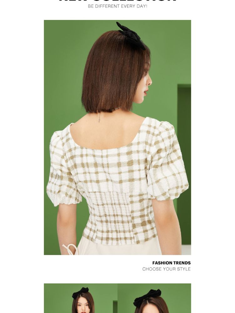 商品名称:【福利款】夏季方领抽绳优雅泡泡袖雪纺衫女 925402