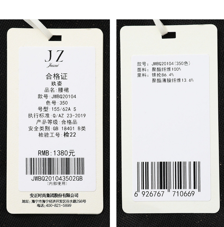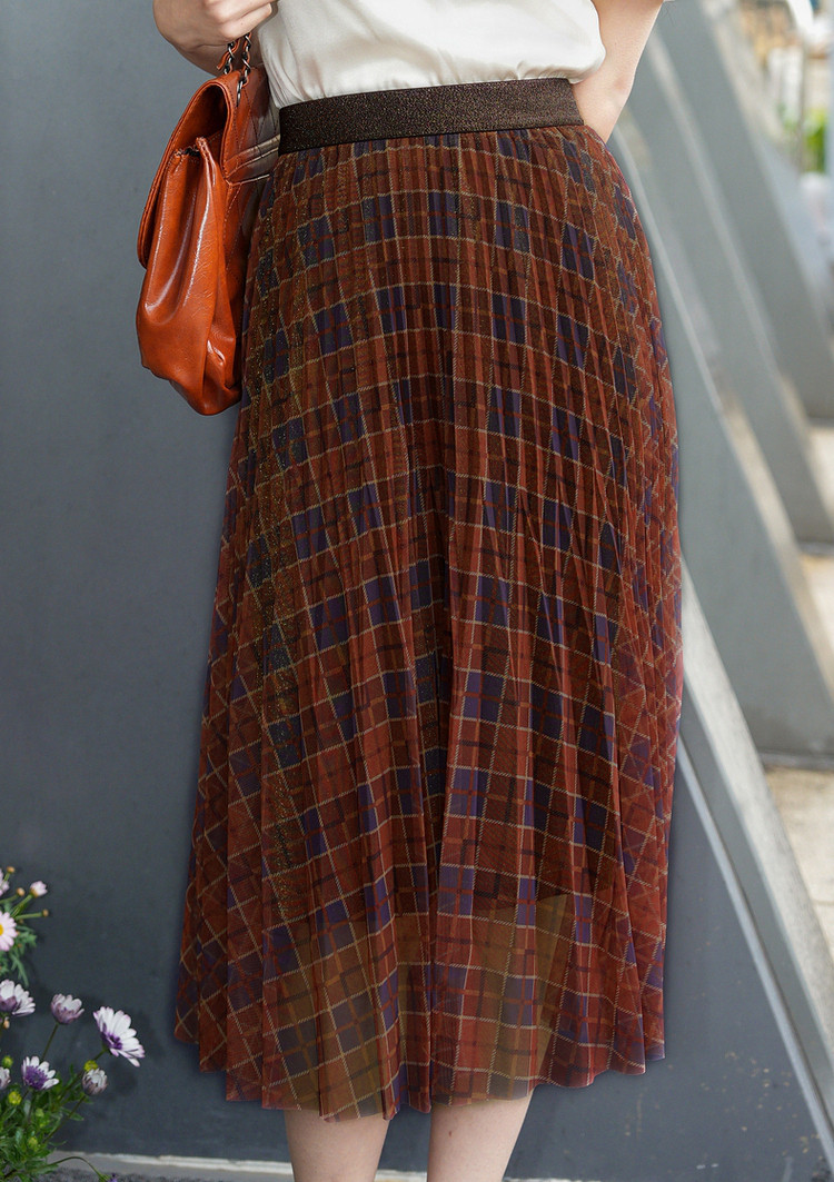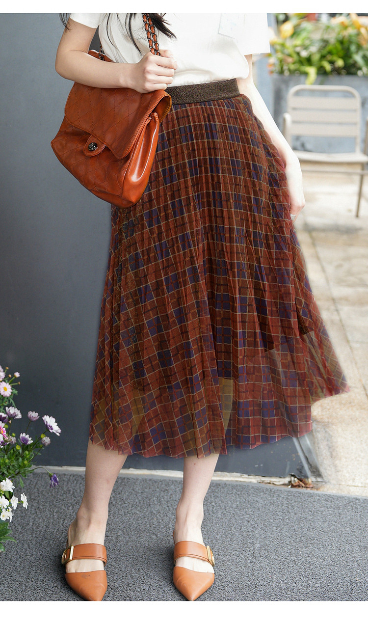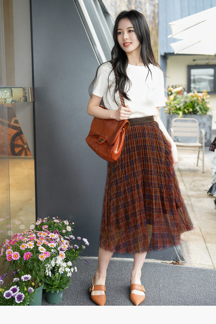 商品名称:商场同款JZ玖姿A字网纱裙女装秋季格纹半身裙 129612