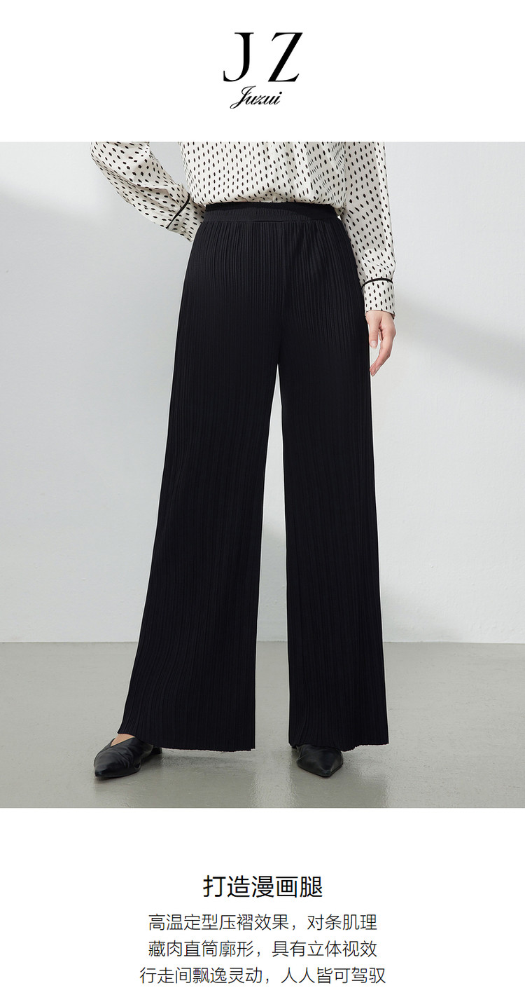 商品名称:JZ玖姿三宅风肌理褶皱阔腿裤女装春季设计感直筒休闲裤 139340
