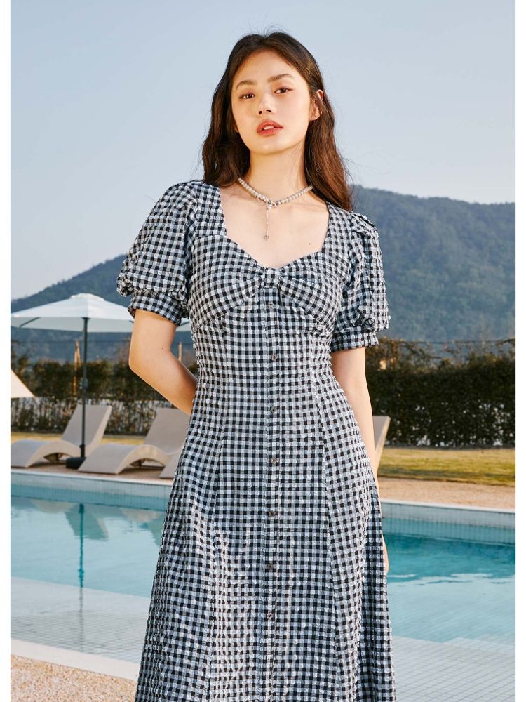 【福利款】夏季法式度假收腰中长款气质显瘦连衣裙女 840410