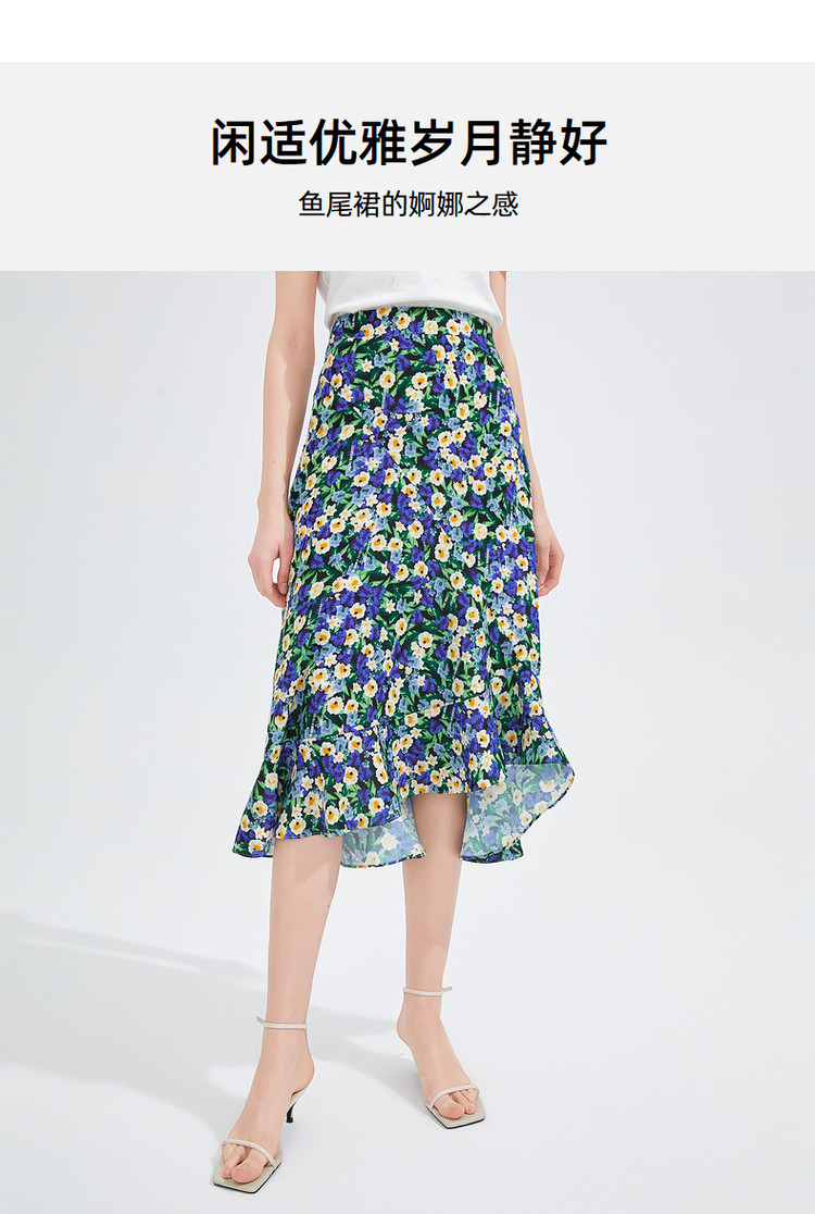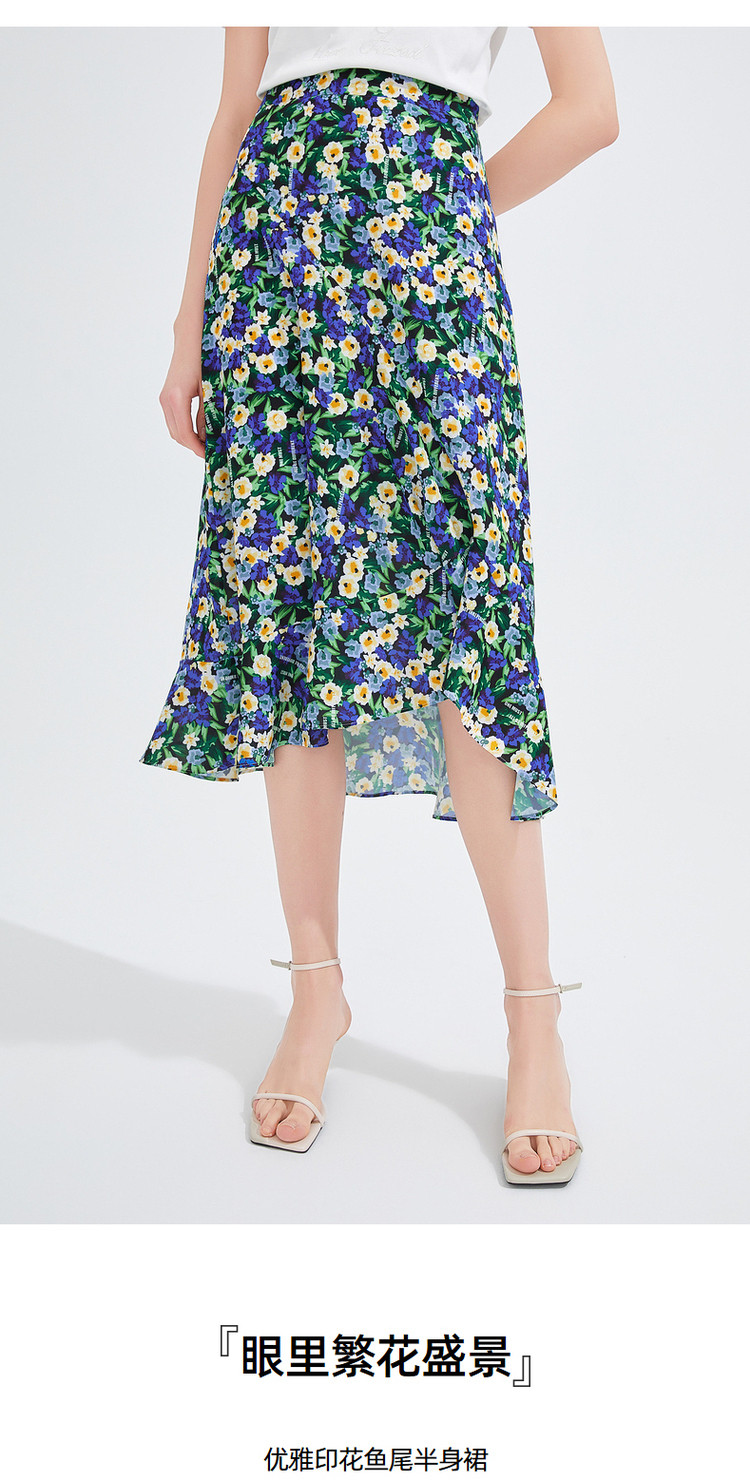 商品名称:玖姿夏季时尚优雅碎花鱼尾半截裙 701772