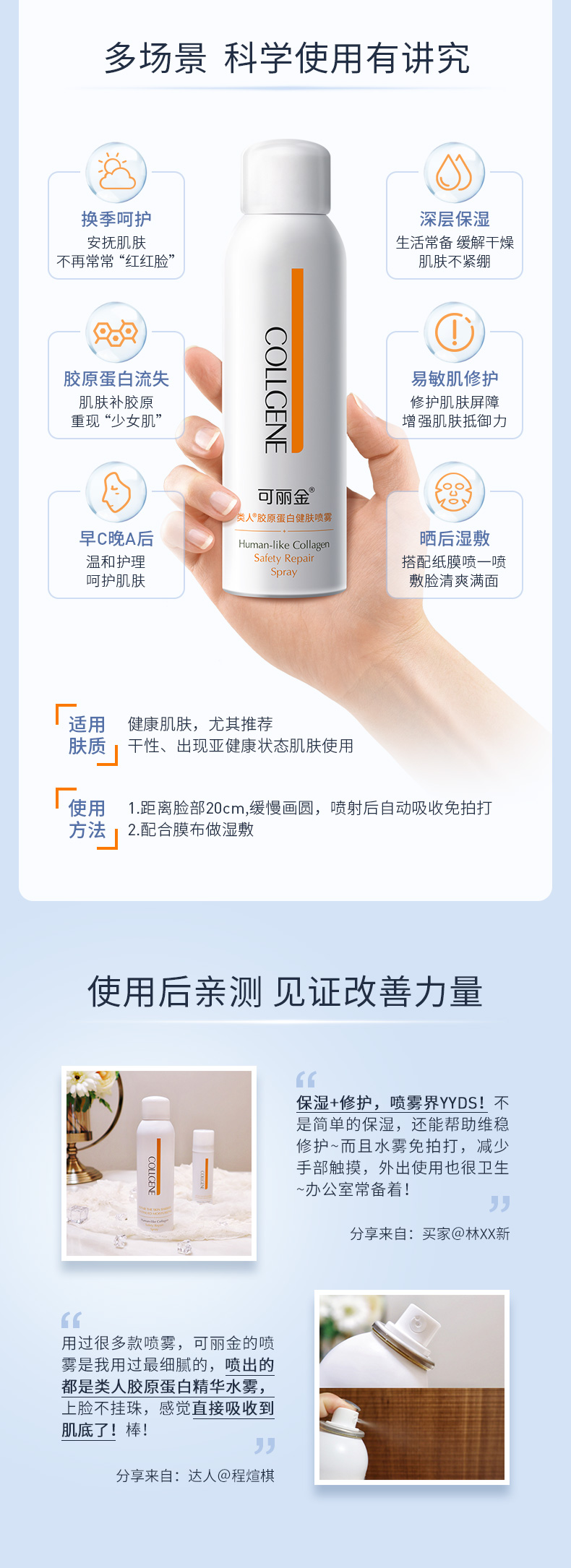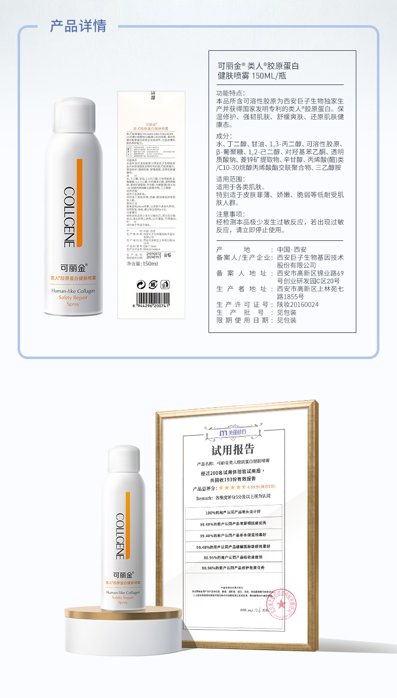 商品名称:可丽金 类人胶原蛋白健肤喷雾 150ml 爽肤水大喷