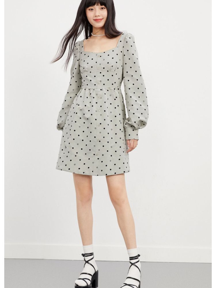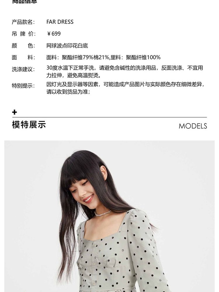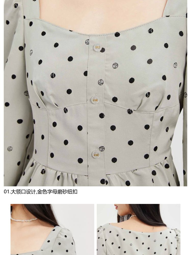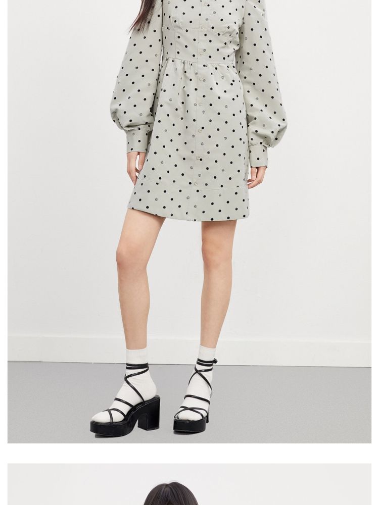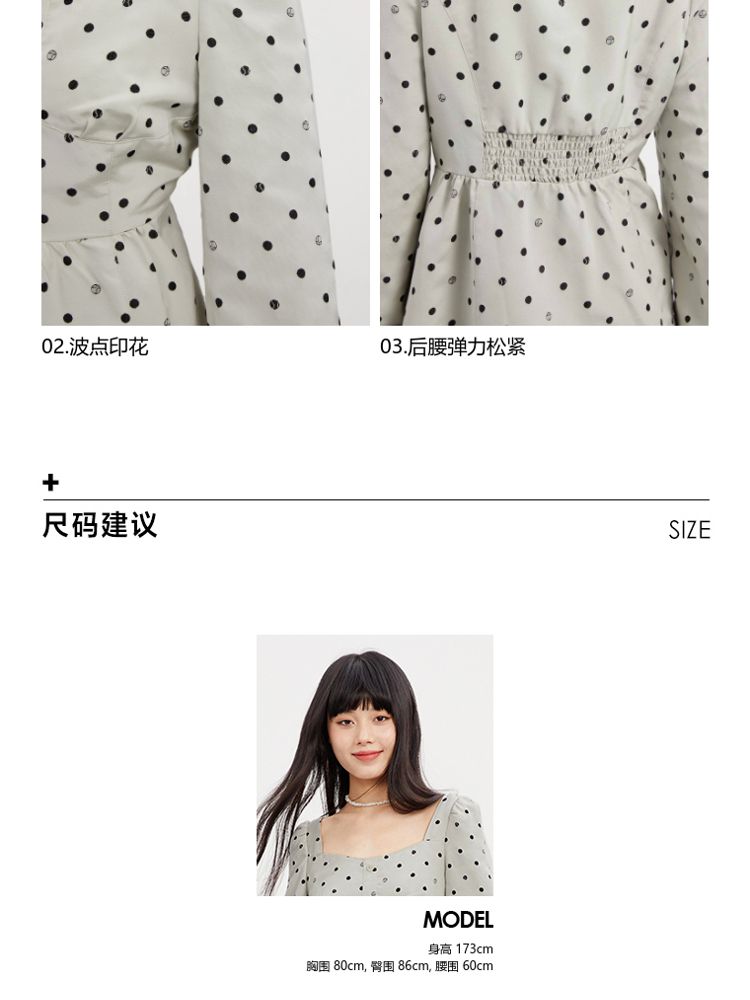 商品名称:【福利款】夏季波点高腰长袖短款连衣裙女 837850