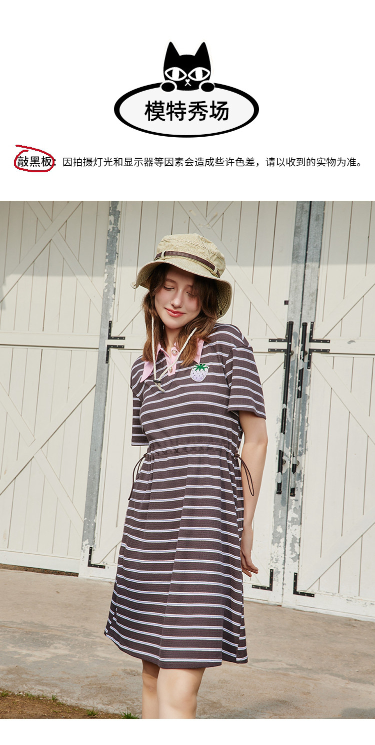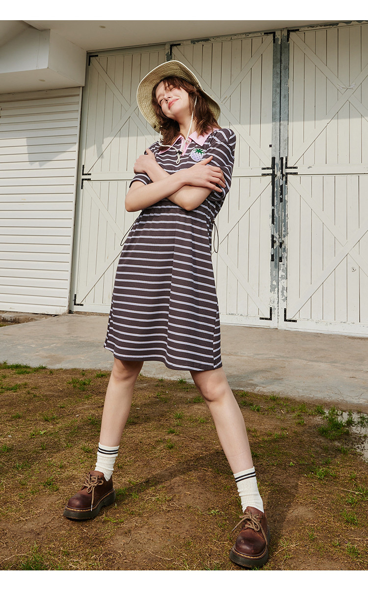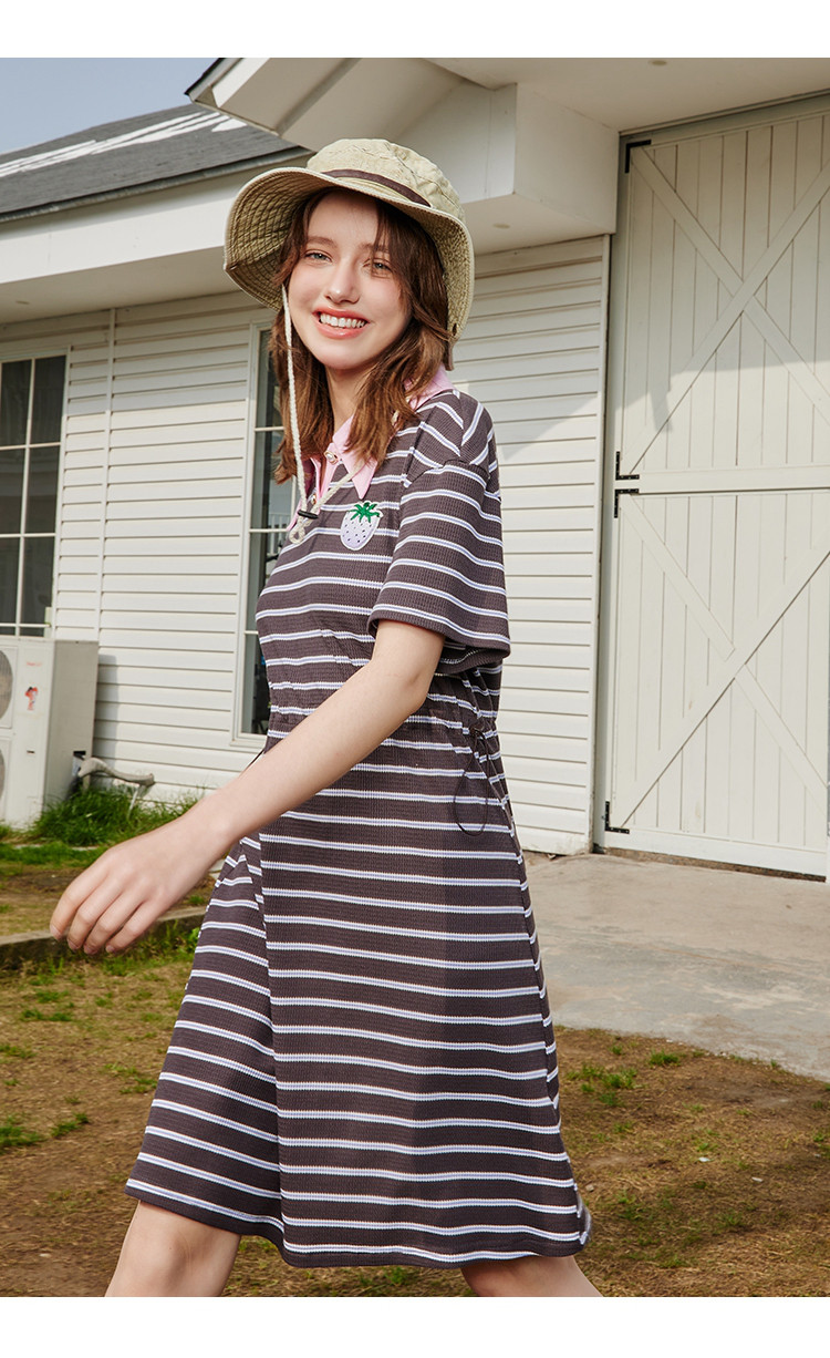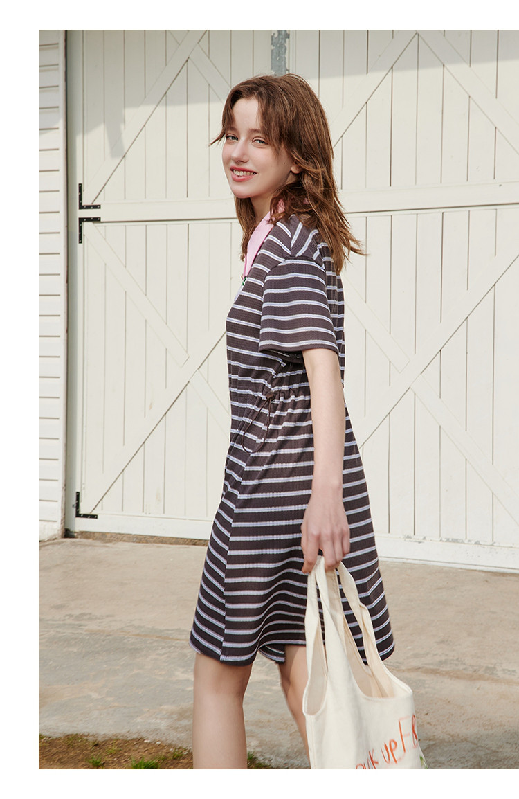 商品名称:夏季复古条纹设计收腰休闲撞色Polo领连衣裙 825309