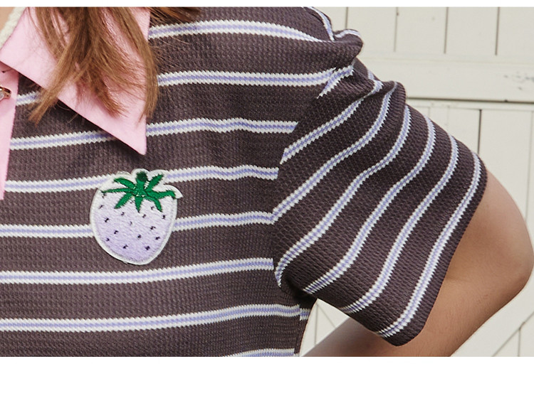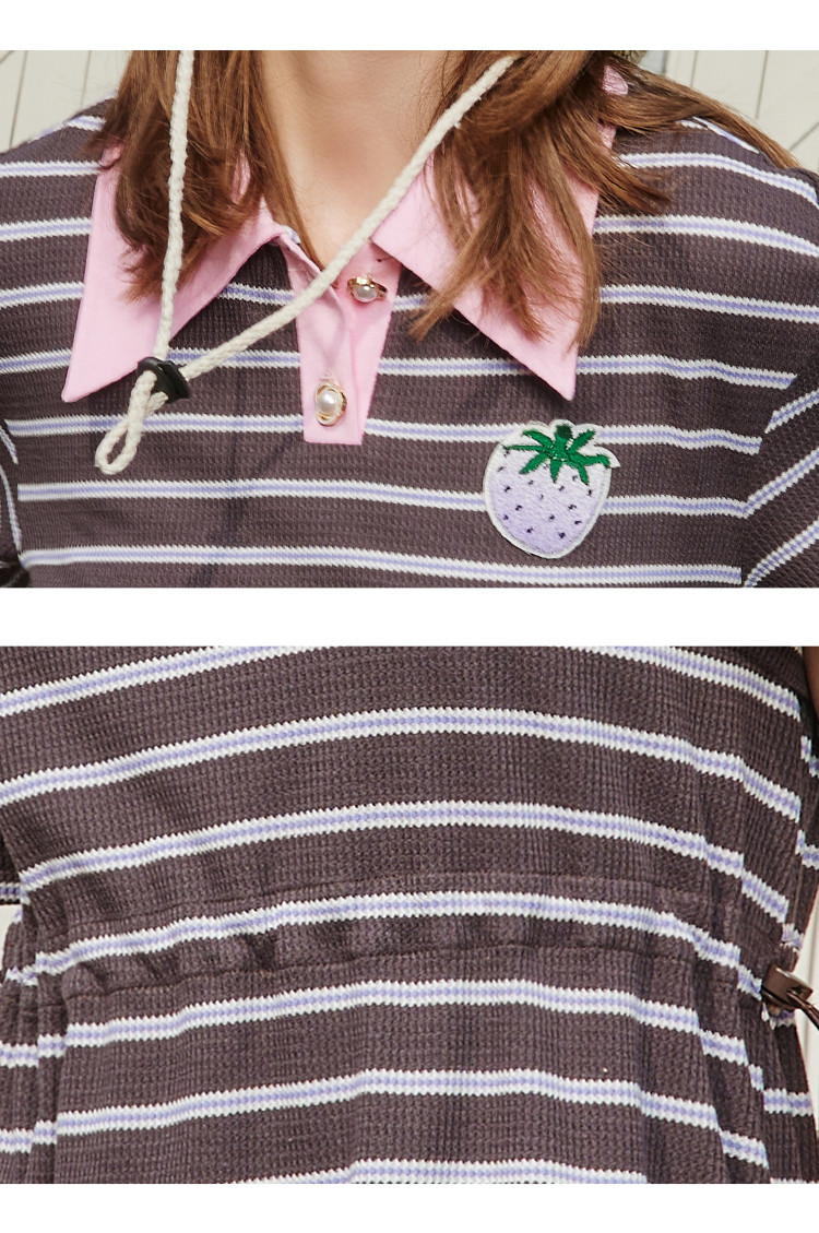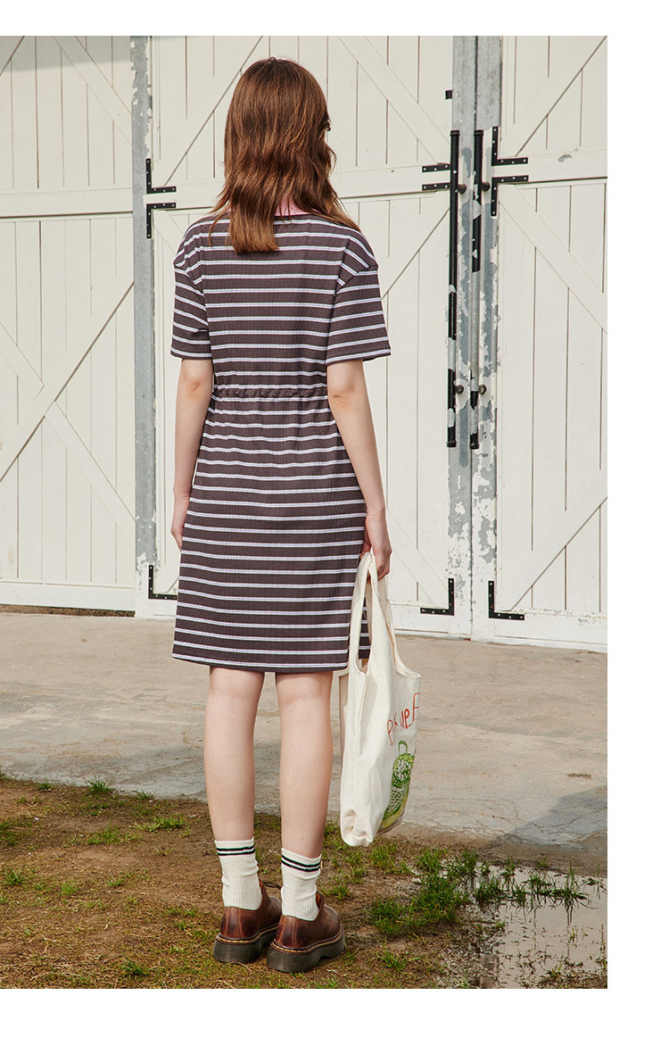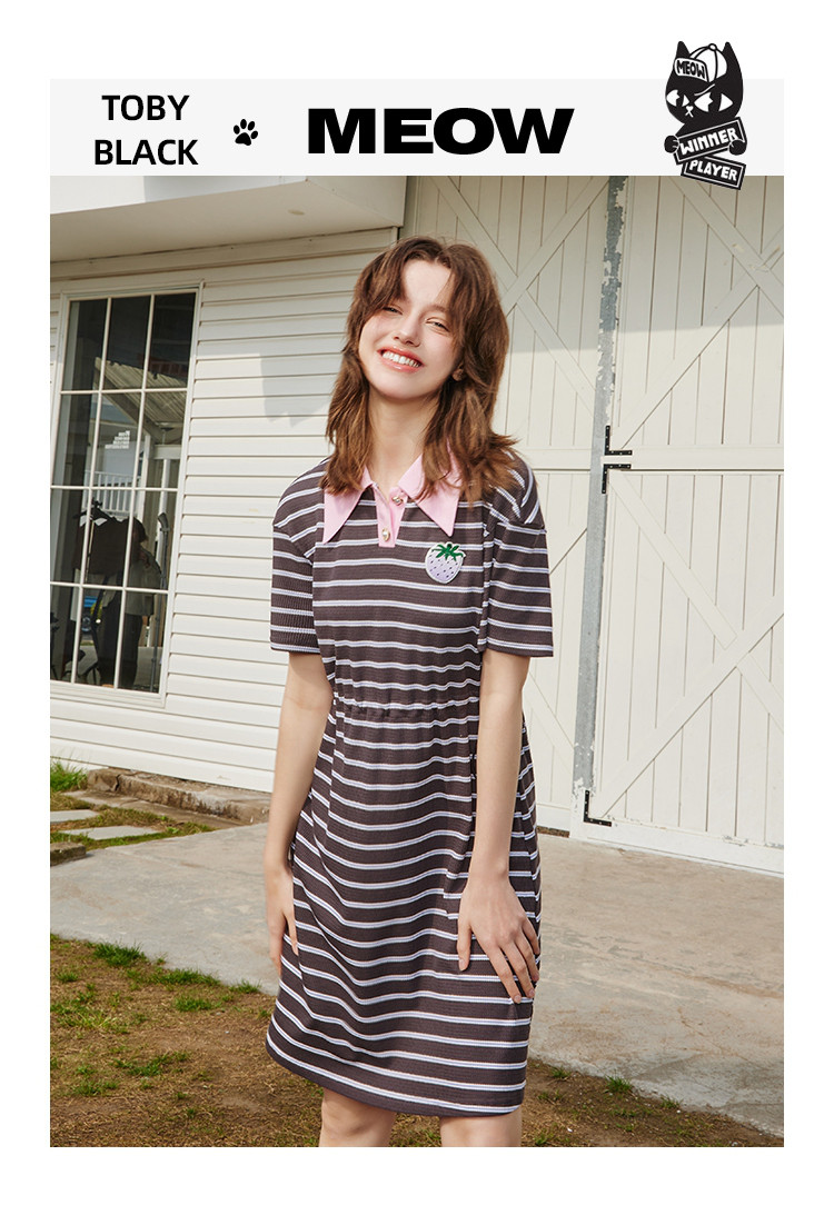 商品名称:夏季复古条纹设计收腰休闲撞色Polo领连衣裙 825309