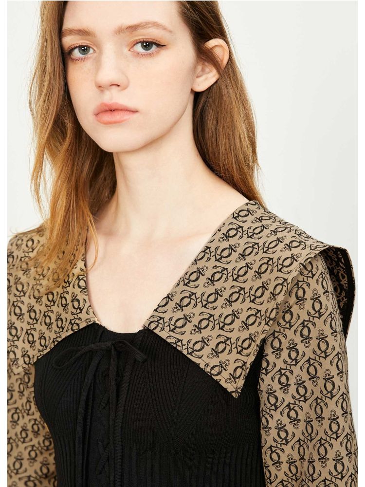 【撞色拼接】夏季文艺风V字翻领短款衬衫女 778970