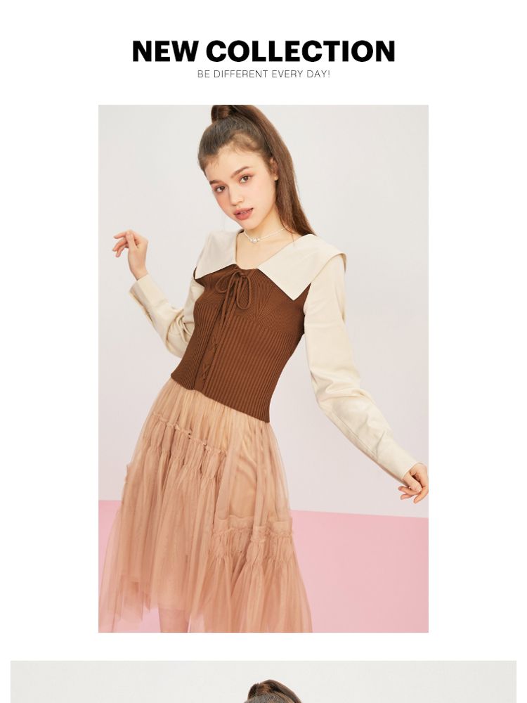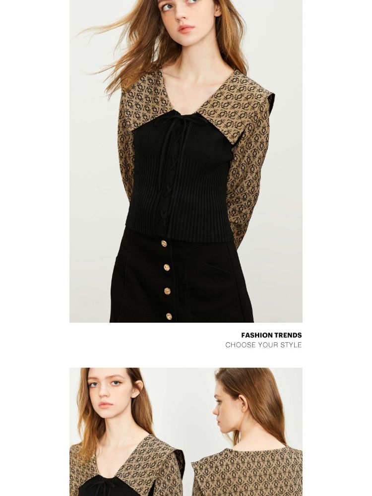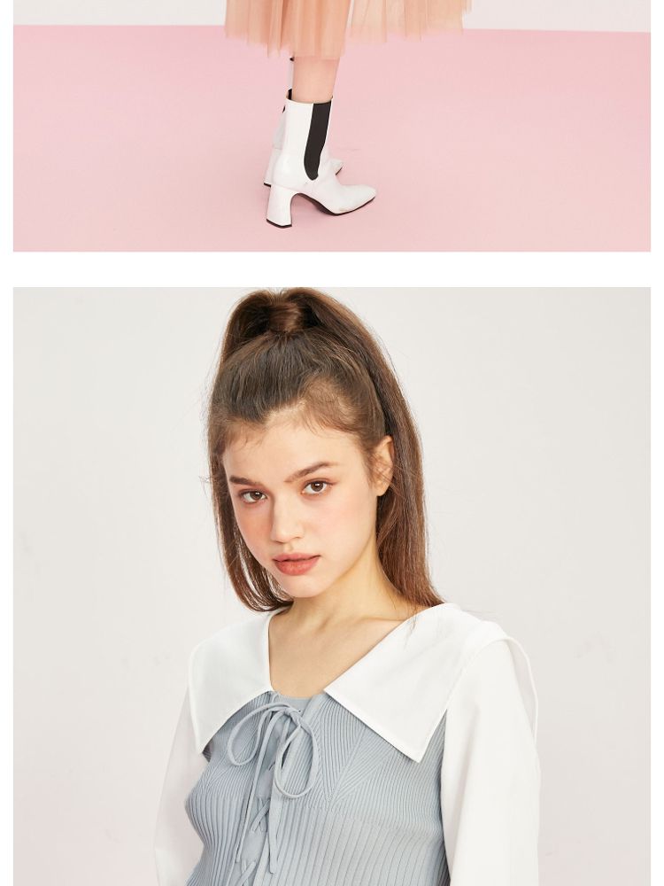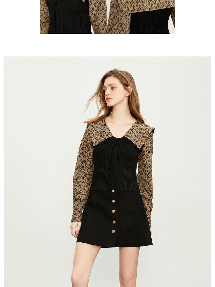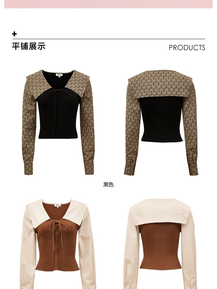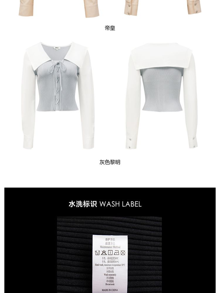 商品名称:【撞色拼接】夏季文艺风V字翻领短款衬衫女 778970