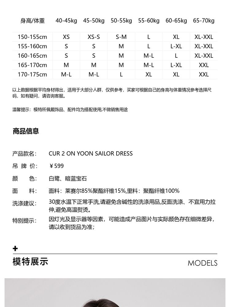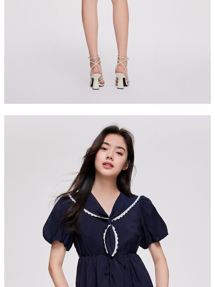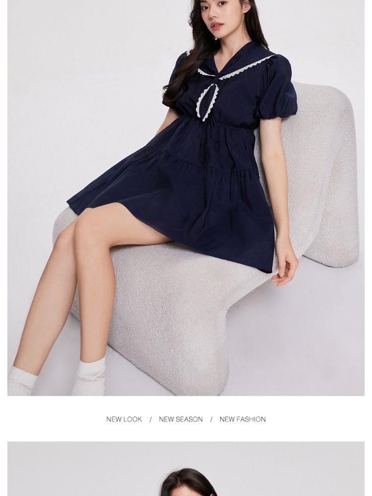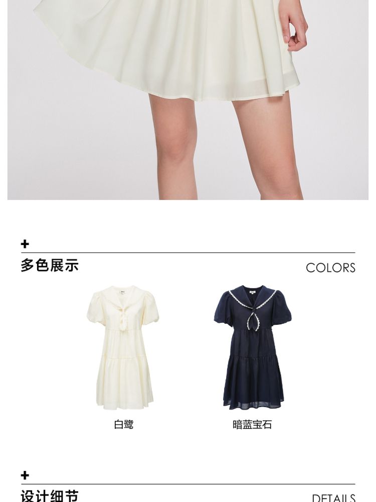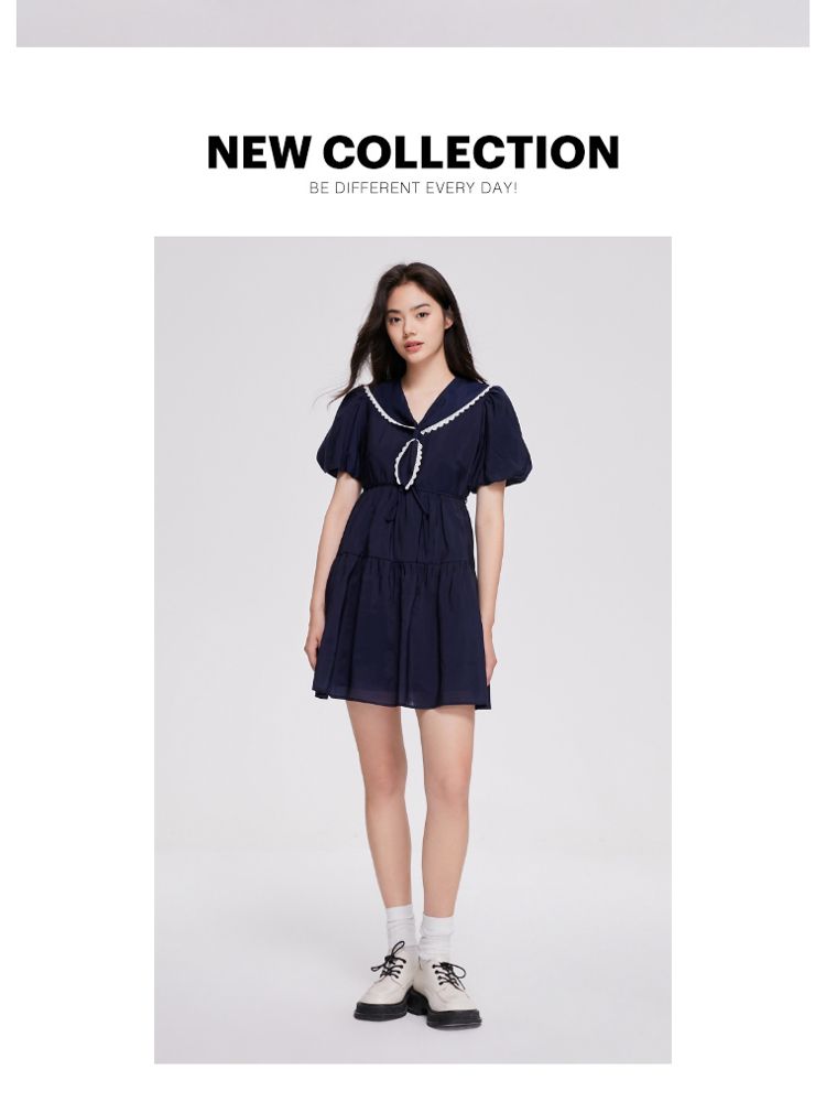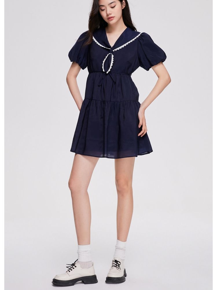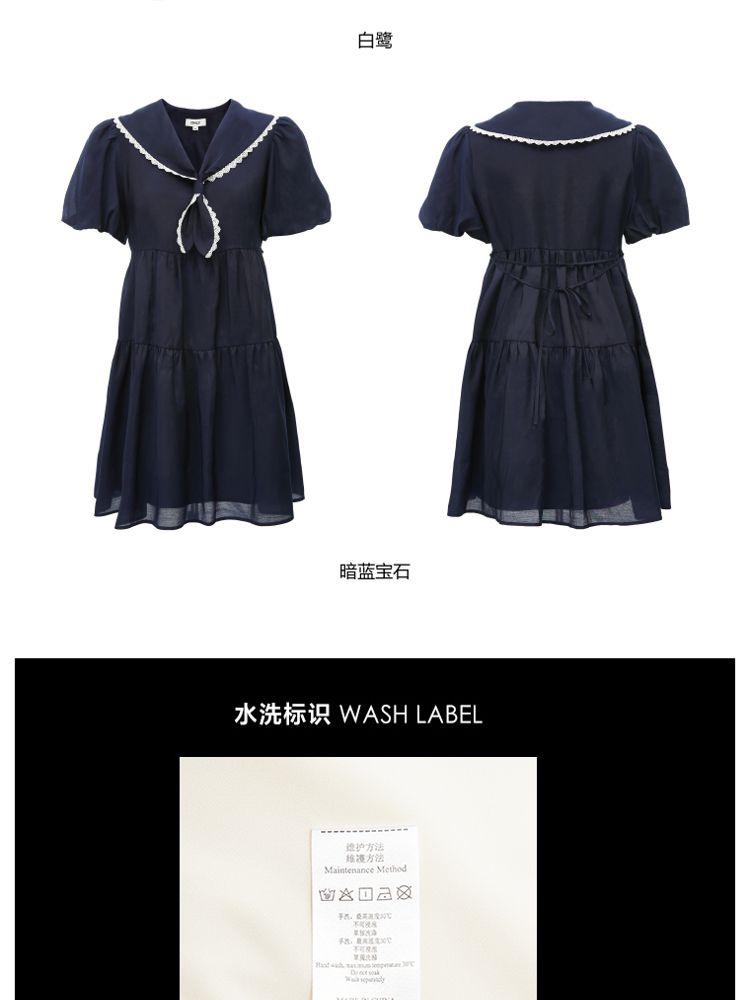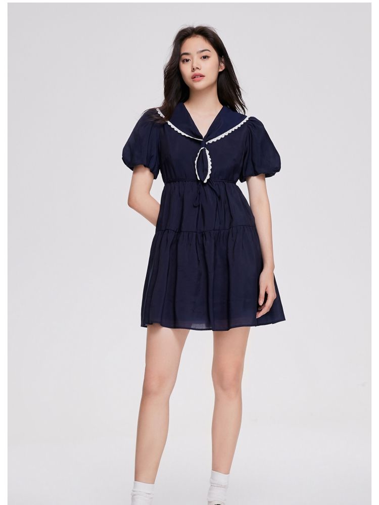 【海军领】夏季开叉花苞袖收腰短款连衣裙女 008154