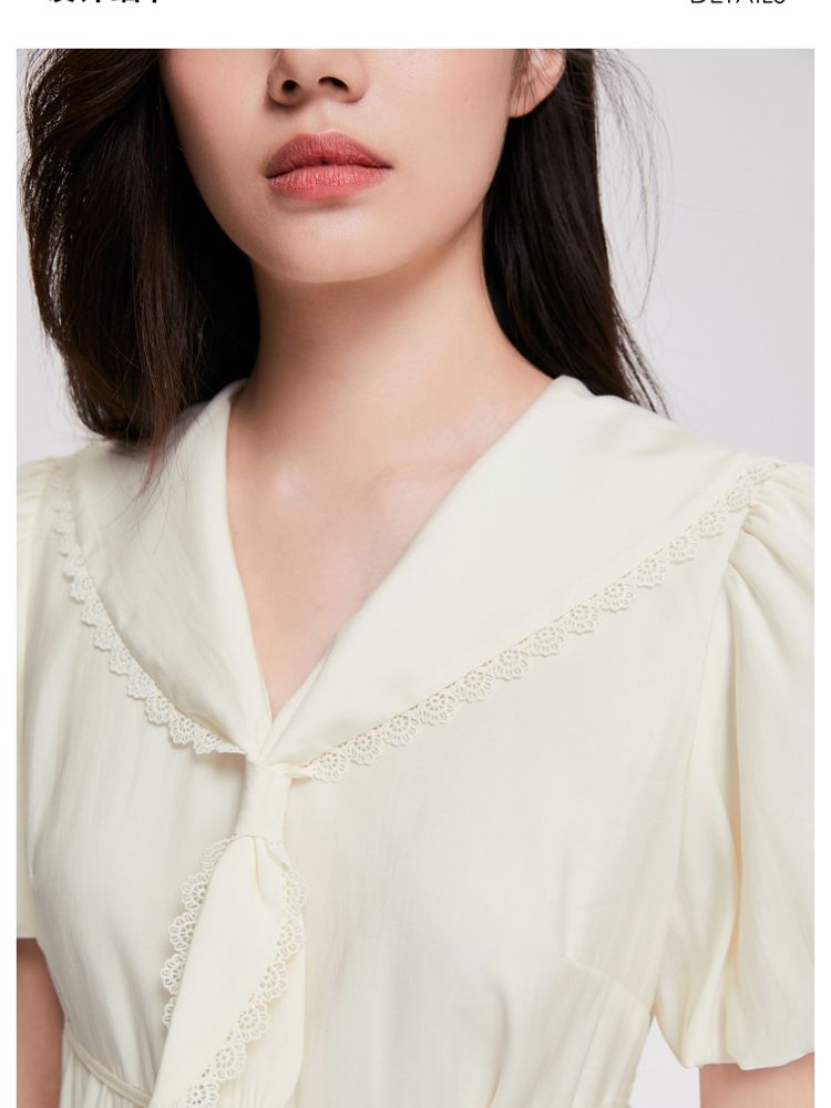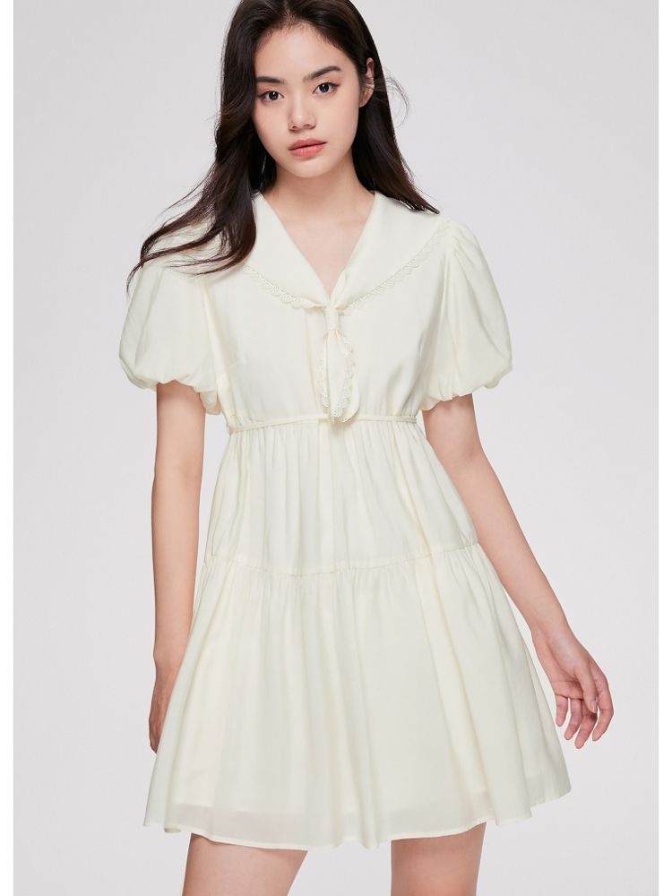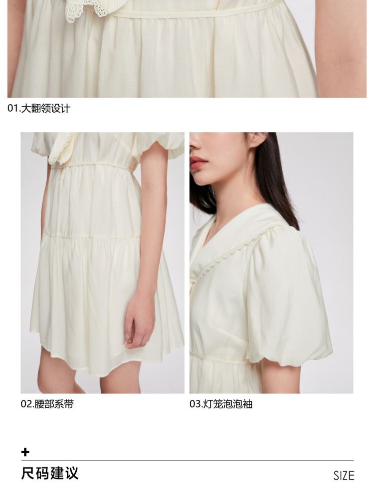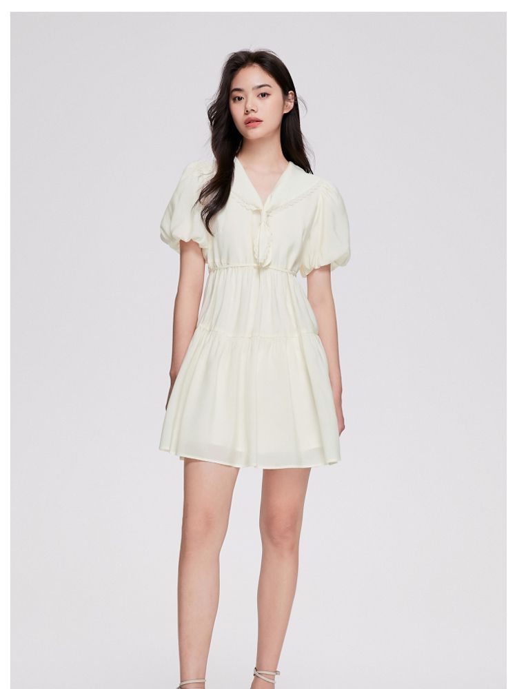 商品名称:【甜美翻领】夏季泡泡袖收腰短款连衣裙女 408858