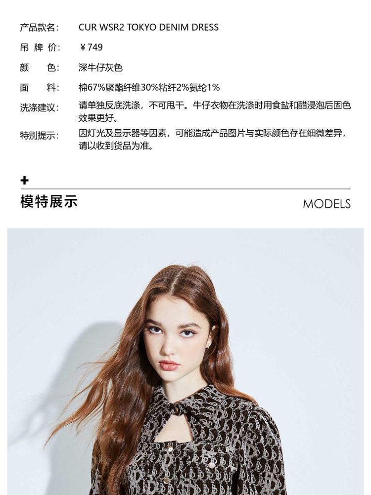 商品名称:【福利秒杀款】冬季A字高腰泡泡袖短牛仔连衣裙女 804250