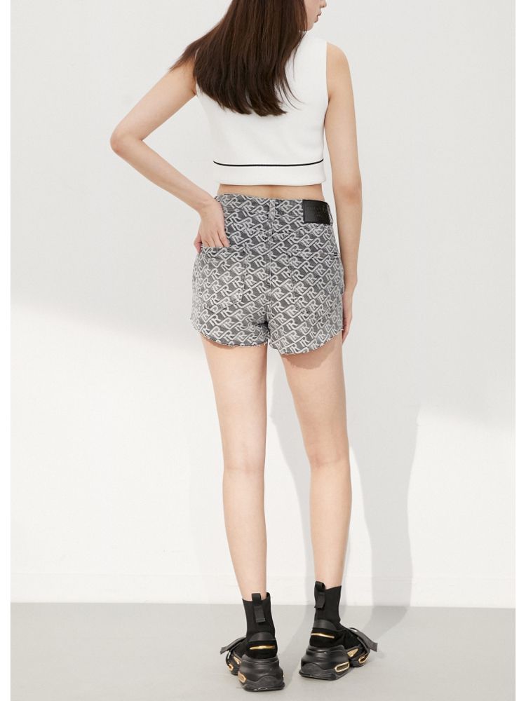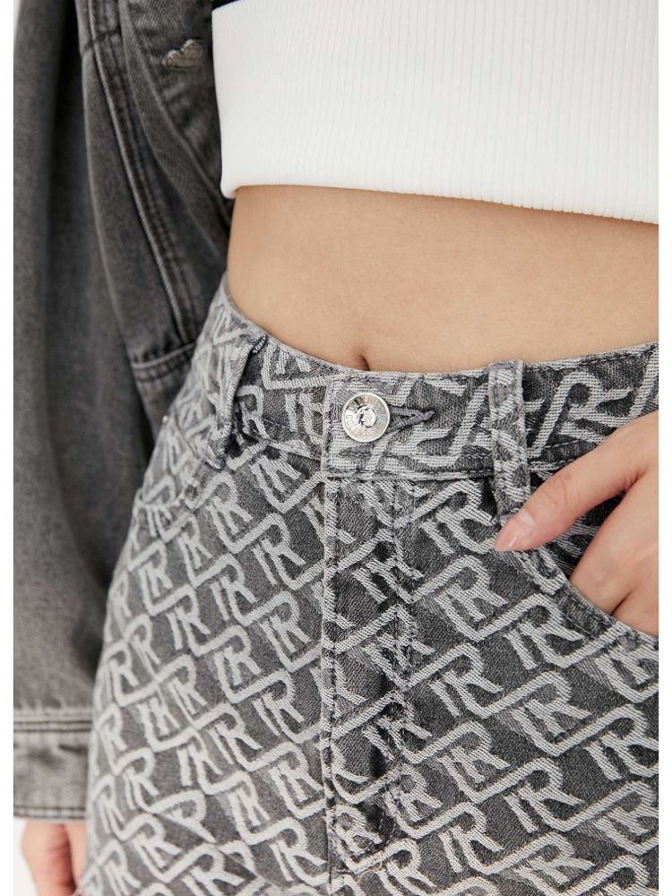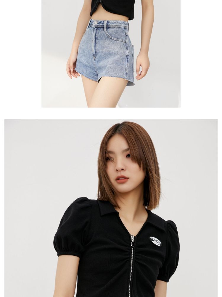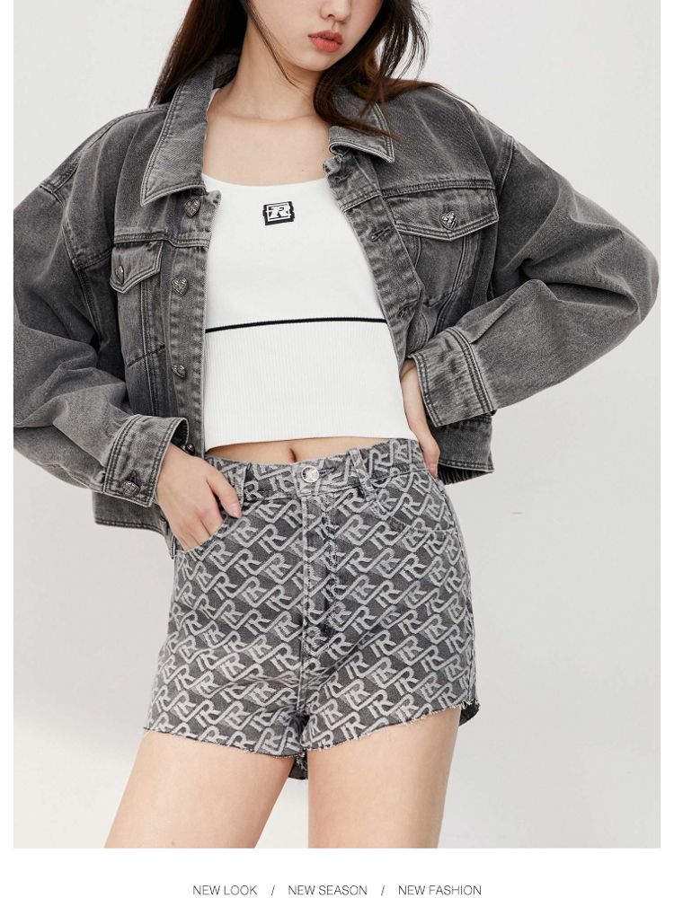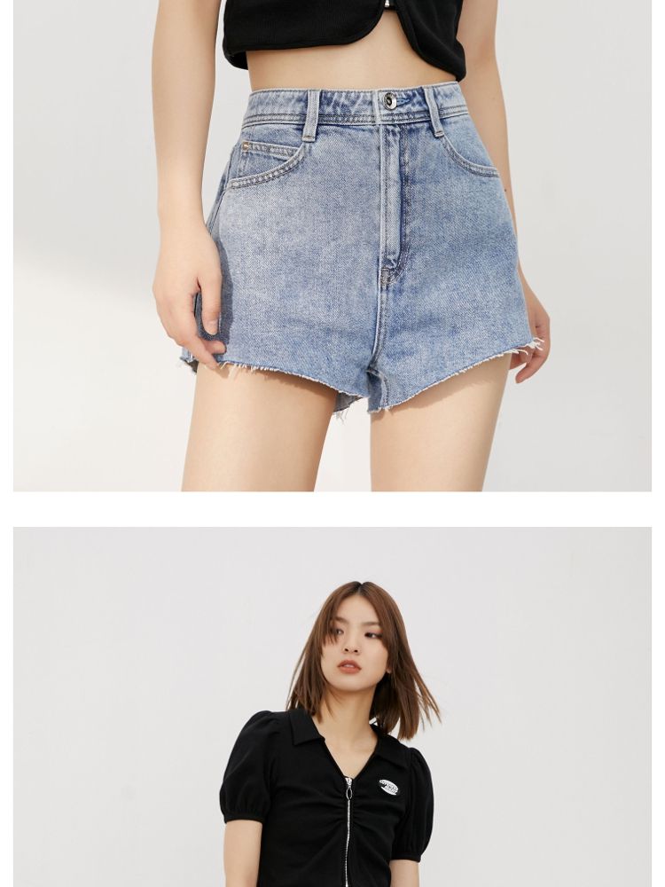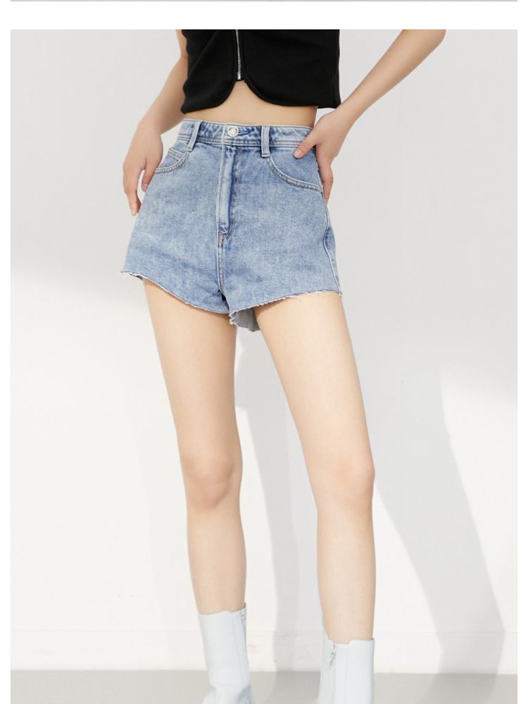 【棋盘格设计】夏季高腰A字直筒短裤薄款牛仔裤女 723098