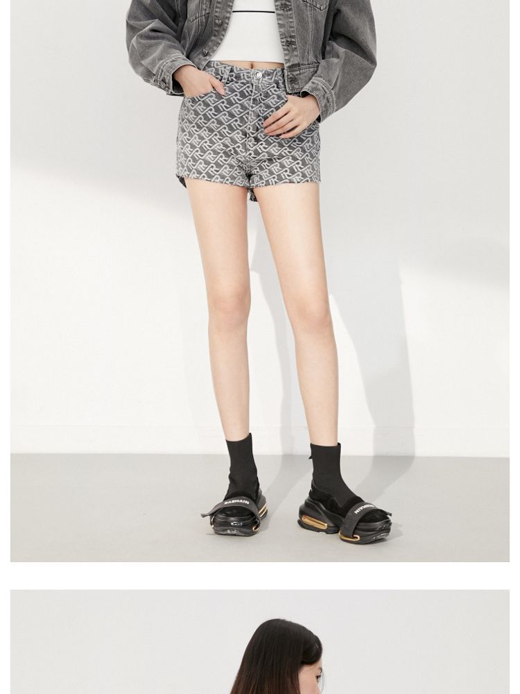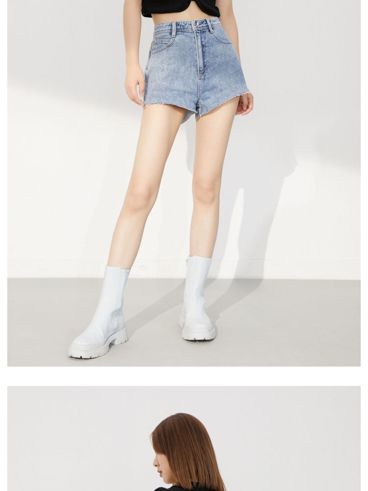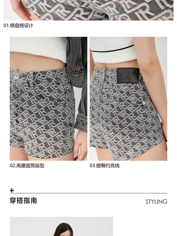 商品名称:【棋盘格设计】夏季高腰A字直筒短裤薄款牛仔裤女 723098