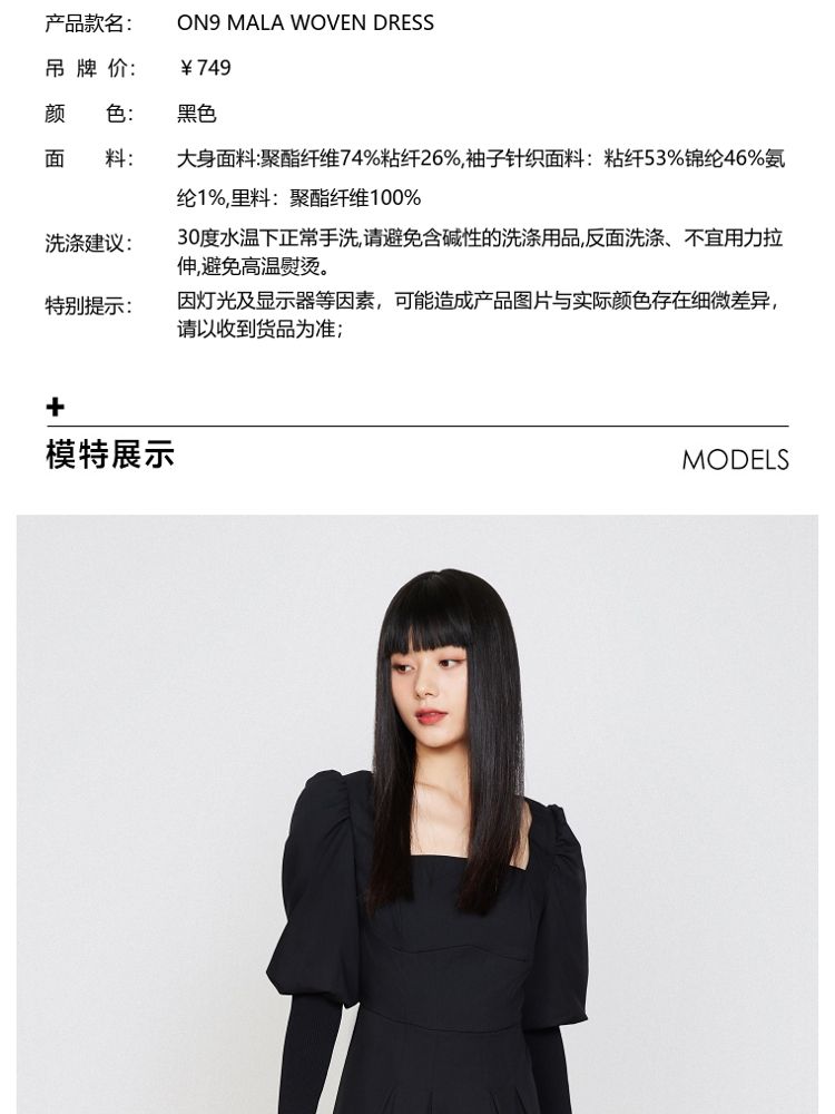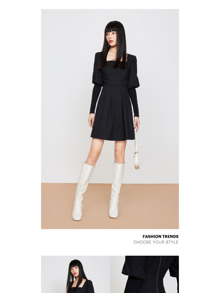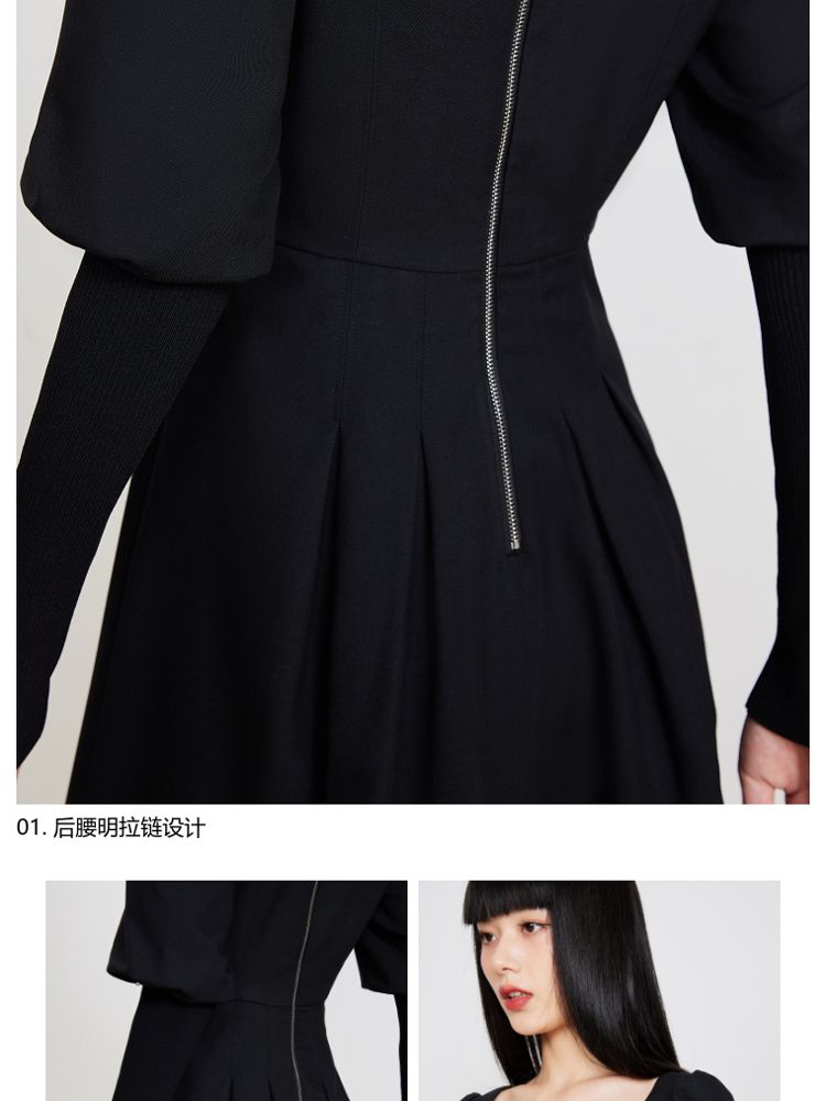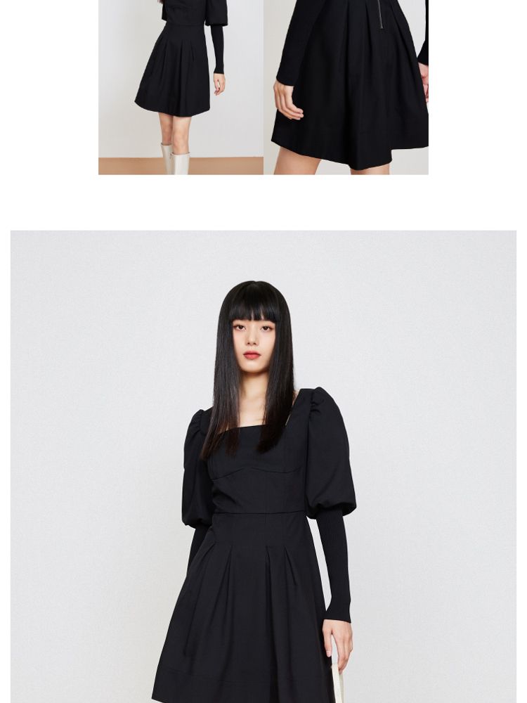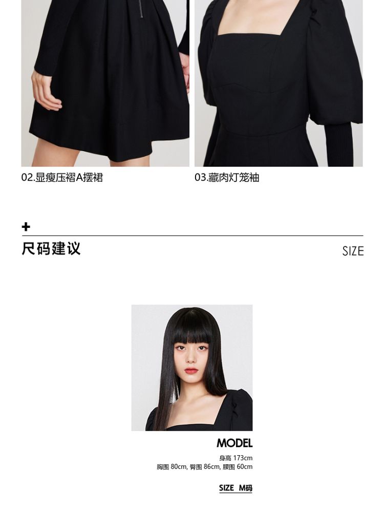 商品名称:【福利款】夏季方领灯笼袖短款小黑裙法式连衣裙女 076954