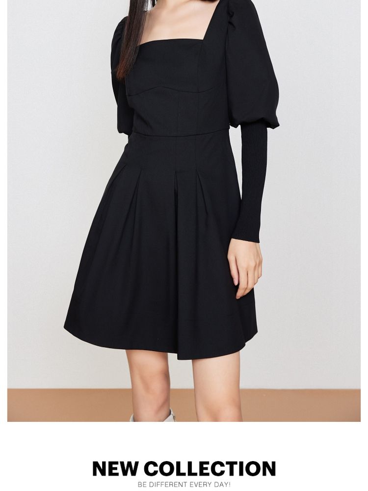 【福利款】夏季方领灯笼袖短款小黑裙法式连衣裙女 076954